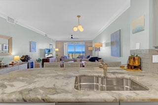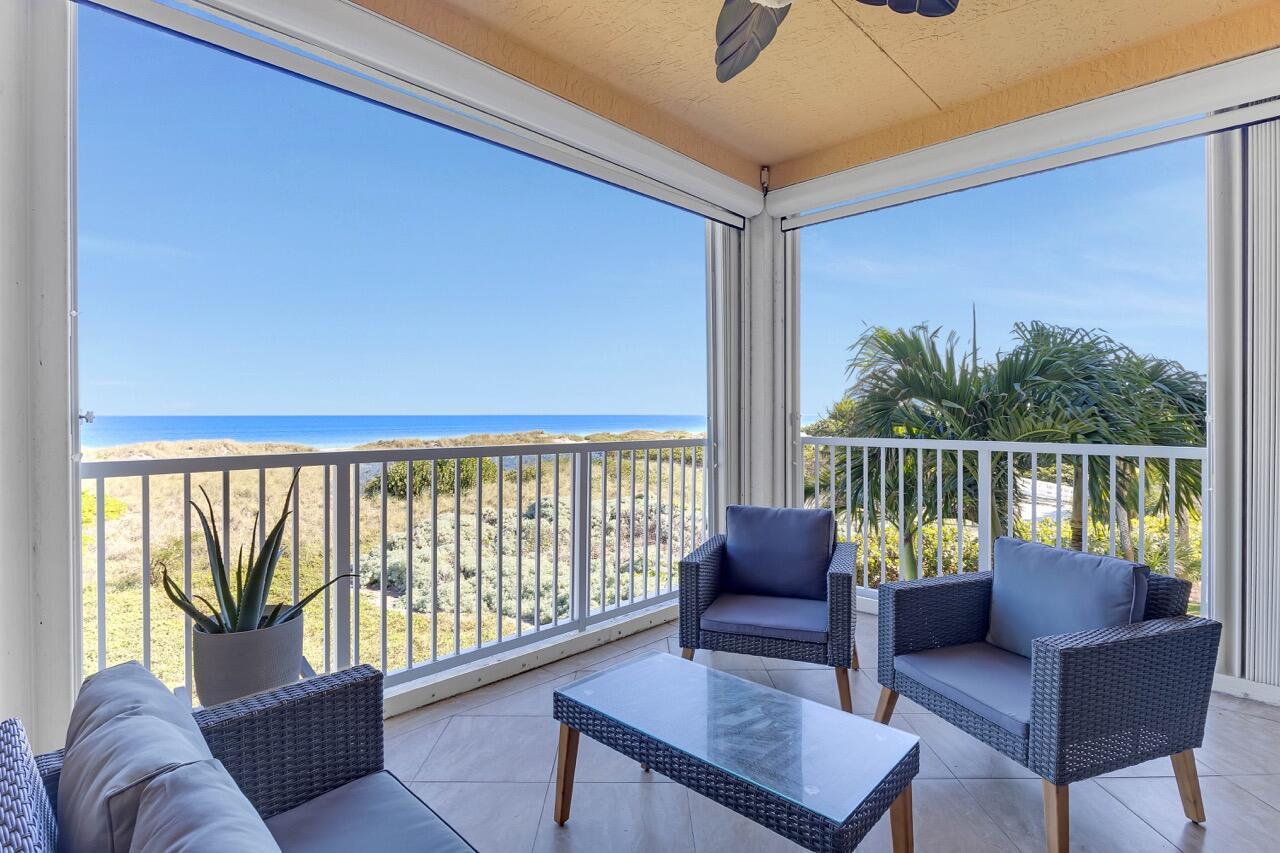 Sweeping ocean views from this 2 bedroom 2 bath condo in desirable Ocean House located in the beachfront community of Ocean Village. Updated kitchen and baths with granite counter tops, stainless steel appliances and designer cabinets. Amenities galore: beautiful stretch of 3000 ft of private beach, 5 swimming pools, tennis, pickleball, shuffleboard, bocce ball, fitness center and club house. Onsite ocean front restaurant and lively tiki bar by the main pool. Come see it today and experience paradise.