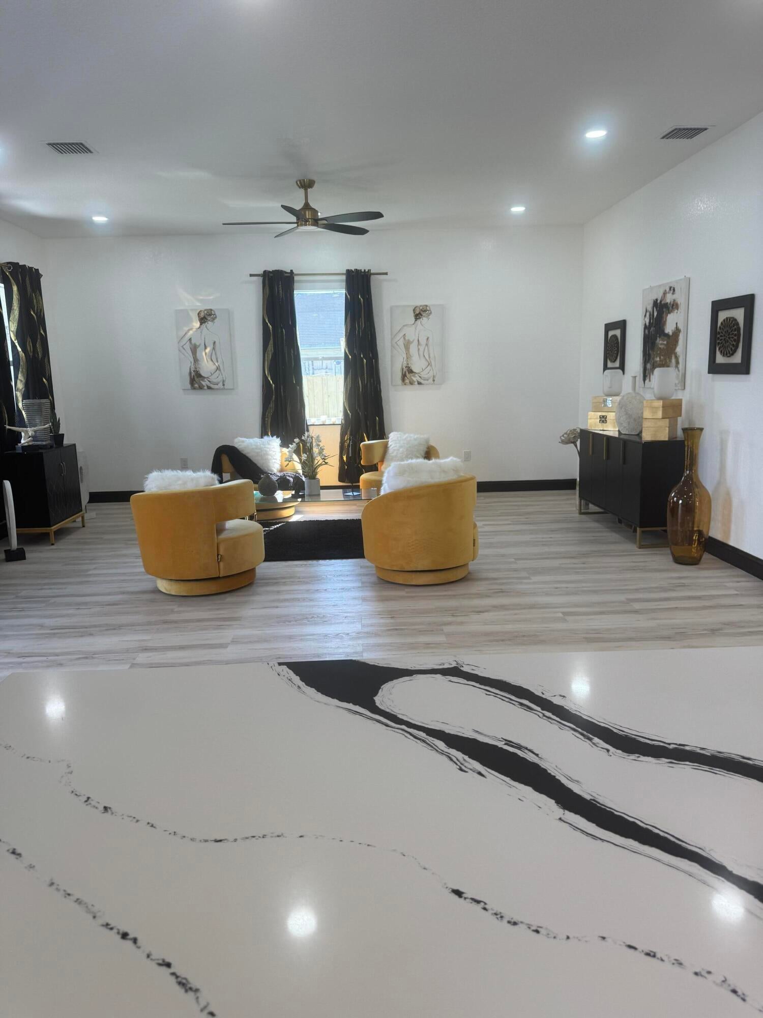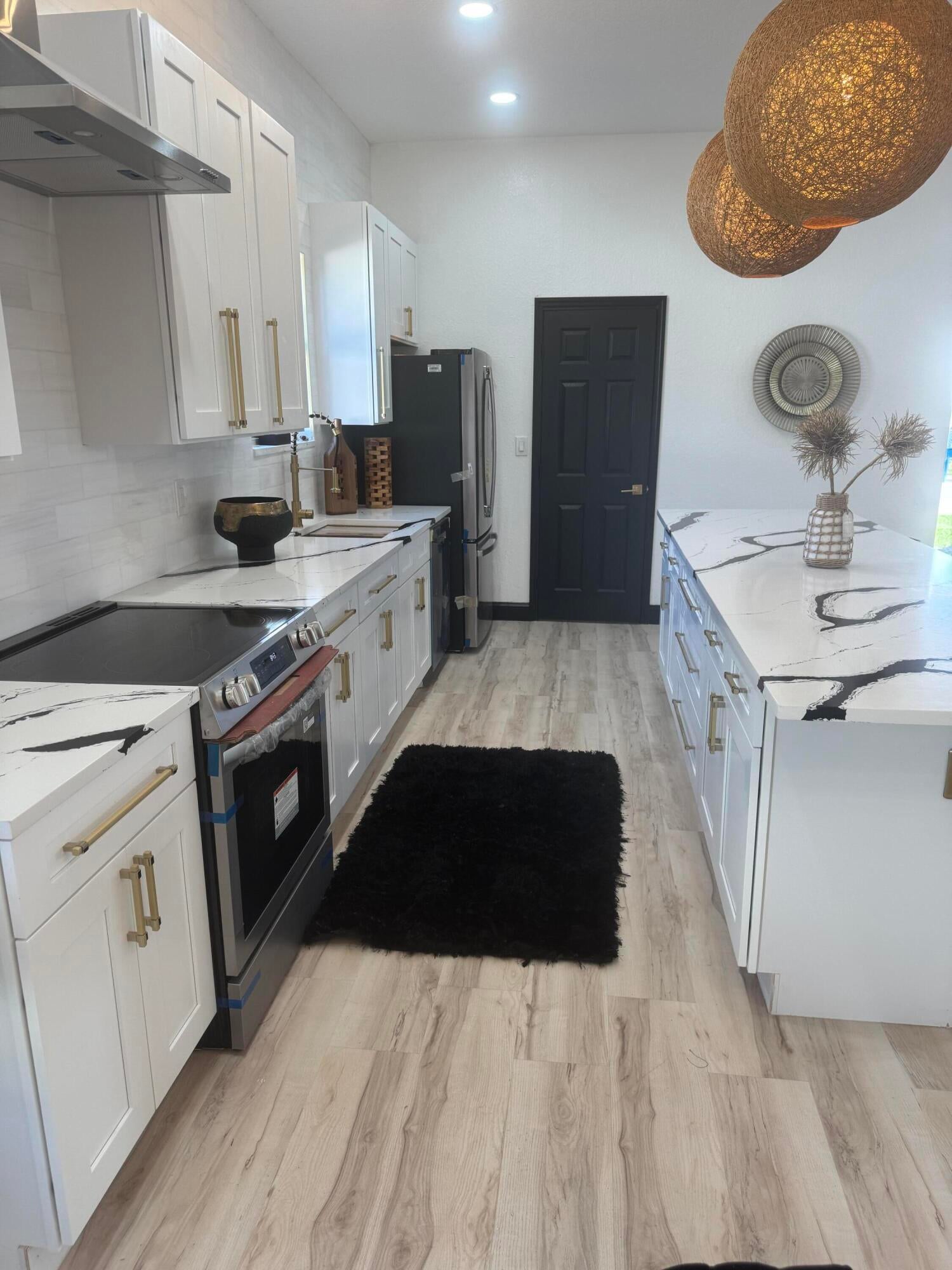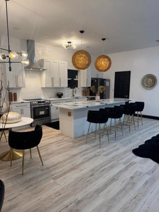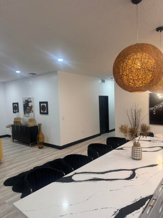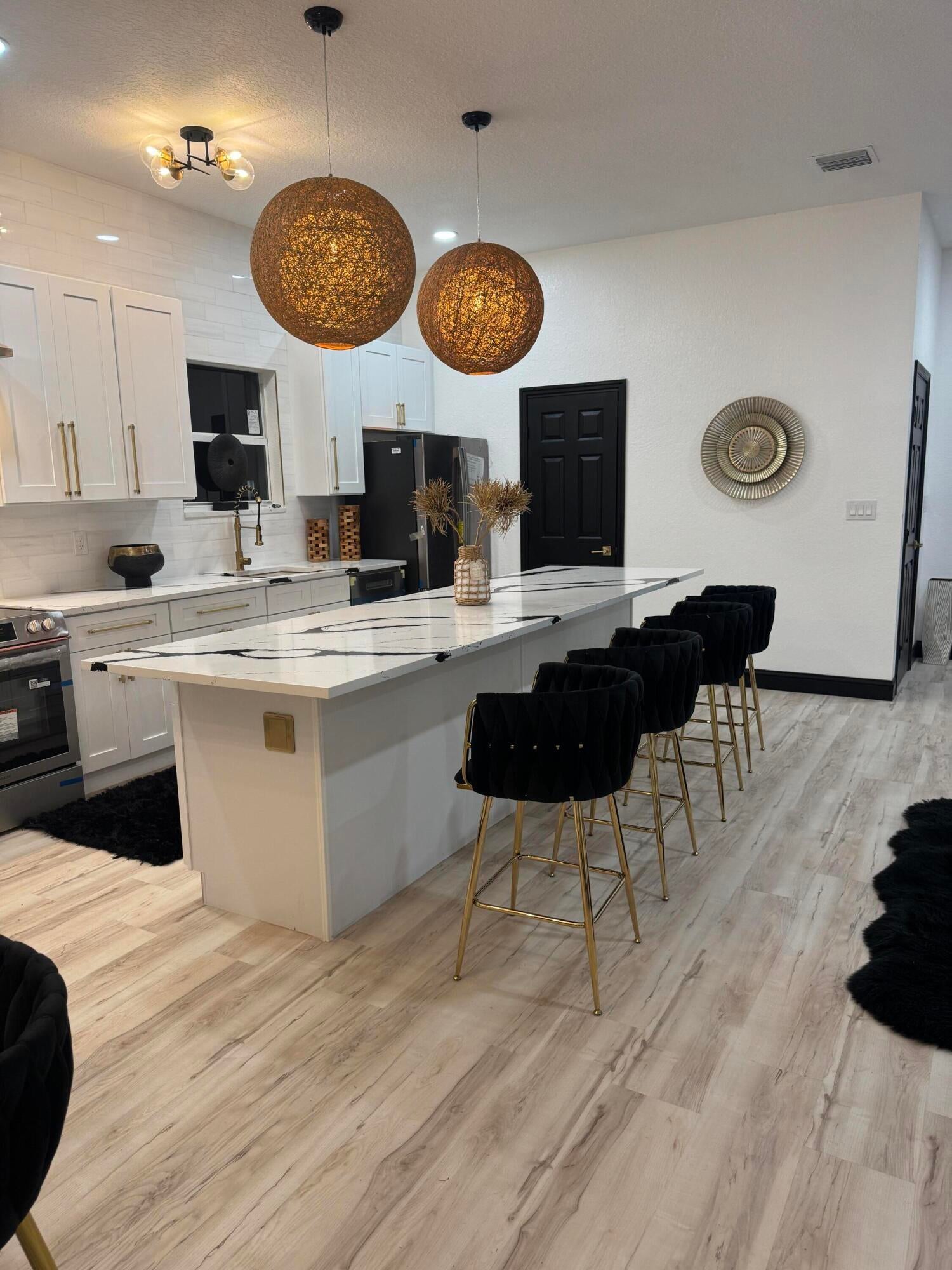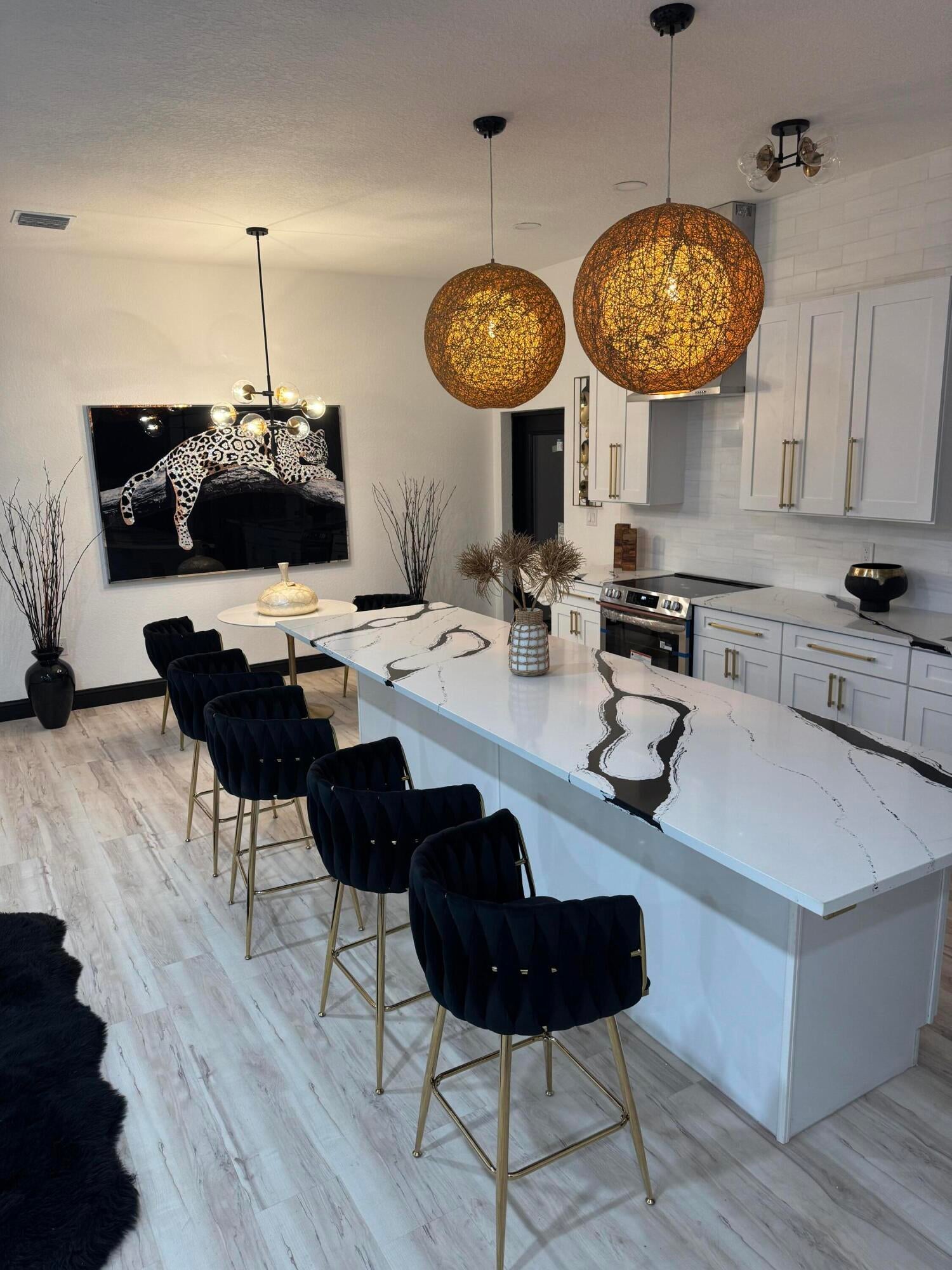 This home boasts a spacious total area of 2,245 sqft & is designed with quality materials, ensuring durability & a luxury feel throughout. The open concept living area seamlessly connects with the spacious kitchen, dining, and family rooms. Large windows & the 10-foot ceiling allow natural light to fill the space, creating a welcoming atmosphere. The kitchen is equipped with a 10-foot island, soft-close wood cabinetry, quartz counter tops, spacious pantry & modern stainless-steel appliances, perfect for entertaining. There are 4 generously sized bedrooms, & 2.5 beautiful bathrooms. Attention to detail is evident, from the elegant LV flooring to the light fixtures, the security cameras front & back, the hurricane shutters & brick paver driveway. Don't wait come and see your new Home.
