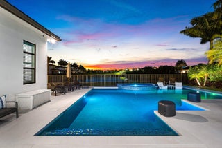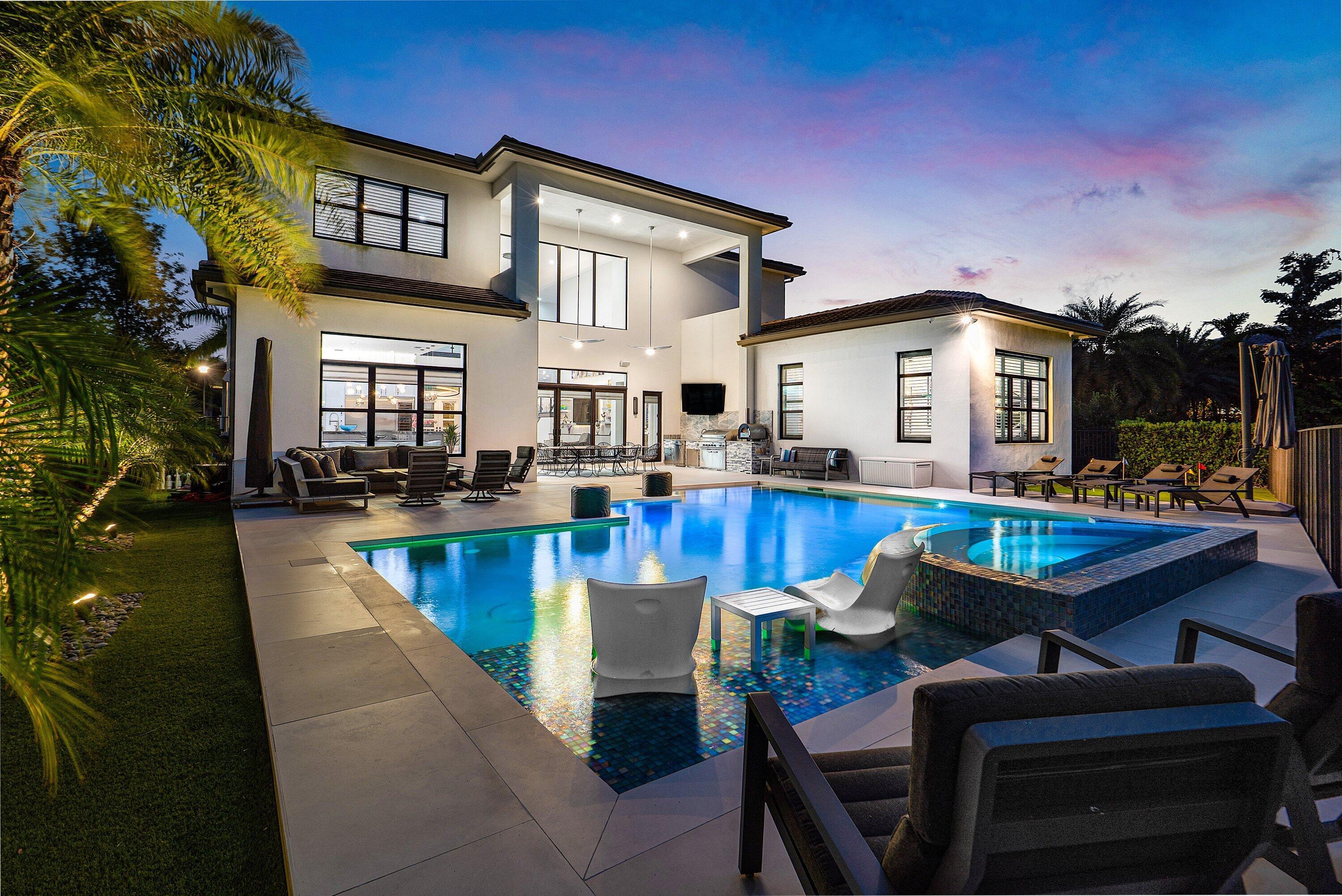 This highly coveted and rarely available Veneto Estate, is set on an oversized .34-acre lot with the longest private driveway in Boca Bridges. This extraordinary residence spans approximately 6,000 SF and showcases an unparalleled level of design, finish, and sophistication. Offering 5 oversized suite style bedrooms and 7 elegantly finished bathrooms, the home is perfectly designed for both luxury living and effortless entertaining. The Primary Suite is ideally located on the first floor, along with an additional guest suite, private gym, professionally outfitted office, and a beautifully designed club room (or private dining).Each interior space reflects a sleek, modern aesthetic highlighted by large-format tiles, hardwood floors, designer lighting, upgraded cabinetry, custom closets, and refined finishes throughout. At the heart of the home, the gourmet kitchen impresses with a custom cabinetry package, premium stone selections, and a top-of-the-line Wolf/Sub-Zero appliance suite, including a dramatic double islandideal for hosting, gathering, and everyday culinary enjoyment. Step outside to a spectacular resort-style pool and spa paired with a fully equipped summer kitchen, outdoor television, and custom putting green. Located within the prestigious, gated community of Boca Bridges, residents enjoy access to world-class amenities centered around a stunning 27,000 SF clubhouse featuring a restaurant, a state-of-the-art fitness studio, indoor basketball court, yoga rooms, six Har-Tru tennis courts, pickleball courts, a resort-style pool with outdoor bar, and an adjoining family splash park. Modern, warm, and exquisitely customized, this Contemporary Veneto Estate represents the pinnacle of Boca Bridges luxuryevery detail curated, every space elevated, and every moment enhanced.