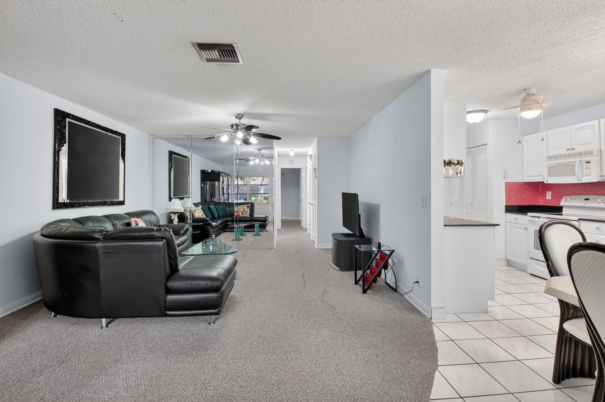 Welcome to this well-maintained and inviting two-bedroom, two-bath villa located in the desirable Delray Villas, an active 55+ community in the heart of Delray Beach. This spacious residence offers a functional layout designed for comfort and ease of living, beginning with a charming screened-in front porch--perfect for enjoying morning coffee or relaxing evenings. Inside, the open-concept living and dining areas provide a bright and welcoming atmosphere, ideal for both everyday living and entertaining. The galley-style kitchen features crisp white cabinetry, coordinating appliances, ample counter and cabinet space, and a convenient laundry/utility closet with a full-size washer and dryer for added practicality. Both bedrooms are generously sized and thoughtfully designed. The primarysuite boasts a large walk-in closet and a private ensuite bathroom equipped with a Safe Step walk-in tub, offering the safety of a low-threshold entry along with the versatility of a standing shower. The guest bedroom also includes a walk-in closet and opens directly to a covered patio where you can unwind while taking in peaceful water views. The home is being sold fully furnished, including a Sleep Number bed in the primary bedroom, allowing you to move right in and start enjoying the Florida lifestyle immediately. Convenient parking is located directly in front of the villa, adding to the home's ease and accessibility. Delray Villas is a vibrant and socially active community offering an impressive array of amenities, including two clubhouses, multiple swimming pools, a hot tub, a fitness center with updated equipment, and a variety of recreational options such as tennis, pickleball, bocce, shuffleboard, billiards, and more. The community features a low HOA fee, allows rentals after three years of ownership, and permits one pet under 20 pounds. Ideally situated just off Atlantic Avenue, this villa is close to shopping, dining, medical facilities, and only minutes from Delray Beach's beautiful beaches and lively downtown area. This is a wonderful opportunity to enjoy comfortable, low-maintenance living in one of Delray Beach's most sought-after 55+ communities.