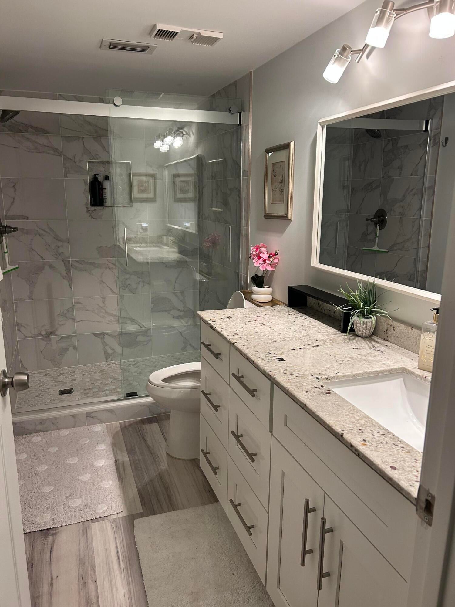 Totally Renovated Condo Available in Lush Huntington Lakes at $225.000. A dazzling renovated, 1070 sq. foot condo-Westchester model with all new appliances is immediately available in an idyllic community, offering a state-of-the-art club house, an endless asphalt walking path, pools for each group of buildings, large lake views and magnificent, lush landscaping throughout. As you enter this 2nd floor condo, everything will begin to shine! Vinyl flooring will greet you, which extend straight through the elongated apartment. Rising to mid window height is another of the condo's most captivating features..Fully Furnished w/ TV's. Crown ,molding. Remodeled bathrooms -frameless shower doors,modern fixtures-granite tops. Main water valve turn off A very large lake view extends beyond, and the community's walking path is below your patio. Everything else below is covered with beautifully kept green grass...and with lots of wild birds forging for meals in the grass. To the immediate right after condo entry is an unusually large, glittering white and chrome kitchen with an oversized breakfast counter, and white cabinetry. This kitchen has a side wall also covered with floor to ceiling cabinetry. The Samsung refrigerator has plenty of cooling space Two bedrooms and two upscale bathrooms are at each end of the condo. The master bedroom has two walk-in closets and plenty of wall space. Each condo has its own storage unit outside, at the end of each floor. Come visit this "stunning" condo All sizes are approximate. INFORMATION IS HEREIN DEE,ED RELIABLE BUT NOT GUARANTEED