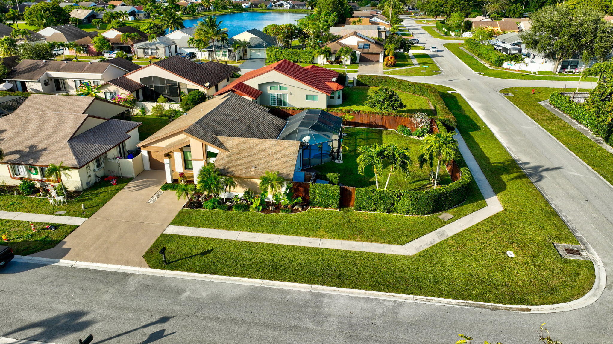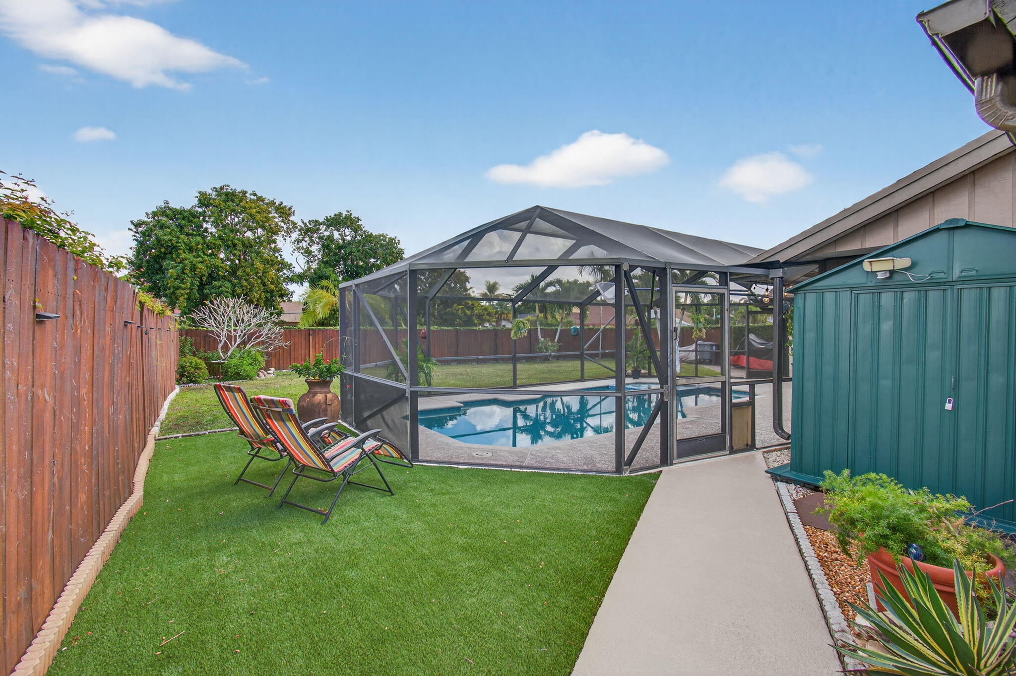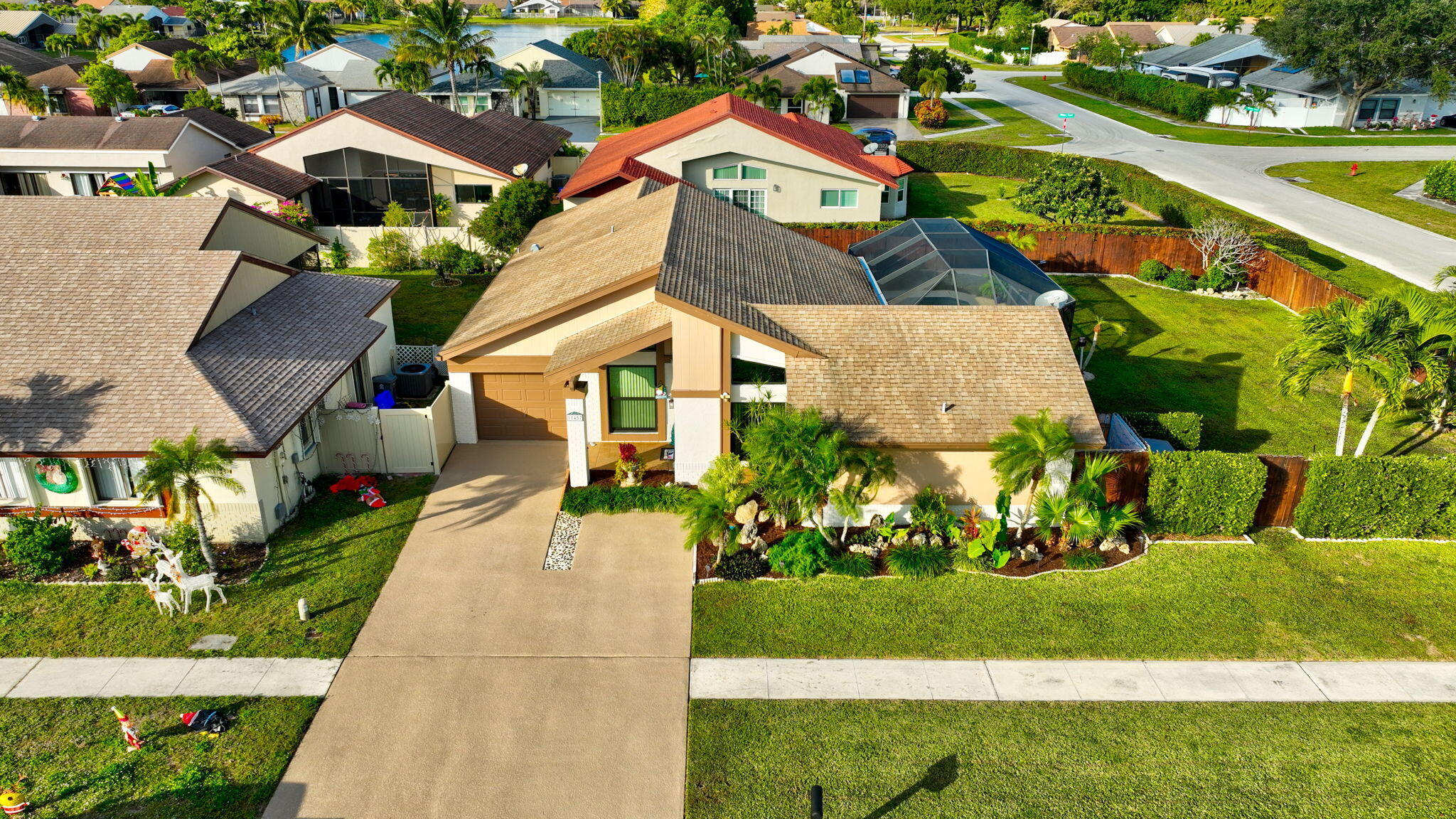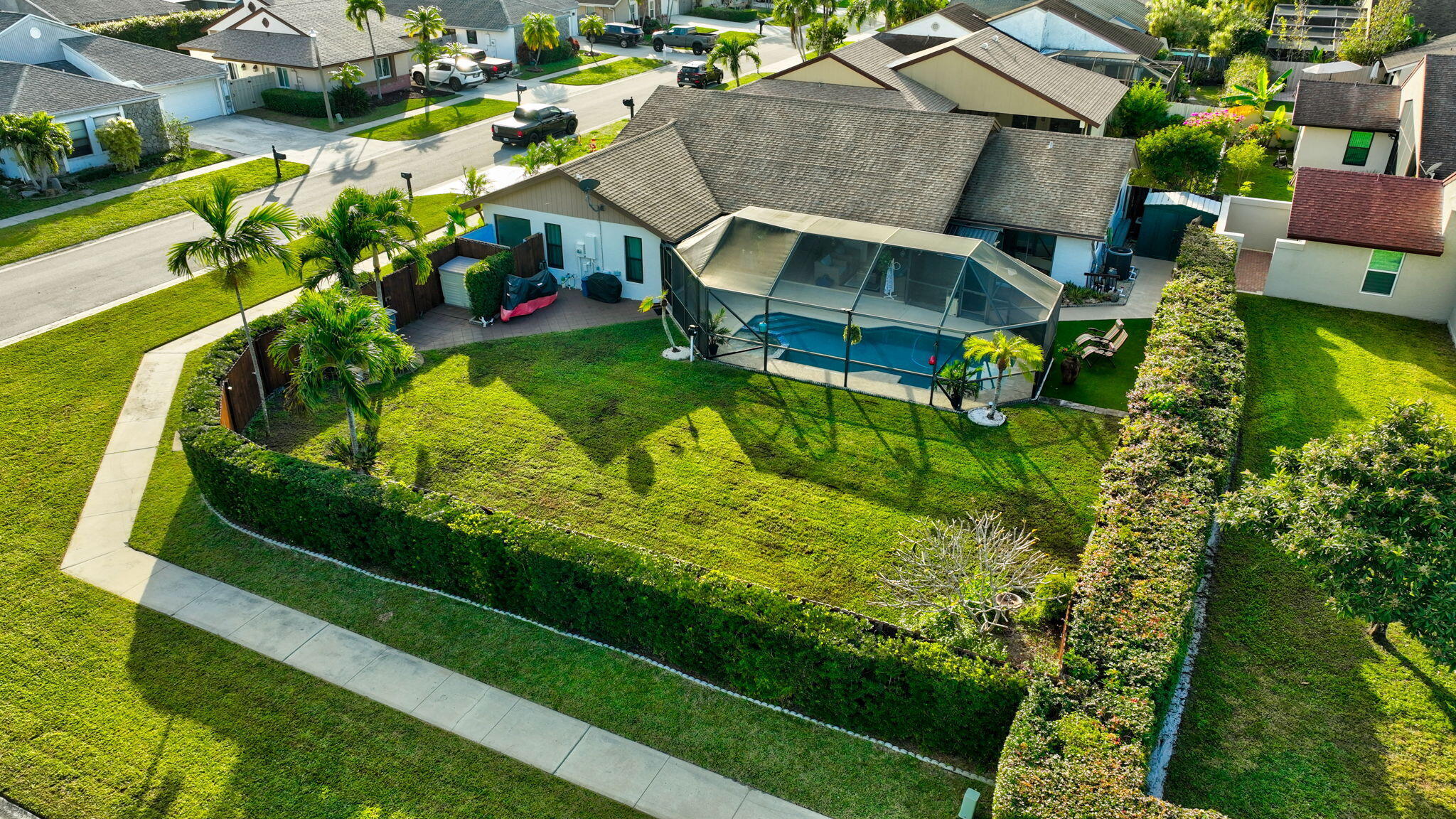 This meticulously maintained 3 bedroom, 2 bath, 1 car garage single-family home is ideally located in the highly desirable Loggers Run community of West Boca Raton, perfectly situated on a private, oversized corner lot. Recently painted inside and out, the home presents a fresh, move-in-ready feel, with tinted windows and doors for enhanced energy efficiency and privacy. Nearly all openings are equipped with hurricane-impact windows and doors, and hurricane panels are provided for the non-impact sliding doors, offering added peace of mind.Entering the home, you are immediately greeted by soaring vaulted ceilings, architectural ceiling details, and clerestory-style windows that flood the open-concept living spaces with abundant natural light. Durable travertine-style tile flows seamlessly throughout the main areas, creating a cohesive, low-maintenance design. The formal living and dining areas provide a flexible layout suitable for both everyday living and elegant entertaining. The dining space is enhanced by crown molding, a statement chandelier and adding sophistication and depth to special occasions. The chef-inspired kitchen serves as the heart of the home, featuring custom wood cabinetry, granite countertops, stainless steel appliances, and a spacious breakfast bar with open sightlines to the living areas. Thoughtful details include a built-in microwave, smooth-top range, appliance garage, deep undermount stainless steel sink, modern gooseneck faucet, and generous prep and storage space, blending style and functionality. A secondary living area offers a versatile retreat with direct access to the pool deck through sliding glass doors, ideal as a family room, media space, or home office. The primary suite is a tranquil retreat overlooking the pool, with expansive windows and sliding doors that fill the space with natural light and offer serene views of the backyard oasis. The en-suite bathroom is designed for luxury and relaxation, featuring dual vessel sinks set against a striking mosaic tile backsplash, a walk-in closet separated by frosted glass sliding doors, and a glass-enclosed walk-in shower with floor-to-ceiling tile and a rainfall showerhead, creating a true spa-like experience. The master bathroom is a dramatic, spa-like retreat featuring deeper tones and high-end finishes. The dual vanity is a focal point, highlighted by a full-height mosaic tile backsplash, dark cabinetry with sleek silver pulls, and 2 contemporary white vessel sinks. The walk-in shower is enclosed with frameless sliding glass doors on heavy-duty barn-style rollers, featuring large-format stone-look tiles, a built-in window for natural light, and a luxurious rainfall showerhead with a separate handheld wand. The vanity area is carefully separated from the wet room, which houses the toilet and shower, while large white sliding panel doors with glass provide access to the master walk-in closet, complete with custom storage organizers. Rich chocolate brown walls create a sophisticated, moody atmosphere, perfectly contrasted by white trim and glass accents. The 2 guest bedrooms are equally well-appointed, offering versatile spaces that can function as offices, craft rooms, or media areas. Each bedroom includes custom closet organizers, while the guest bathroom is designed with coastal-inspired elegance, combining warm neutrals with cool sea-foam and blue accents. A herringbone-patterned subway tile in the shower adds texture and subtle color, complemented by a dark wood vanity with frosted glass inserts, a clean white integrated sink, a circular wood-framed mirror, and modern 3 bulb track lighting. Brushed nickel hardware throughoutincluding the faucets, showerhead, and towel barsharmonizes with the soothing tile tones, while large-format natural stone or porcelain flooring extends into the hallway for a seamless, cohesive flow. The 1-car garage is a versatile space perfect for both productivity and fitness, featuring durable diamond-plate rubber flooring and abundant overhead lighting. Painted walls, a textured ceiling, and integrated air conditioning ensure comfort year-round, while thoughtful extras like ceiling-mounted fishing rod racks add convenience and functionality. Through a secondary door in the garage, the walk-in storage room maximizes vertical space while keeping the main garage clutter-free. Wall-to-wall wire shelving houses organized bins, seasonal gear, and household supplies, while a hanging rack accommodates larger items. The room also contains the A.O. Smith water heater and offers space for a vacuum, bulk supplies, and additional storage needs, making it a fully functional extension of the garage. Step outside to a private backyard oasis thoughtfully designed for year-round enjoyment. The saltwater pool with an integrated elevated spa is fully enclosed within a screened-in lanai and has been updated with new tile, recoating, and a Diamond Brite finish. The pool heater and saltwater system were upgraded in 2024, and the expansive pool deck, refreshed approximately two years ago, provides abundant space for lounging, outdoor dining, and entertaining. Beyond the lanai, the backyard features a harmonious blend of lush grass, low-maintenance artificial turf, mature hedges, and tropical landscaping, creating a serene, resort-style retreat. A concrete walkway leads to 2 outdoor storage sheds, one of which is equipped with electricity for added convenience. Additional exterior highlights include a 6-zone sprinkler system and a 2024 hot water heater, enhancing both the functionality and comfort of this exceptional property. Loggers Run is one of West Boca Raton's most sought-after communities, known for its quiet streets, lush landscaping, and well-maintained homes. Residents enjoy a strong sense of community while being just minutes from upscale shopping, dining, entertainment, and cultural venues in downtown Boca Raton. Outdoor enthusiasts benefit from nearby parks, golf courses, and nature prese