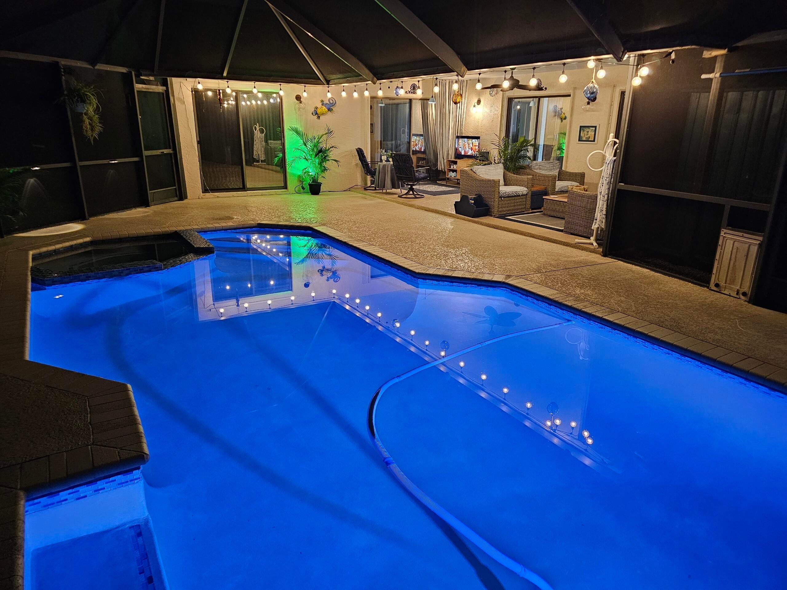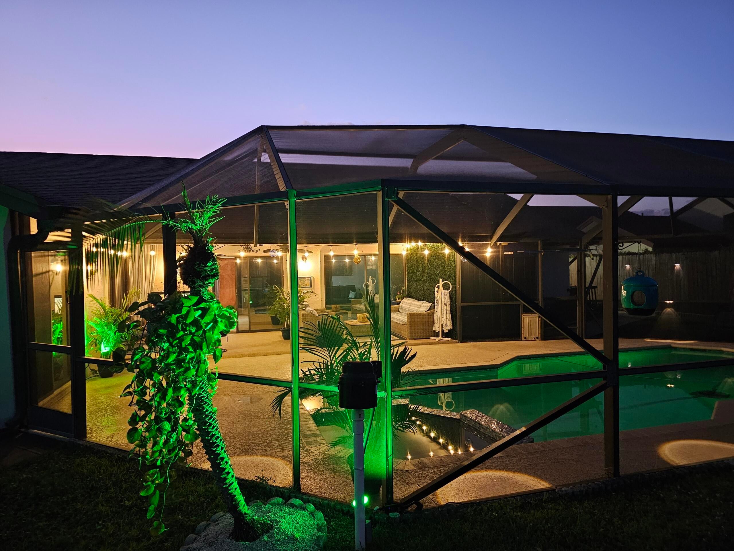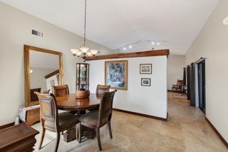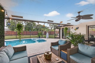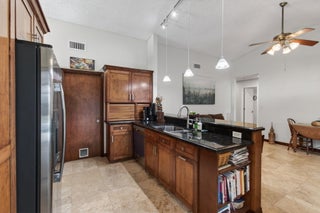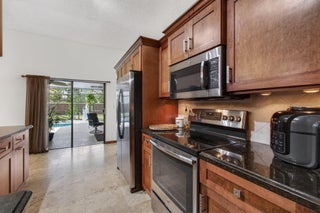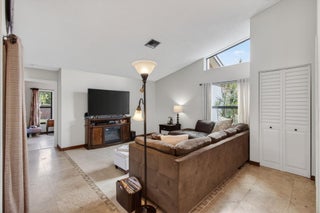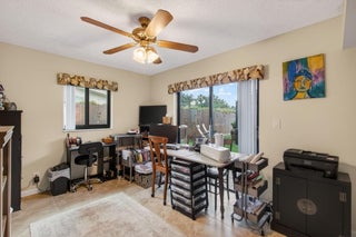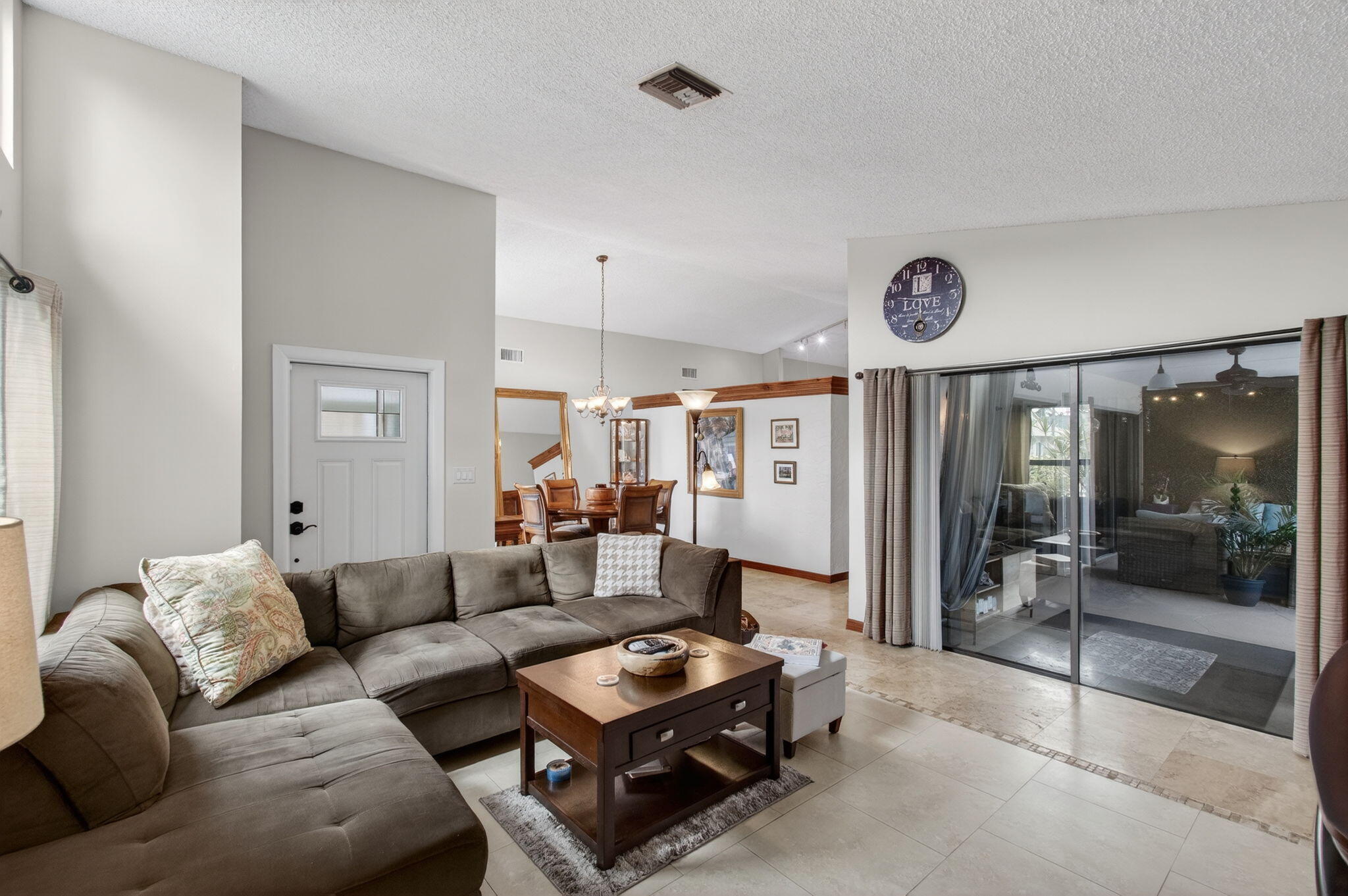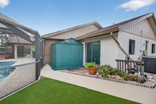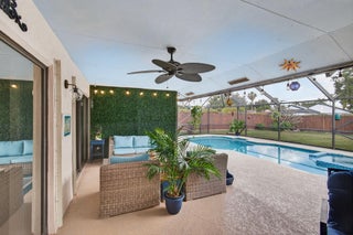 This meticulously maintained 3 bedroom, 2 bath, 1 car garage single-family home is ideally located in the highly desirable Loggers Run community of West Boca Raton, perfectly situated on a private, oversized corner lot. Recently painted inside and out, the home presents a fresh, move-in-ready feel, with tinted windows and doors for enhanced energy efficiency and privacy. Nearly all openings are equipped with hurricane-impact windows and doors, and hurricane panels are provided for the non-impact sliding doors, offering added peace of mind.Entering the home, you are immediately greeted by soaring vaulted ceilings, architectural ceiling details, and clerestory-style windows that flood the open-concept living spaces with abundant natural light. Durable travertine-style tile flows seamlessly throughout the main areas, creating a cohesive, low-maintenance design. The formal living and dining areas provide a flexible layout suitable for both everyday living and elegant entertaining. The dining space is enhanced by crown molding, a statement chandelier and adding sophistication and depth to special occasions. The chef-inspired kitchen serves as the heart of the home, featuring custom wood cabinetry, granite countertops, stainless steel appliances, and a spacious breakfast bar with open sightlines to the living areas. Thoughtful details include a built-in microwave, smooth-top range, appliance garage, deep undermount stainless steel sink, modern gooseneck faucet, and generous prep and storage space, blending style and functionality. A secondary living area offers a versatile retreat with direct access to the pool deck through sliding glass doors, ideal as a family room, media space, or home office. The primary suite is a tranquil retreat overlooking the pool, with expansive windows and sliding doors that fill the space with natural light and offer serene views of the backyard oasis. The en-suite bathroom is designed for luxury and relaxation, featuring dual vessel sinks set against a striking mosaic tile backsplash, a walk-in closet separated by frosted glass sliding doors, and a glass-enclosed walk-in shower with floor-to-ceiling tile and a rainfall showerhead, creating a true spa-like experience. The master bathroom is a dramatic, spa-like retreat featuring deeper tones and high-end finishes. The dual vanity is a focal point, highlighted by a full-height mosaic tile backsplash, dark cabinetry with sleek silver pulls, and 2 contemporary white vessel sinks. The walk-in shower is enclosed with frameless sliding glass doors on heavy-duty barn-style rollers, featuring large-format stone-look tiles, a built-in window for natural light, and a luxurious rainfall showerhead with a separate handheld wand. The vanity area is carefully separated from the wet room, which houses the toilet and shower, while large white sliding panel doors with glass provide access to the master walk-in closet, complete with custom storage organizers. Rich chocolate brown walls create a sophisticated, moody atmosphere, perfectly contrasted by white trim and glass accents. The 2 guest bedrooms are equally well-appointed, offering versatile spaces that can function as offices, craft rooms, or media areas. Each bedroom includes custom closet organizers, while the guest bathroom is designed with coastal-inspired elegance, combining warm neutrals with cool sea-foam and blue accents. A herringbone-patterned subway tile in the shower adds texture and subtle color, complemented by a dark wood vanity with frosted glass inserts, a clean white integrated sink, a circular wood-framed mirror, and modern 3 bulb track lighting. Brushed nickel hardware throughoutincluding the faucets, showerhead, and towel barsharmonizes with the soothing tile tones, while large-format natural stone or porcelain flooring extends into the hallway for a seamless, cohesive flow. The 1-car garage is a versatile space perfect for both productivity and fitness, featuring durable diamond-plate rubber flooring and abundant overhead lighting. Painted walls, a textured ceiling, and integrated air conditioning ensure comfort year-round, while thoughtful extras like ceiling-mounted fishing rod racks add convenience and functionality. Through a secondary door in the garage, the walk-in storage room maximizes vertical space while keeping the main garage clutter-free. Wall-to-wall wire shelving houses organized bins, seasonal gear, and household supplies, while a hanging rack accommodates larger items. The room also contains the A.O. Smith water heater and offers space for a vacuum, bulk supplies, and additional storage needs, making it a fully functional extension of the garage. Step outside to a private backyard oasis thoughtfully designed for year-round enjoyment. The saltwater pool with an integrated elevated spa is fully enclosed within a screened-in lanai and has been updated with new tile, recoating, and a Diamond Brite finish. The pool heater and saltwater system were upgraded in 2024, and the expansive pool deck, refreshed approximately two years ago, provides abundant space for lounging, outdoor dining, and entertaining. Beyond the lanai, the backyard features a harmonious blend of lush grass, low-maintenance artificial turf, mature hedges, and tropical landscaping, creating a serene, resort-style retreat. A concrete walkway leads to 2 outdoor storage sheds, one of which is equipped with electricity for added convenience. Additional exterior highlights include a 6-zone sprinkler system and a 2024 hot water heater, enhancing both the functionality and comfort of this exceptional property. Loggers Run is one of West Boca Raton's most sought-after communities, known for its quiet streets, lush landscaping, and well-maintained homes. Residents enjoy a strong sense of community while being just minutes from upscale shopping, dining, entertainment, and cultural venues in downtown Boca Raton. Outdoor enthusiasts benefit from nearby parks, golf courses, and nature prese