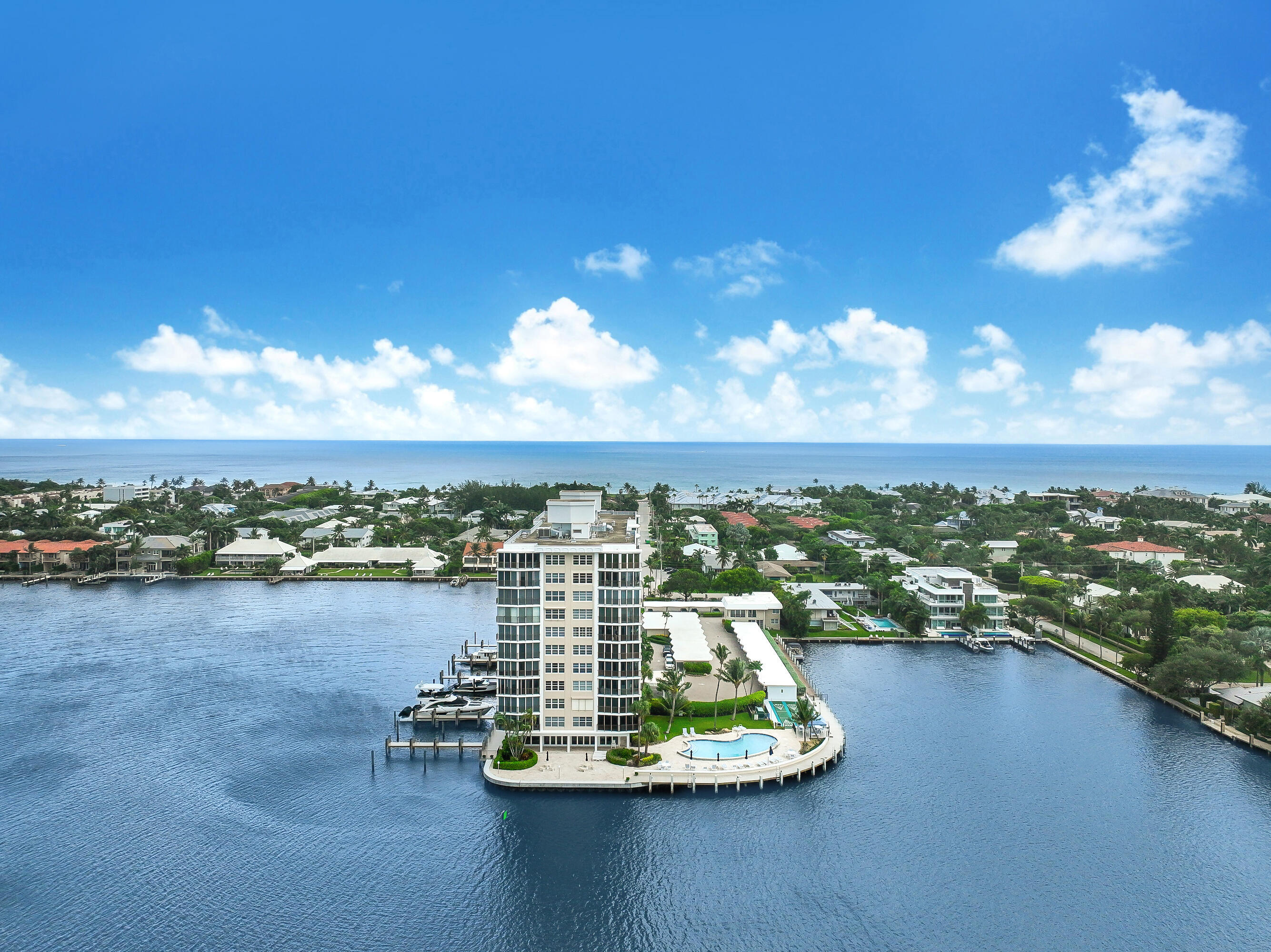 BEST CONDO VALUE <$1M IN EAST DELRAY/''SEAGATE AREA'': Jaw-dropping waterfront views define this oversized 2-bedroom, 2-bath condo perfectly positioned on the Intracoastal and surrounded by water on 3 sides of the building. Enjoy FREE boat dockage with both large & small slips available--an incredible and rare perk! Two expansive open balconies offer sweeping north & south views up & down the waterway, creating the perfect backdrop for sunrise coffees & sunset evenings.This light-filled residence is offered ''essentially furnished''/move-in ready, featuring impact windows, tile flooring throughout, an open kitchen, updated bathrooms, & generous walkin closets. The community has completed ALL compliance reports & delivers resort-style amenities including a doorman/lobby/on-site mgImpeccably maintained, it offers effortless coastal living just one block from the beach and only a few blocks from vibrant Atlantic Avenue. And-- a very short walk to the private oceanside Seagate Beach Club. This is truly the complete package: boating, beach, location, and lifestyle! ***All sizes and square footage are approximate. Information contained herein is deemed reliable but not guaranteed***