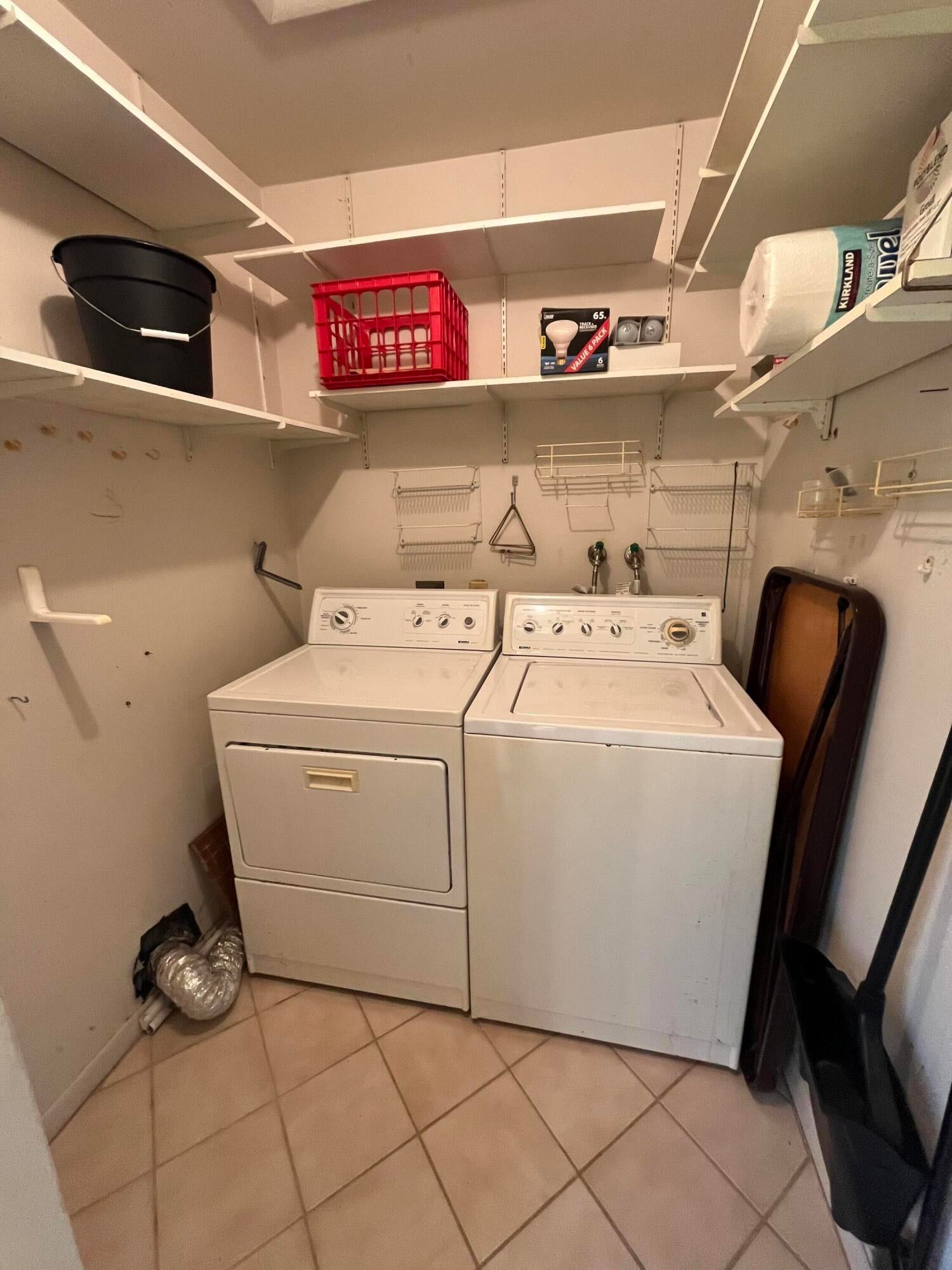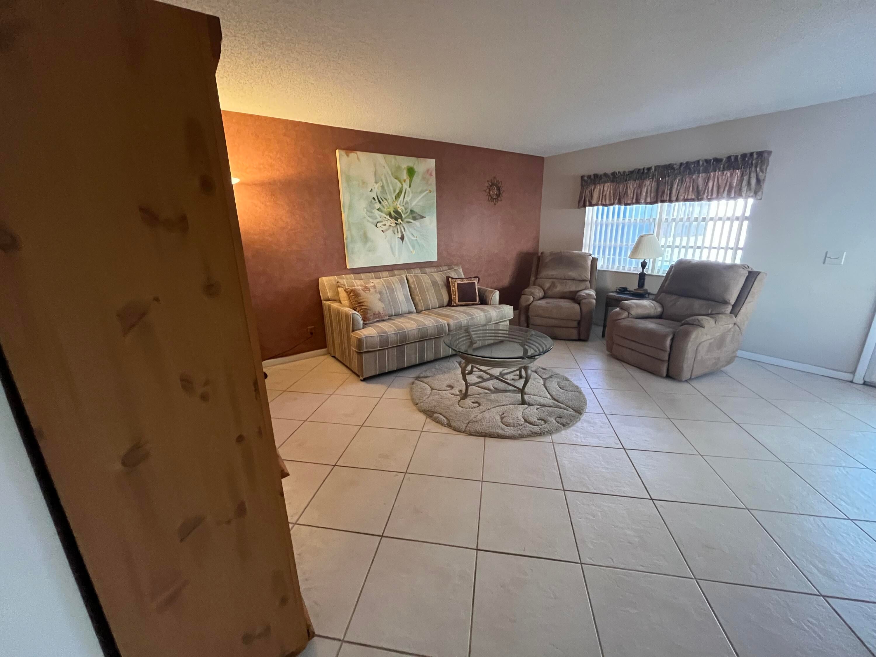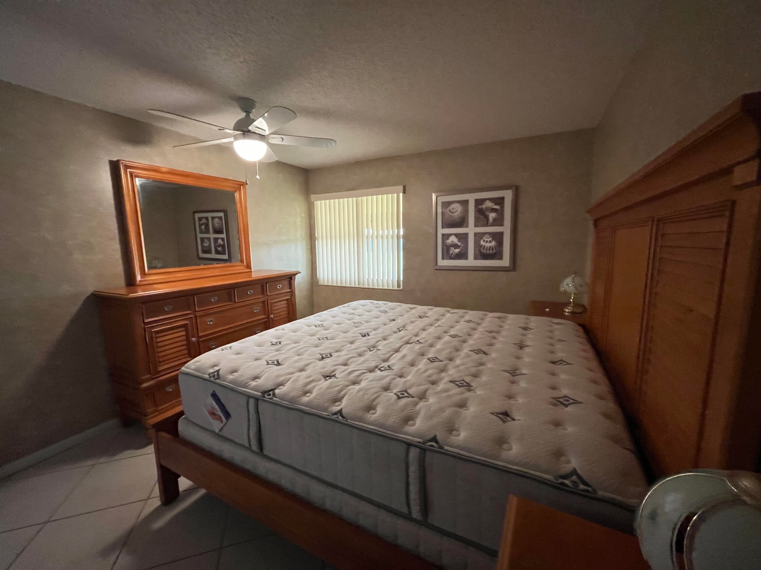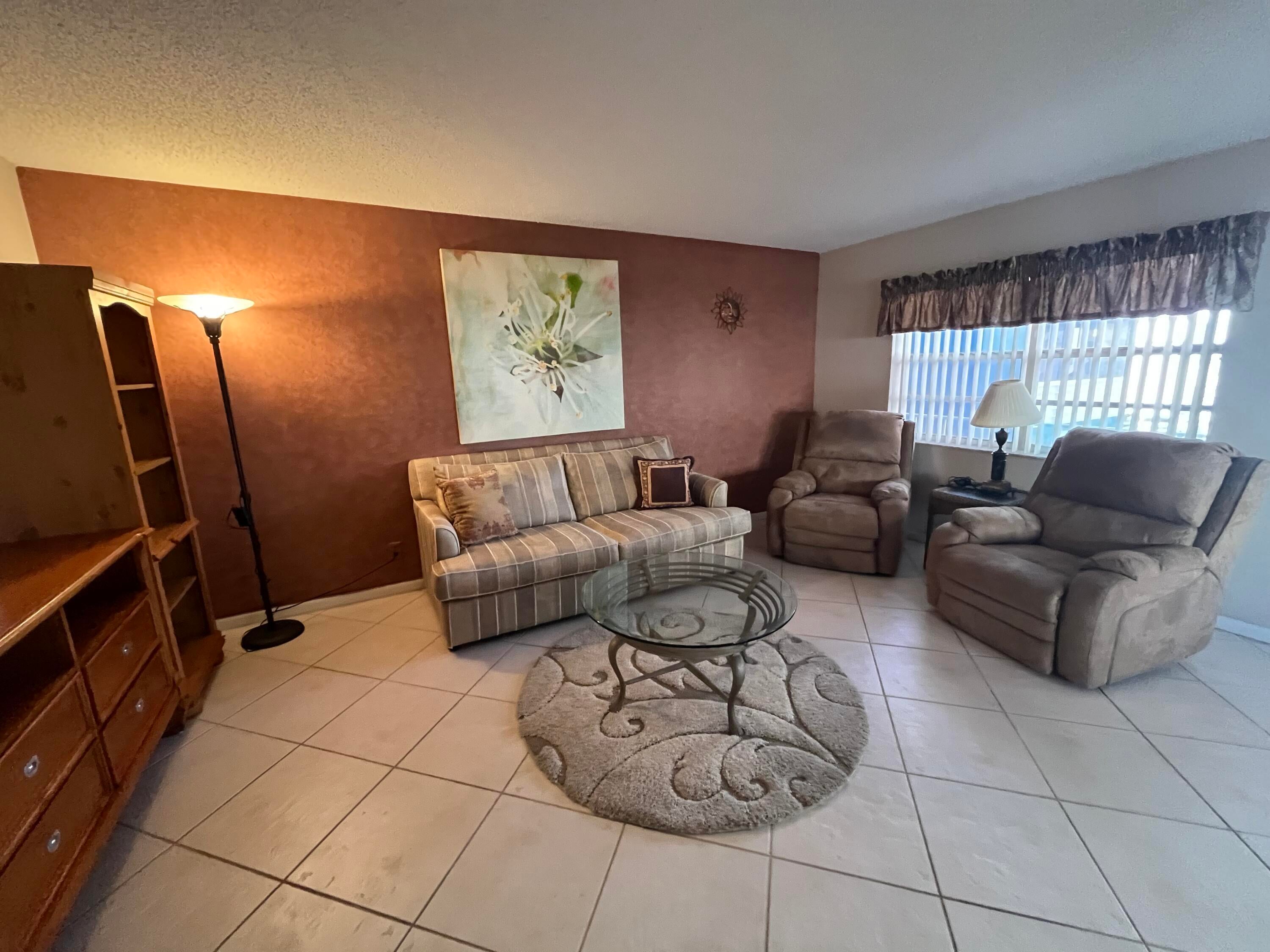 Best view in all of Kings Point. Spectacular golf course and lake views as expansive as your eyes can view! Southern exposure from your enclosed patio with slider windows that open to a seasonal cool breeze screeened in. The tiled patio also has a window a/c unit that runs off of it's own electrical circuit located in the utility closet (where your side by side washer/dryer is found) Neutral colored ceramic tiling adorns the floorng throughout. Both bathroom ceilings have recessed lighting. Primary bathroom with stall shower area updated wall tiling. Unit comes furnished as seen.