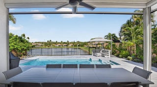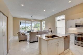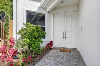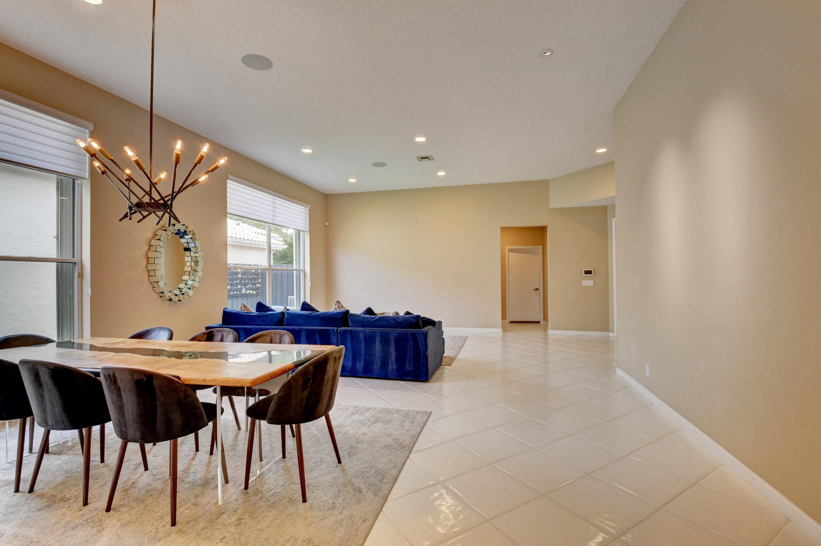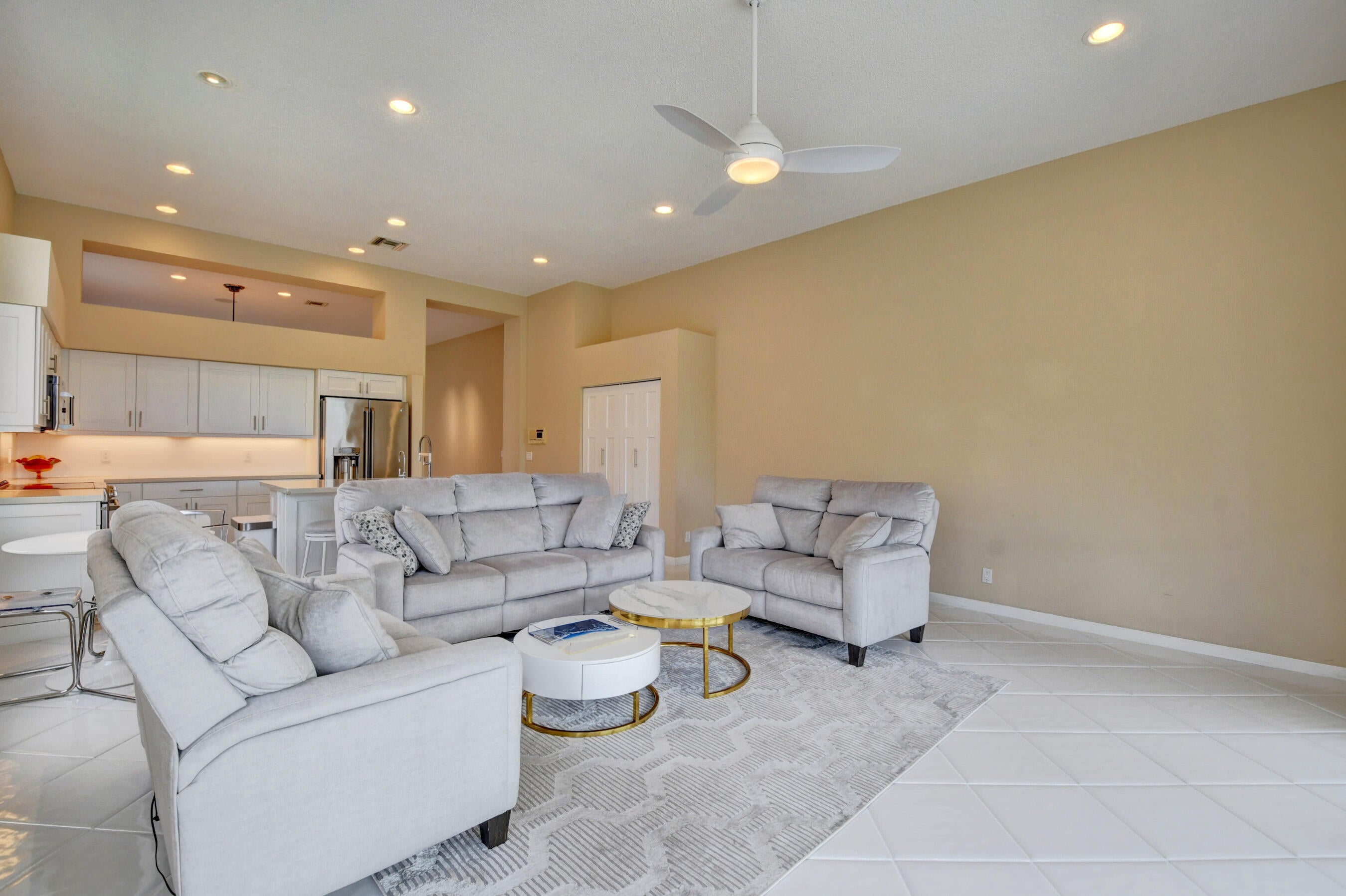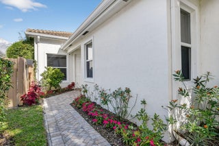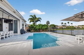 Discover refined single-story luxury in this impeccably updated ranch-style residence located in the exclusive Banyans village of Broken Sound Country Club. With just under 2,500 sq ft, this 3-bedroom, 3-bath home offers sophisticated living with soaring volume ceilings, full hurricane protection, and elegant electric window treatments throughout. The remodeled kitchen exudes modern elegance, featuring a large center island, sleek white cabinetry, and stunning quartz countertops, while all three bathrooms have been tastefully redesigned to reflect timeless style. Picturesque lake and pool views can be enjoyed from the kitchen, family room, and primary suite, enhancing the home's serene ambiance. Equally impressive outdoors, the exterior has been completely transformed with stunning newpavers and a widened driveway that provides ample parking space. The heated pool with a striking water feature serves as the focal point of the backyard, surrounded by a fenced yard overlooking the tranquil lake. The porcelain tile pool deck has been stone-blasted for improved texture and slip resistance, beautifully combining luxury and practicality. A covered patio with electric screens creates an ideal setting for seamless indoor-outdoor living, while low-maintenance AstroTurf along the side yard offers convenience without compromising aesthetics. Meticulously maintained and thoughtfully upgraded, this exceptional residence epitomizes upscale country club living.