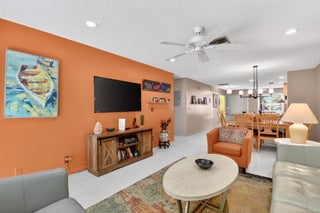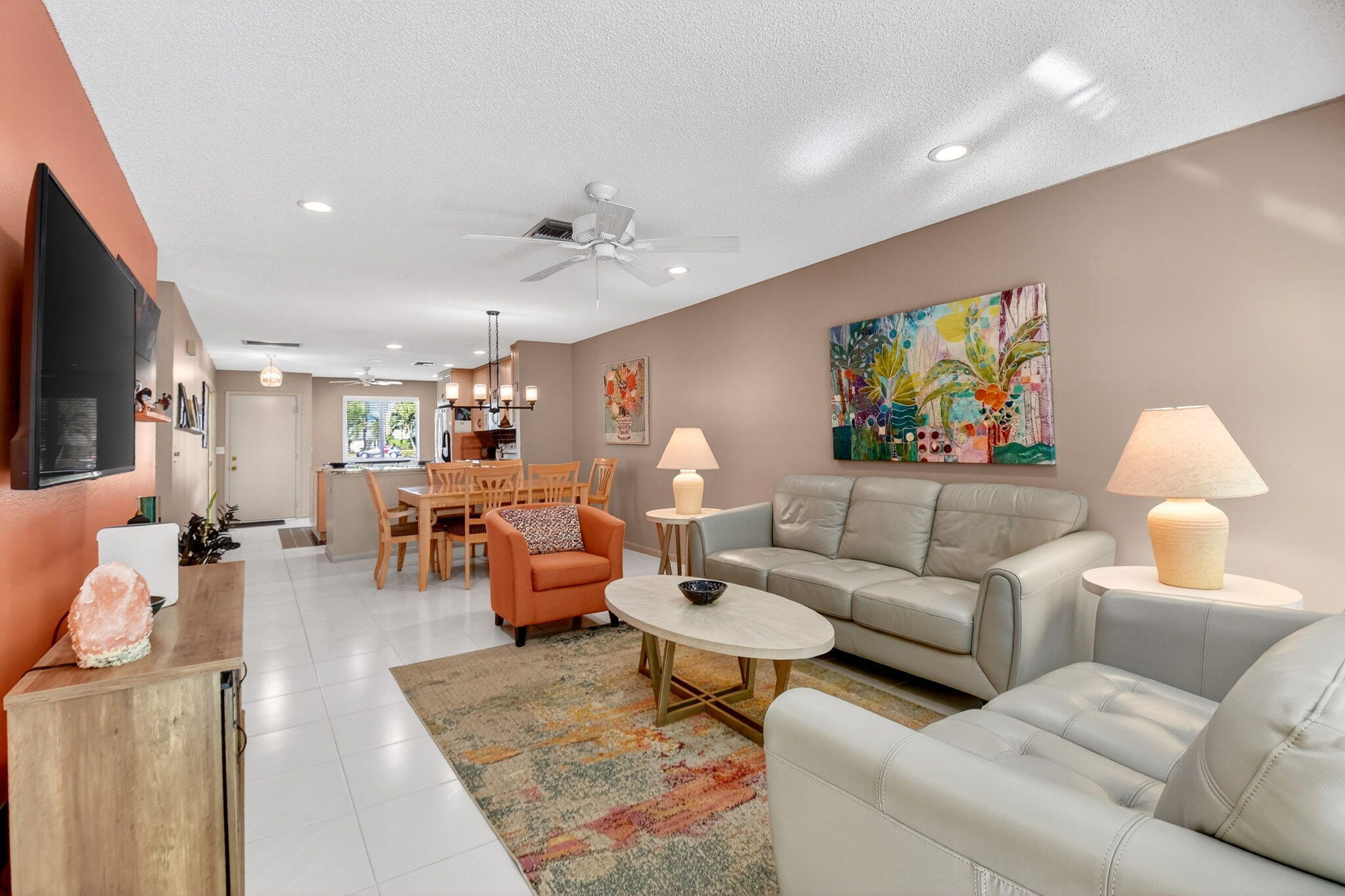 Light and bright, and beautifully updated entry-level living villa in Delray Beach. This meticulous villa features a renovated eat-in kitchen with an open-concept layout, granite countertops, solid wood cabinetry, and a central island--perfect for everyday living and easy entertaining.The home is tiled throughout and filled with natural light, enhanced by hurricane impact windows, recessed lighting, and new fixtures and fans throughout. Both bathrooms have been completely renovated; the primary bath offers a seated vanity and walk-in closet, while the guest bath features a flush-entry, no-step shower for ease and accessibility.Step outside to a quiet, peaceful backyard with an organic feel and generous space between neighboring villas. Open patio with additional screened lanai.