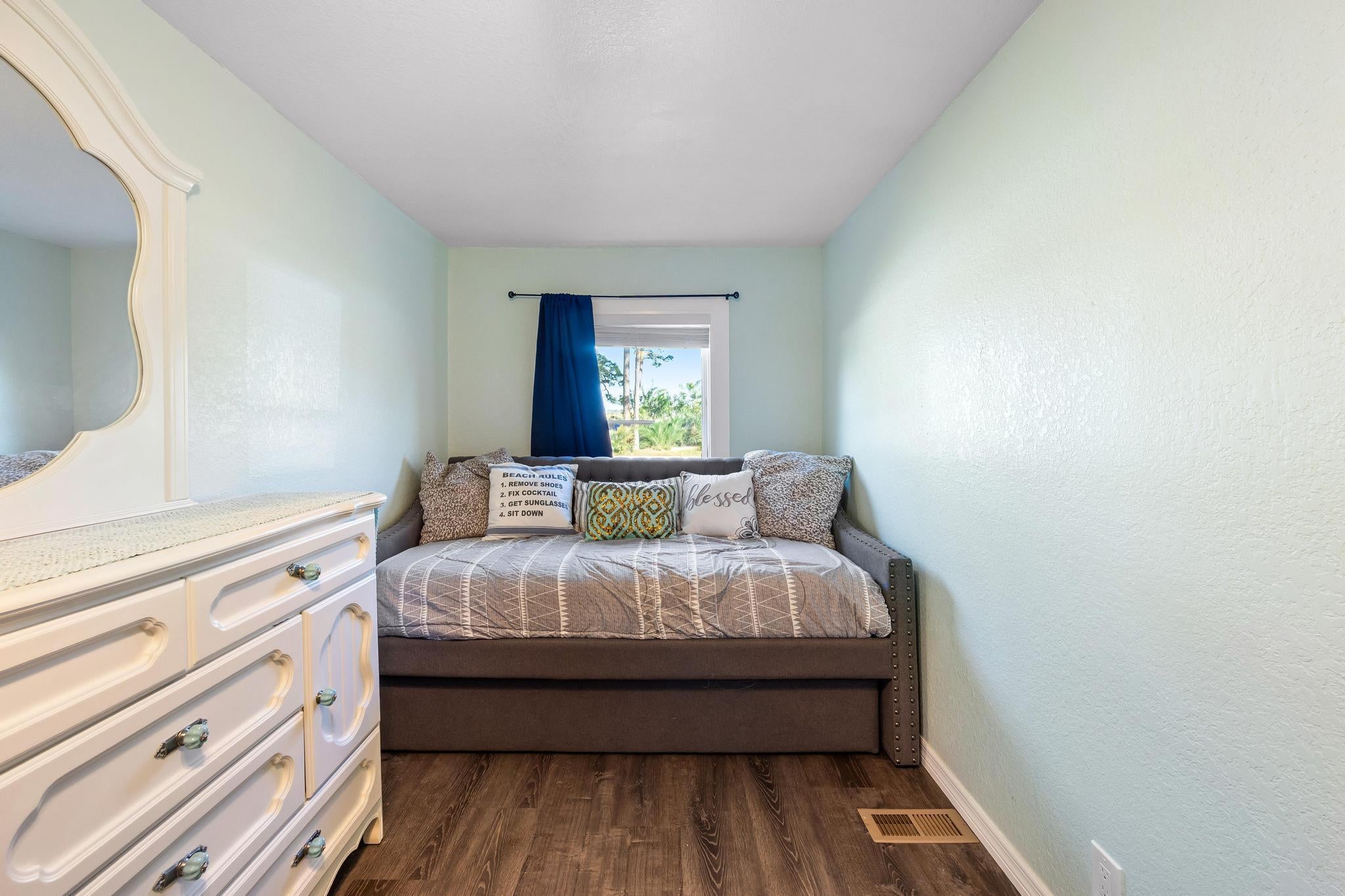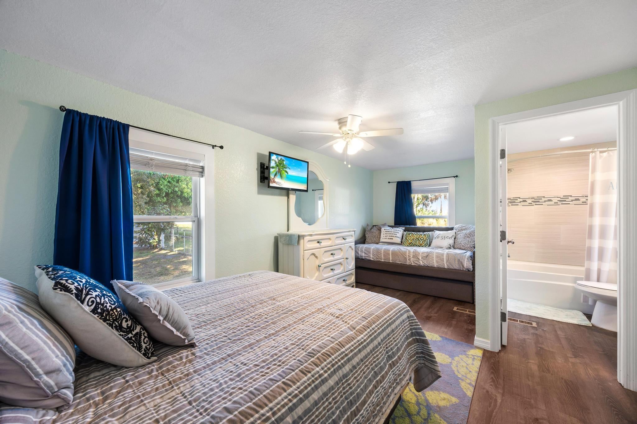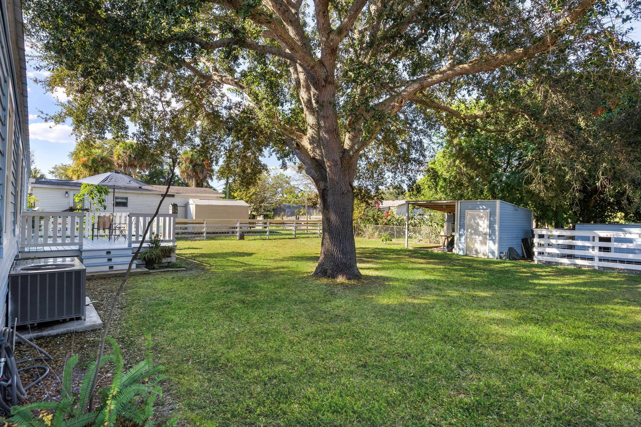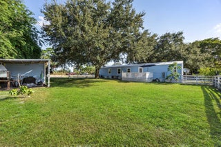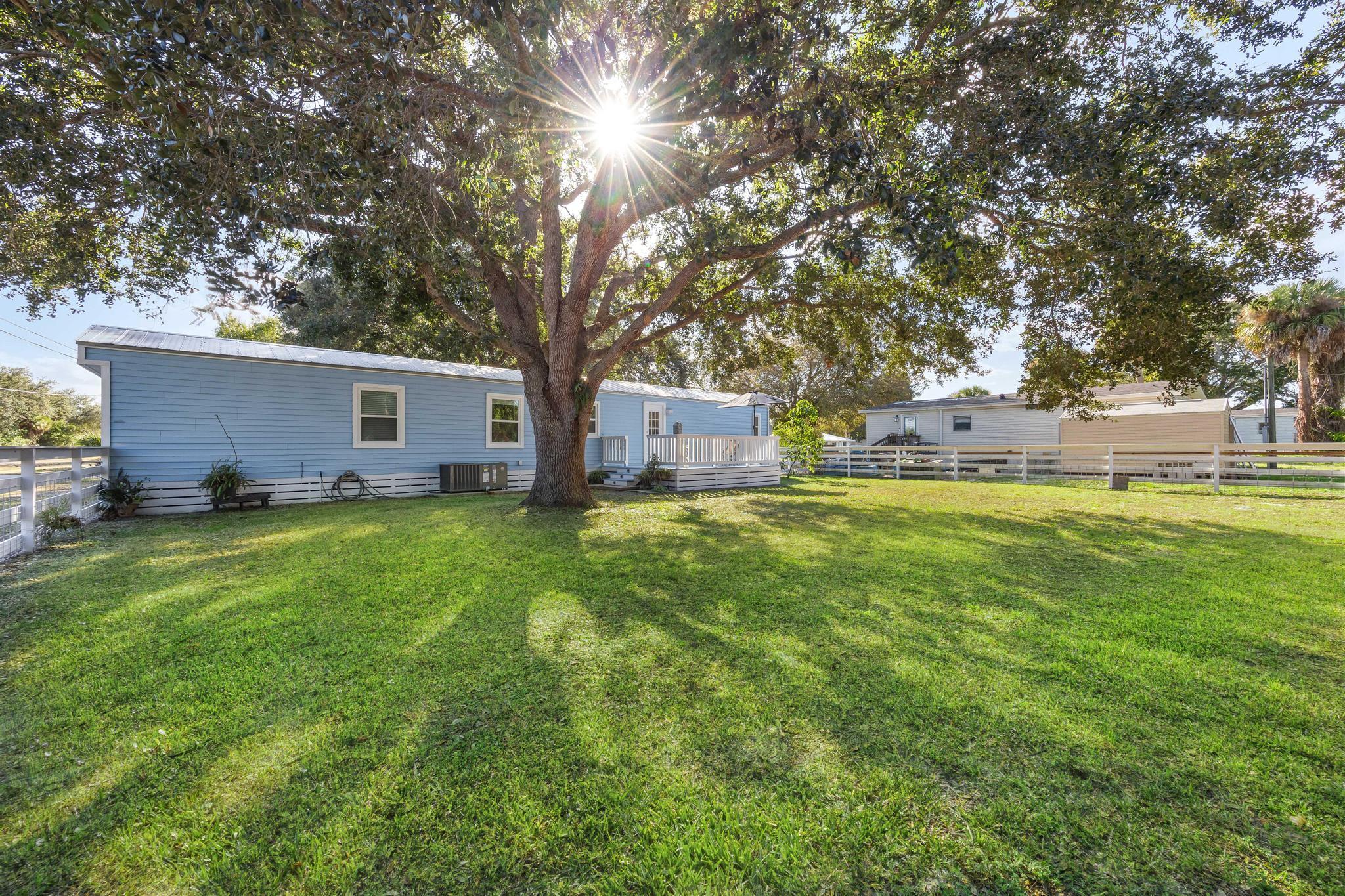 Great opportunity in the Green Acres community, just west of Treasure Coast International Airport in Fort Pierce! This fully renovated 2-bedroom, 2-bath manufactured home (2019) sits on a shaded corner lot. Each bedroom features its own custom bathroom. Highlights include a durable metal roof, energy-efficient double-hung windows, and a modern kitchen with granite countertops and soft-close cabinetry. The reinforced fenced big yard offers an outdoor storage shed and pet area. RV hookups and ample parking included. Conveniently located near beaches, fishing, shopping, and all the attractions of the Treasure Coast. Ideal as a primary residence, vacation or investment property!