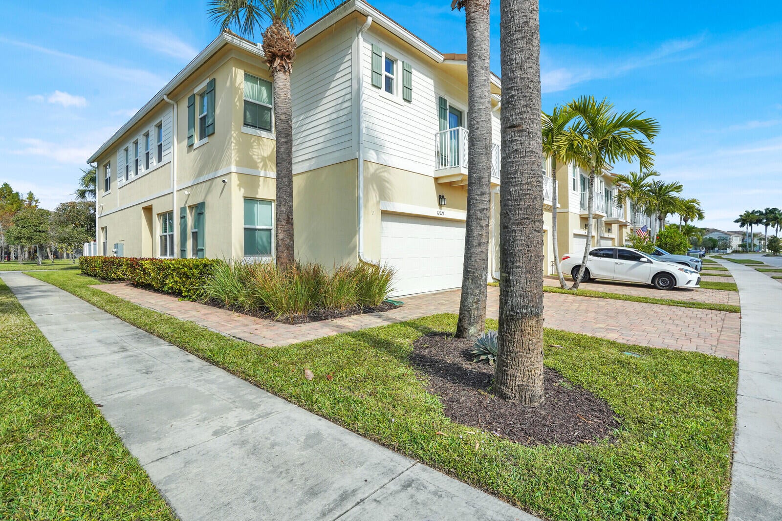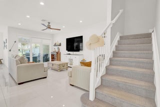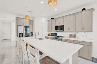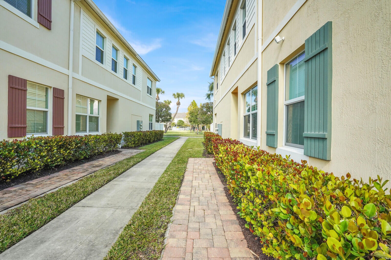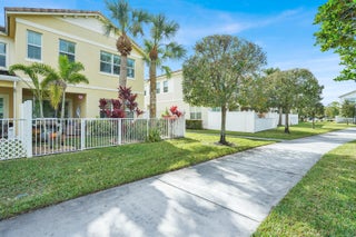 This ultra modern 2019 townhome offers 3 bedrooms, 3 full baths, a den, loft, and an oversized 2 car garage. Step through the new impact glass front door into a bright, open concept living space featuring high ceilings, 24'' white porcelain tile flooring, newer interior paint, and a stunning white quartz kitchen island. The kitchen is equipped with all new LG smart appliances and a convenient smart hub for connected living. The gorgeous primary suite includes a tray ceiling, a spa inspired bath with a frameless open shower, and a dual sink vanity.Additional highlights include an upstairs laundry room, plantation shutters, full impact windows, recessed lighting, and a Nest thermostat for energy efficient comfort. Enjoy exceptional outdoor living with pavers, lush landscaping, and fencing that creates a beautifully private retreat. Just a short walk through a large park area brings you to the community clubhouse with a pool and fitness room overlooking the lake. Ideally located near Wellington equestrian venues, Publix, Palm West Hospital, Palm Beach State College, shopping, and the airport.