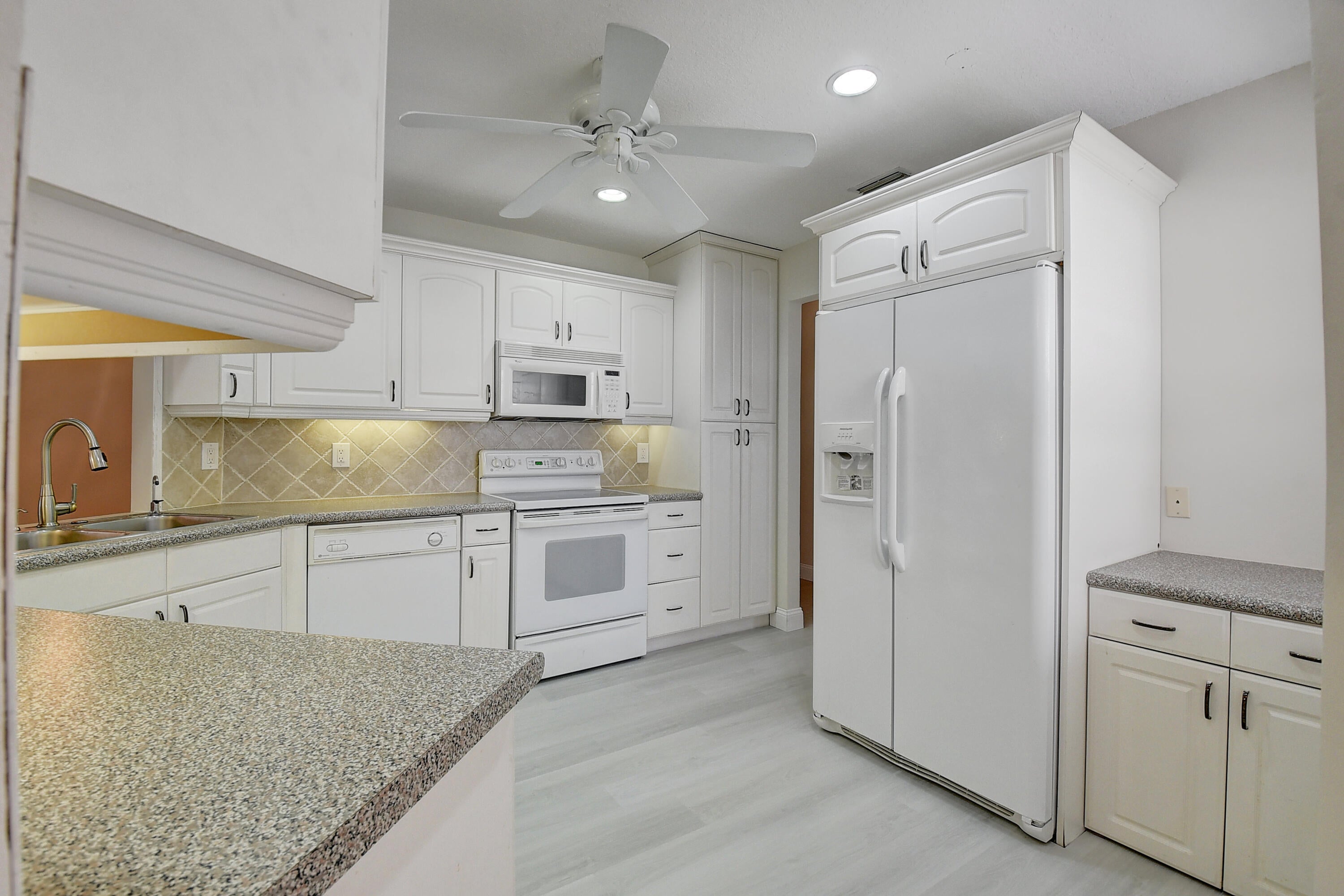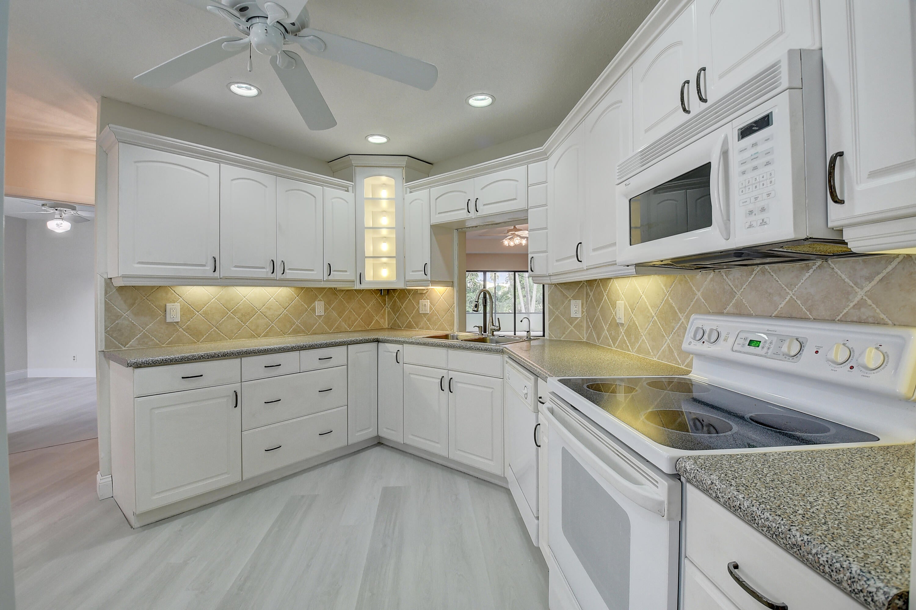 BRIGHT and SUNNY home with high ceilings throughout in the Boca Fontana neighborhood. NEW ROOF and beautiful flooring in the living areas and bedrooms. Perfect for entertaining in the elegant living room, dining and lounge areas. Bonus area of the utility room can be used as an office or additional storage. The patio overlooks a charming private yard. The community offers low HOA fees, 2 community pools, basketball & tennis courts.