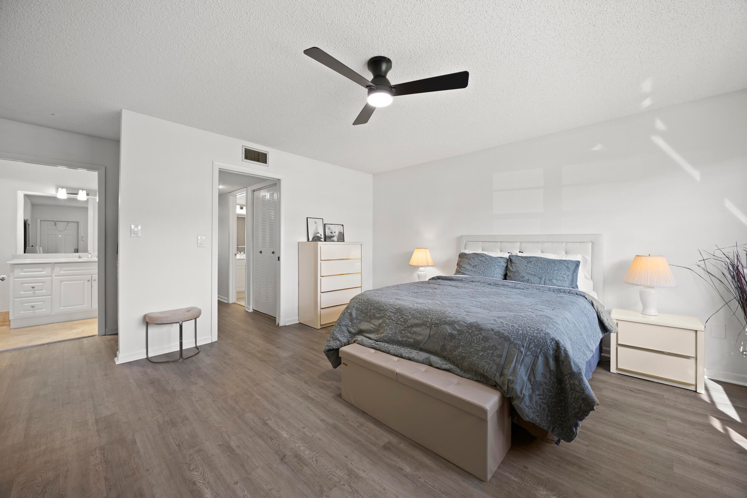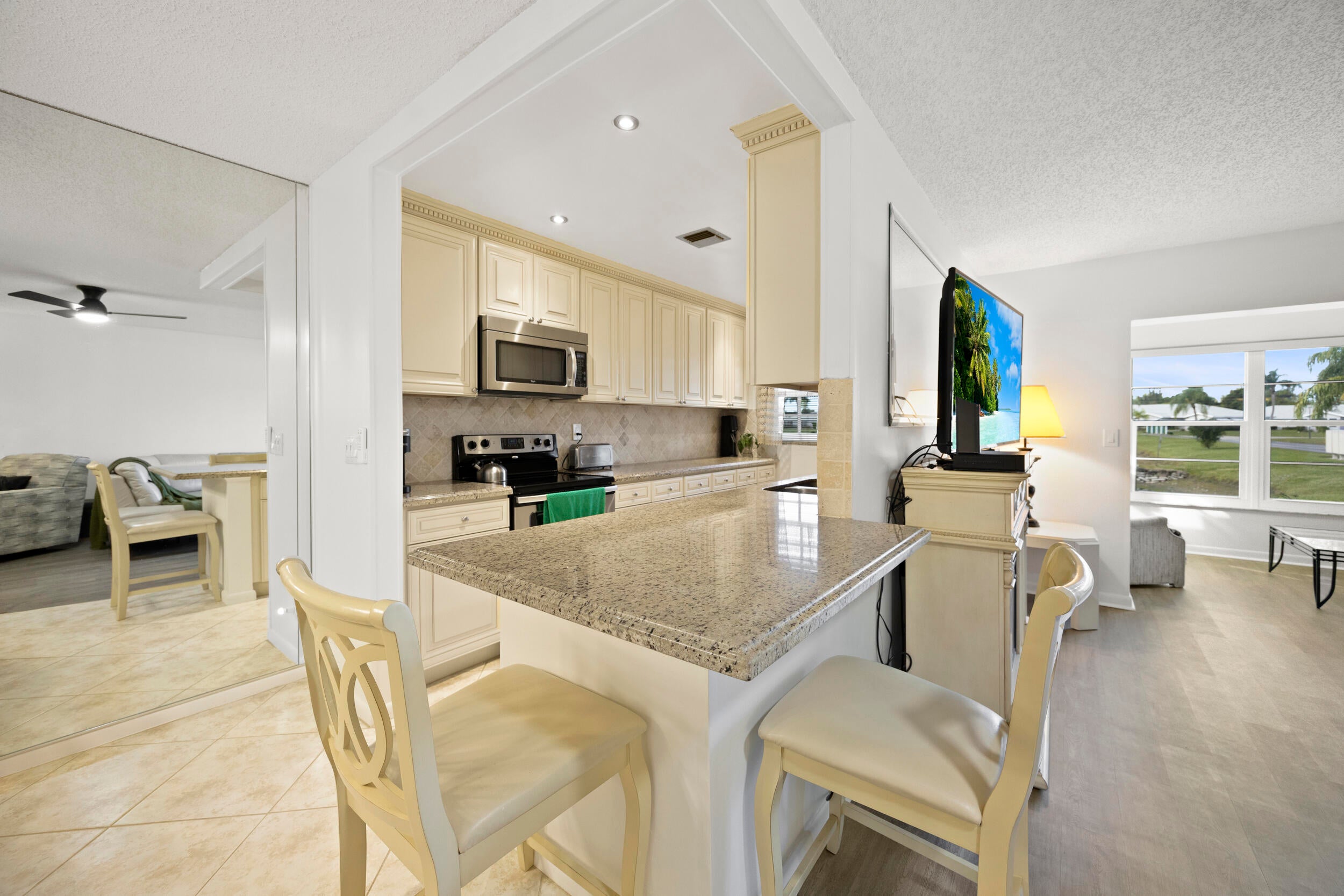 Welcome to effortless, move-in-ready living in the desirable High Point community. This beautifully updated 1 bedroom, 2 bathroom residence has been refreshed from top to bottom and truly has it all.Step inside to a bright, modern feel with new interior paint and new vinyl flooring throughout, giving the home a clean, cohesive look that is both stylish and easy to maintain. The updated kitchen is perfect for everyday cooking and entertaining, while both updated bathrooms add comfort and a polished finish. Major improvements are already done for you, including a new AC unit and a new hot water heater, offering peace of mind for years to come. Plus, hurricane impact windows provide added security, energy efficiency, and storm protection.High Point is a welcoming 55 and over community known for its friendly atmosphere and active lifestyle. Residents enjoy resort-style amenities including a clubhouse, community pool, and a variety of social activities, all set among beautifully maintained grounds. Conveniently located close to shopping, dining, and all that Delray Beach has to offer, this is Florida living at its easiest. Wake up to soft morning light as the sunrise fills the villa with warmth and brightness. Afternoon sun flows through the sunroom, living space, and kitchen, leading into beautiful daily sunsets overlooking a tranquil lake. Enjoy the gentle sound of the fountain and views of a lush garden with red fire spike plants and fragrant cranium lilies, their scent drifting in through open windows. A peaceful, light-filled home meant to be enjoyed every day.