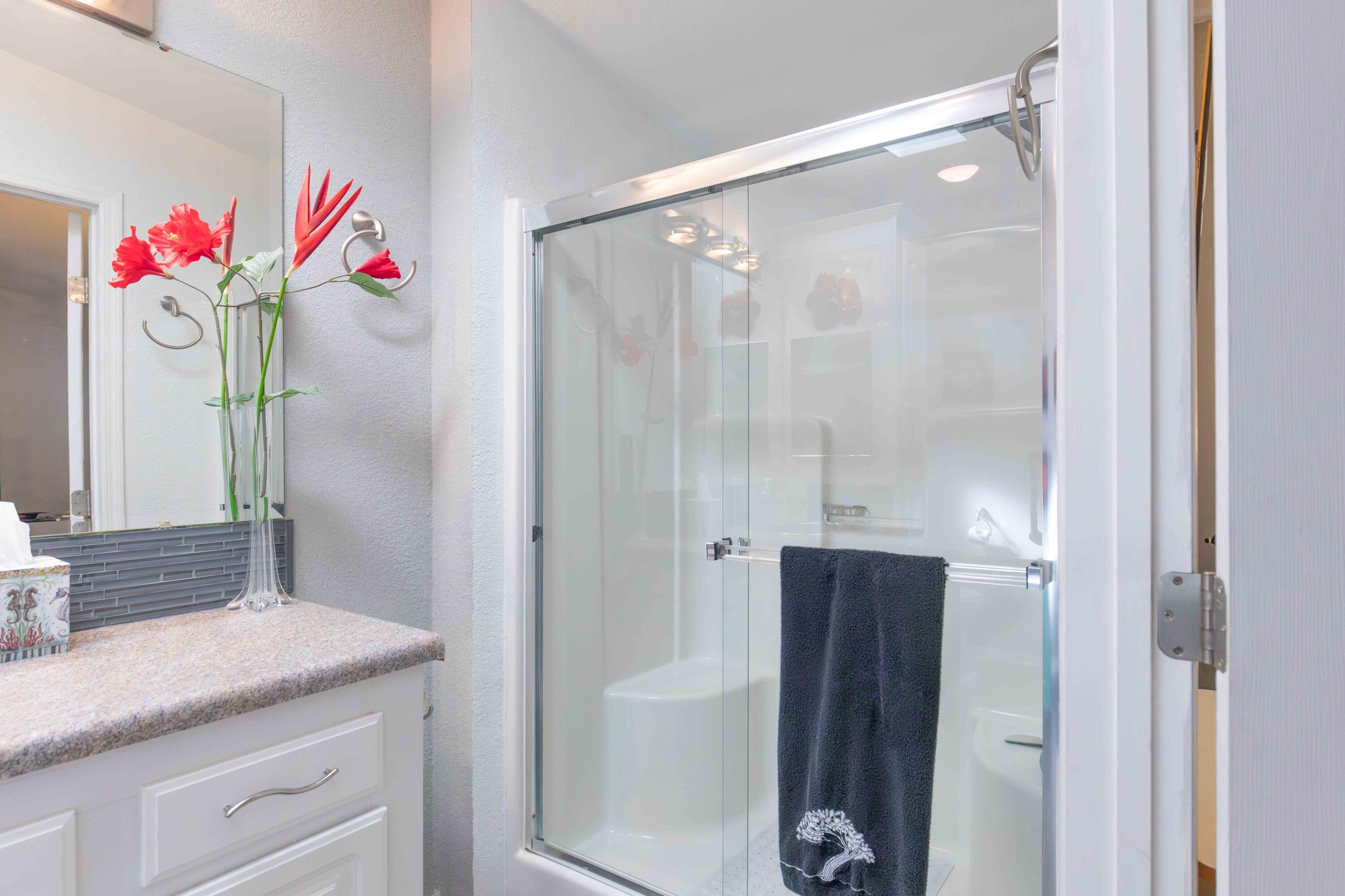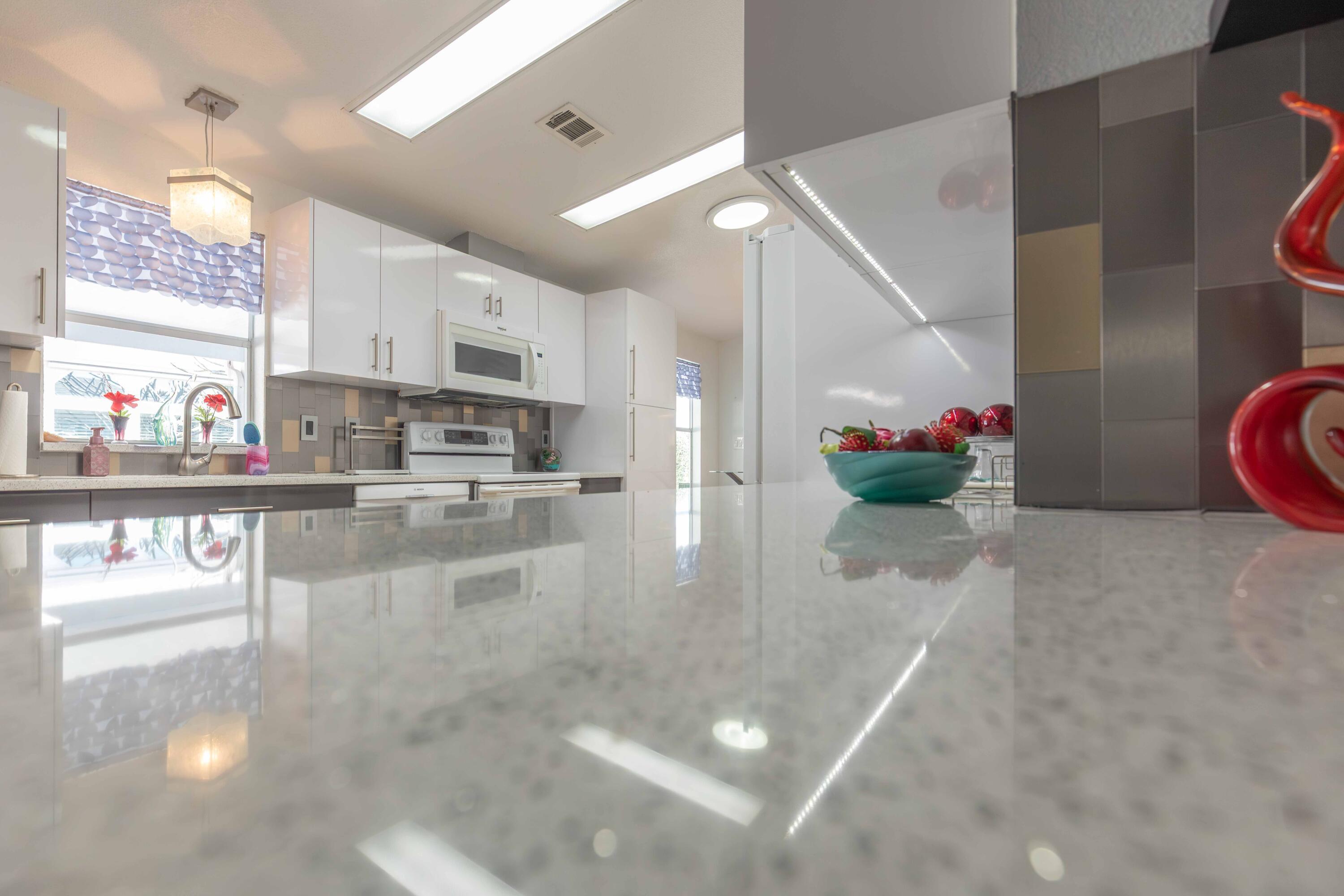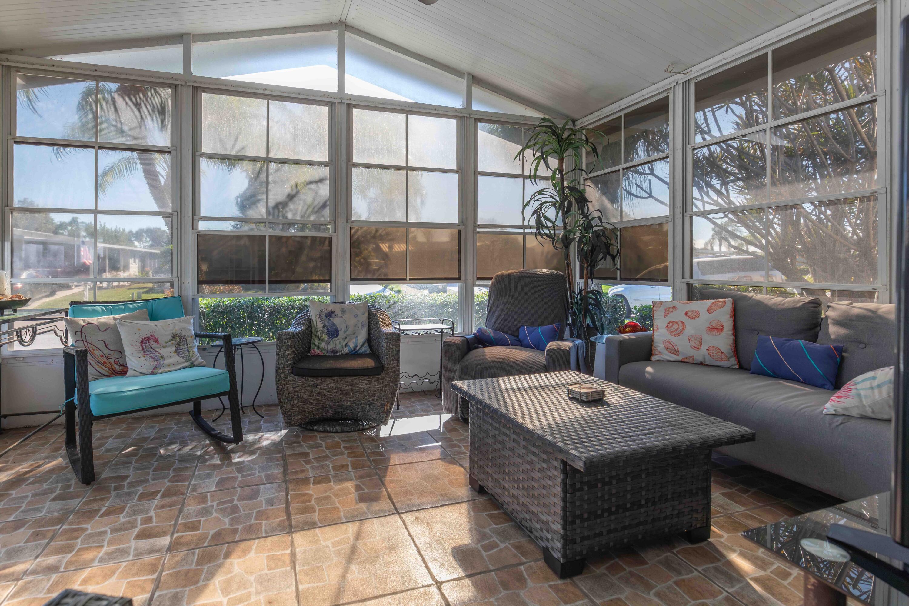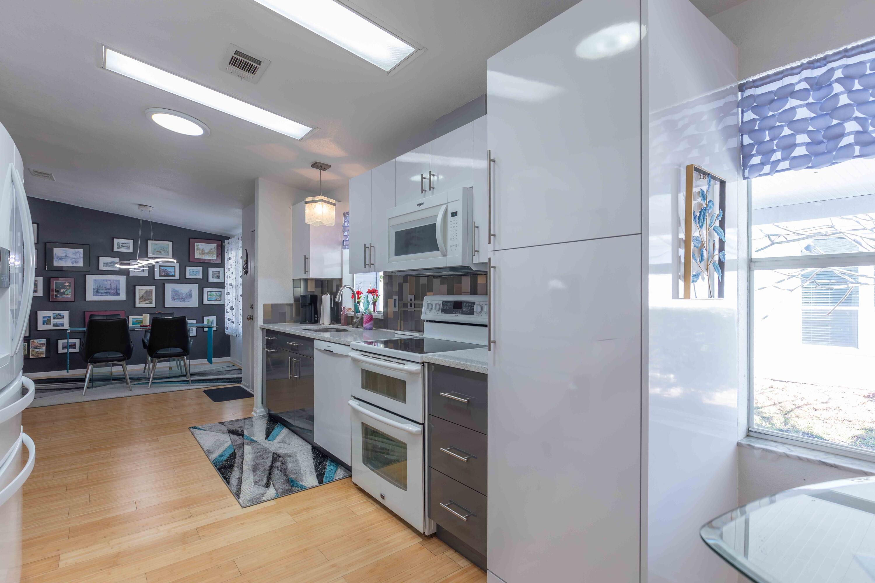 SELLER IS MOTIVATED. WILL ENTERTAIN ANY REASONABLE OFFER. THIS HOME WILL NOT DISAPPOINT. OFFERED FULLY FURNISHED/TURNKEY. Beautifully updated with new cabinets with soft close doors and drawers, Quartz Countertops, under & upper cabinet lighting, Two bedrooms with den (which could be made into a 3rd bedroom - currently has a wonderful bar area & French doors), New roof & skylights in 2019, new H2O heater in 2019, A/C 2016 (just put a new fan motor), hurricane shutters (in shed). Grill conveys. This is a land lease property.