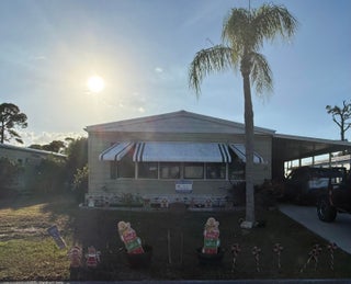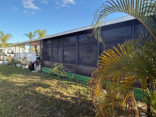 Motivated seller. 2-bedroom 2-bath home on the golf course in the 55+ community of Spanish Lakes Country Club. The home has a large Florida room and a backyard patio overlooking the golf course. Lawn care, trash removal and all amenities are included in the lot rent. Amenities include two pools, tennis, pickleball, bocce, shuffleboard, a clubhouse, and more.