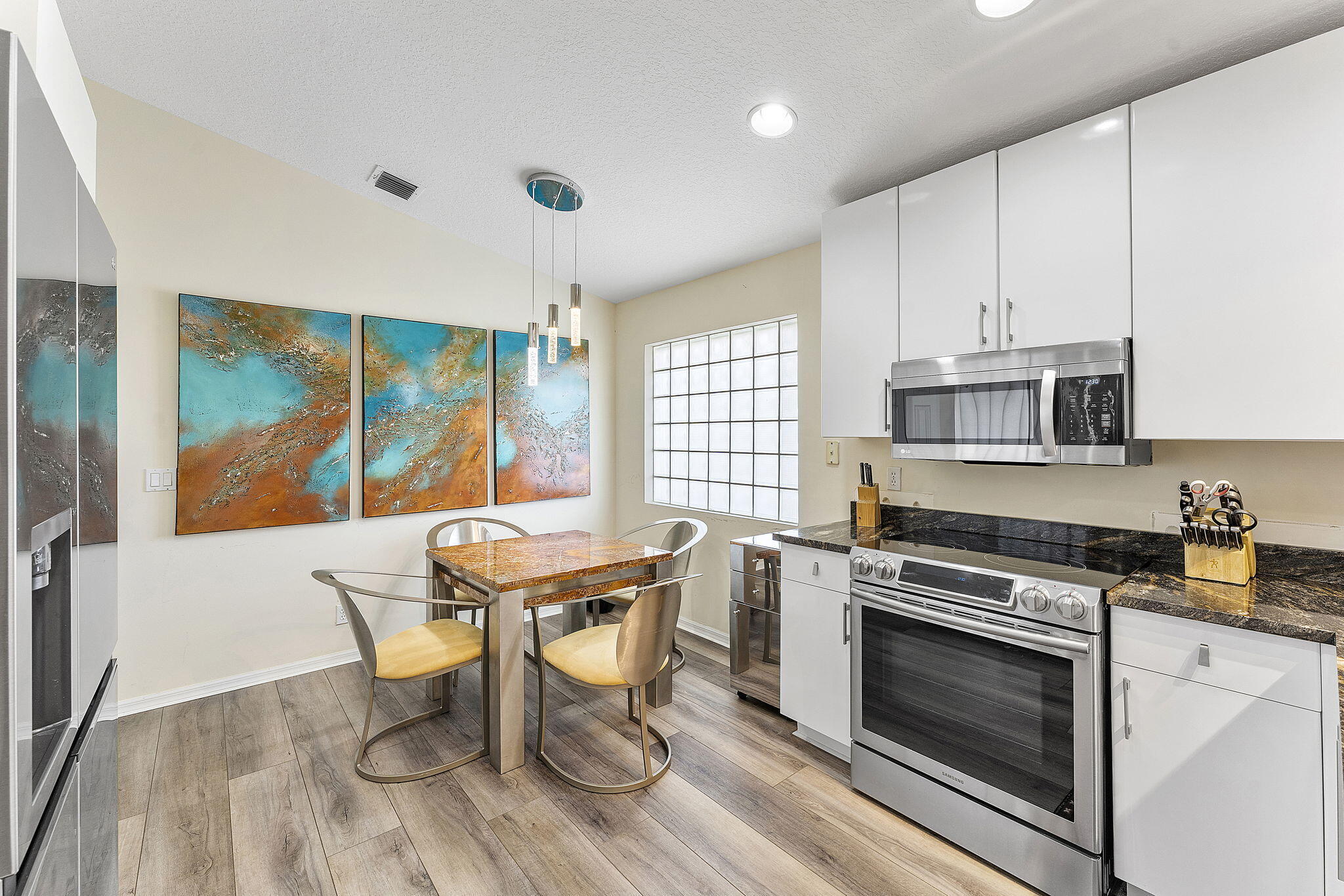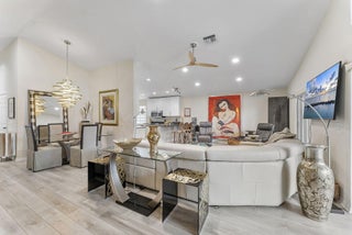 Lovely 3BR 2 BA 2 Car garage home in 55 + San Marco of Westchester Estates. Open kitchen is newly renovated with designer Quartz counter. European Style cabinetry and new stainless appliances. High end vinyl wood flooring throughout. New ceiling lights and both baths have been updated. Glass sliders off living area and Primary Bedroom. Full house accordian shutters. Community offers various amenities including : clubhouse, fitness center, swimming pool, tennis, pickleball, clubs and activities. This active lifestyle community is conveniently located to shopping, restaurants, golf, major roadways and entertainment venues. This is a pet friendly community.