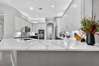 Must see beautifully renovated one story 4 Bed / 3 Bath located in the prestigious Casa Bella. You'll be welcomed by a formal foyer with soaring ceilings, an open concept floor plan with commercial grade flooring throughout and views that go straight through to the stunning backyard. Outside is a private resort-style oasis with a custom built outdoor kitchen / bar, pool and huge patio with plenty of room perfect for entertaining. Inside the kitchen has been fully renovated with a modern look, new quartz counters and newer appliances. The primary suite is spacious with custom closet built ins. The primary bathroom has been completely custom built with fixtures imported from Europe, floor to ceiling porcelain tile, and a custom built dual shower with 18 shower heads. Must see call today!!