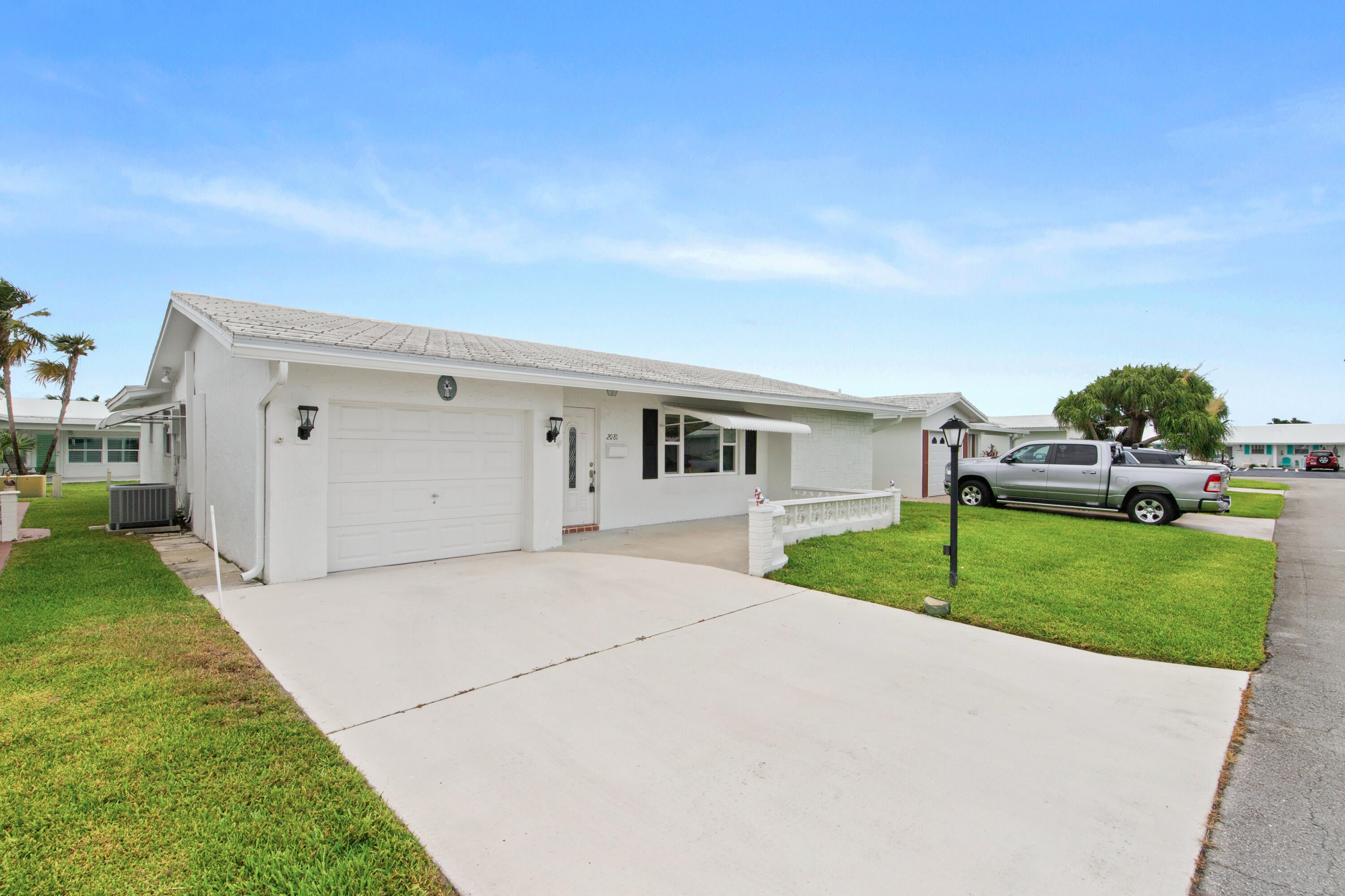 Nestled within 55+ Palm Beach Leisureville, this updated Challenger model offers 2 master ensuites with walk in closets and updated bathrooms. The kitchen has granite counters and custom cabinets, tile floors throughout. Impact slider door leads out to a large patio and backyard. The spacious living area provides ample room for relaxation or entertainment. The community offers a wealth of amenities tailored for an active and social lifestyle including 3 heated pools with club houses, hot tub, fitness center. FREE 18-hole golf course. Close to shopping, dining, beaches, seaside recreation and Palm Beach International Airport. Schedule a viewing today and discover the endless possibilities awaiting you in this charming community!