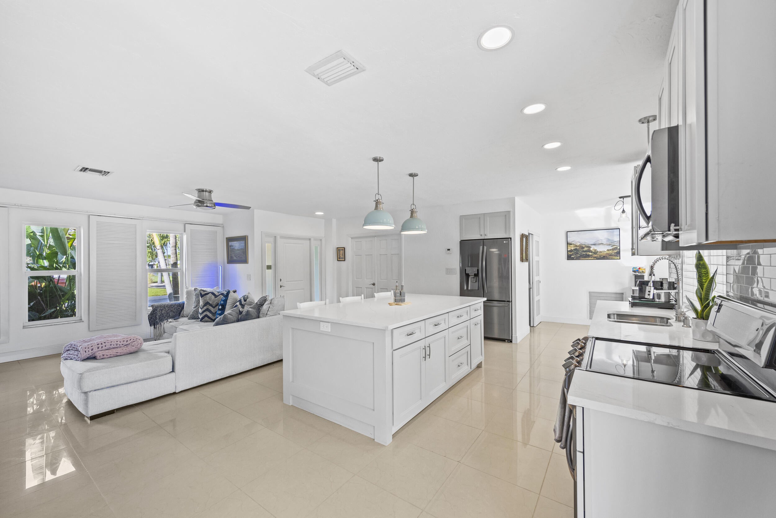 Beautifully remodeled 4-bedroom, 2-bathroom pool home with a 2-car garage, ideally located in the heart of the City of Boynton Beach. Situated in a desirable community with NO HOA, this bright and open residence sits on a large, fully fenced corner lot of approximately 1/4 acre, featuring mature mango, avocado, and coconut palm trees. The home offers an open-concept layout with tile floors throughout, abundant natural light, impact windows and doors, and a modern kitchen complete with a center island, pantry, quartz countertops, and stainless steel appliances. The spacious backyard includes an open porch perfect for entertaining, a sparkling pool, and a convenient cabana bath. Ideally located just minutes from I-95, Palm Beach International Airport, beautiful beaches, and golf courses.Make this stunning home your today!