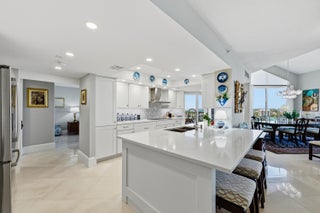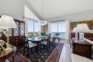 Experience coastal living at its finest in this fully renovated oceanfront residence. Perhaps the most incredible 4 bedroom 3 bathroom penthouse in Ocean Village. This condo is a true masterpiece, thoughtfully designed with top tier finishes. Owner spared no expense with stainless steel Bosch appliances, Dutch ovens, deep sink, in cabinet microwave with warming drawer, wine refrigerator, quartz countertops. Vaulted ceilings, electric fireplace and 8' mahogany doors and stairway that leads to office, bedroom, bathroom and private roof top terrace. Enjoy skyline views of the ocean and intracoastal. Condo has 2 central AC units. Amenities include 9 hole golf course, restaurant, tikibar, pools, tennis, pickle ball courts and new gym and clubhouse. This exceptional residence truly has it all.