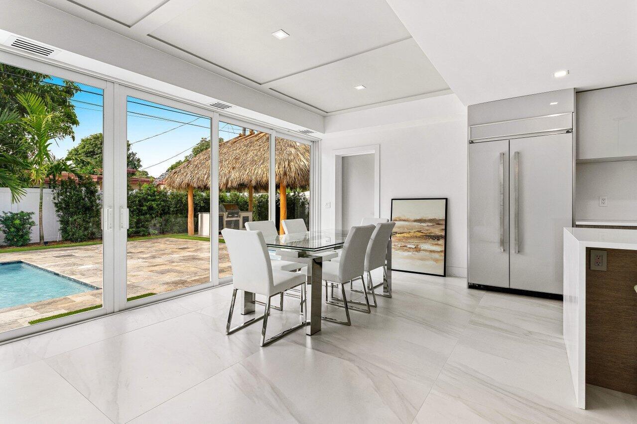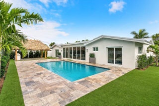 Completely gutted and rebuilt, this stunning 3BD/2BA home in the desirable Chapel Hill neighborhood is like new construction! Located just minutes from downtown Delray Beach and less than 2 miles to the ocean, enjoy luxury living in a prime location. Features include: impact glass, new standing seam metal roof (25-year warranty), updated electric & plumbing, spray foam insulation, Level 5 drywall, Italian porcelain tile throughout, custom kitchen w/quartz waterfall island, gas range, and wet bar. Spa-like primary suite with marble bath, soaking tub & sliders to the pool. Gorgeous backyard w/vanishing edge pool, marble deck, turf, tiki hut w/summer kitchen, TV, epoxy garage, & plans available for 4th BR/3rd BA. Nothing left to do--just move in!Set on a large corner lot with southern exposure, this 3-bedroom, 2-bath home spans nearly 1,900 square feet under air and boasts over 2,300 total square feet of luxurious indoor-outdoor living. The home features a new standing seam metal roof with a 25-year warranty, impact glass throughout, synthetic stucco exterior that never needs painting, all-new electrical and plumbing, and Icynene spray foam insulation for maximum efficiency. Every detail inside speaks to quality and sophistication, from the 48x48 Italian porcelain tile flooring and Level 5 drywall finish to the Eurotek interior doors, modern recessed lighting, and high-end Kohler fixtures. The open-concept kitchen is a showstopper, featuring two-toned custom cabinetry, white quartz waterfall island, side-by-side fridge and freezer columns, gas range, and a built-in wet bar. A pantry with built-in electric adds functionality. The primary suite is a tranquil retreat with sliders opening to the pool, dual closets, and a spa-like bath featuring a freestanding soaking tub, walk-in shower, dual sinks, and designer marble finishes. Every bedroom includes access to an ensuite-style bath for ultimate comfort. Step outside to your private paradise: a new vanishing edge pool with Diamond Brite finish, marble pool deck, and a lush, professionally landscaped yard with turf, new irrigation, and dramatic lighting. Entertain in style under the large tiki hut with a summer kitchen, infrared grill, TV, and under counter fridge - all surrounded by a PVC privacy fence for a true backyard oasis. Additional highlights include: - Low-voltage Control4 smart system - Ring security system with cameras - New tankless water heater and A/C - Modern electric fireplace and cove ceiling features - Garage with epoxy floors and new door - Plans available to add a 4th bedroom and 3rd bath This is not a cosmetic flip - it's a total transformation with quality at every turn. Move right in and enjoy the best of South Florida living, minutes from the beach and Delray's famed lifestyle. The information published and provided including but not limited to prices, measurements, square footages, lot sizes, features, finishes, and calculations are subject to errors, omissions or changes without notice. All such information should be independently verified. All parties should perform their own due diligence to verify all information.