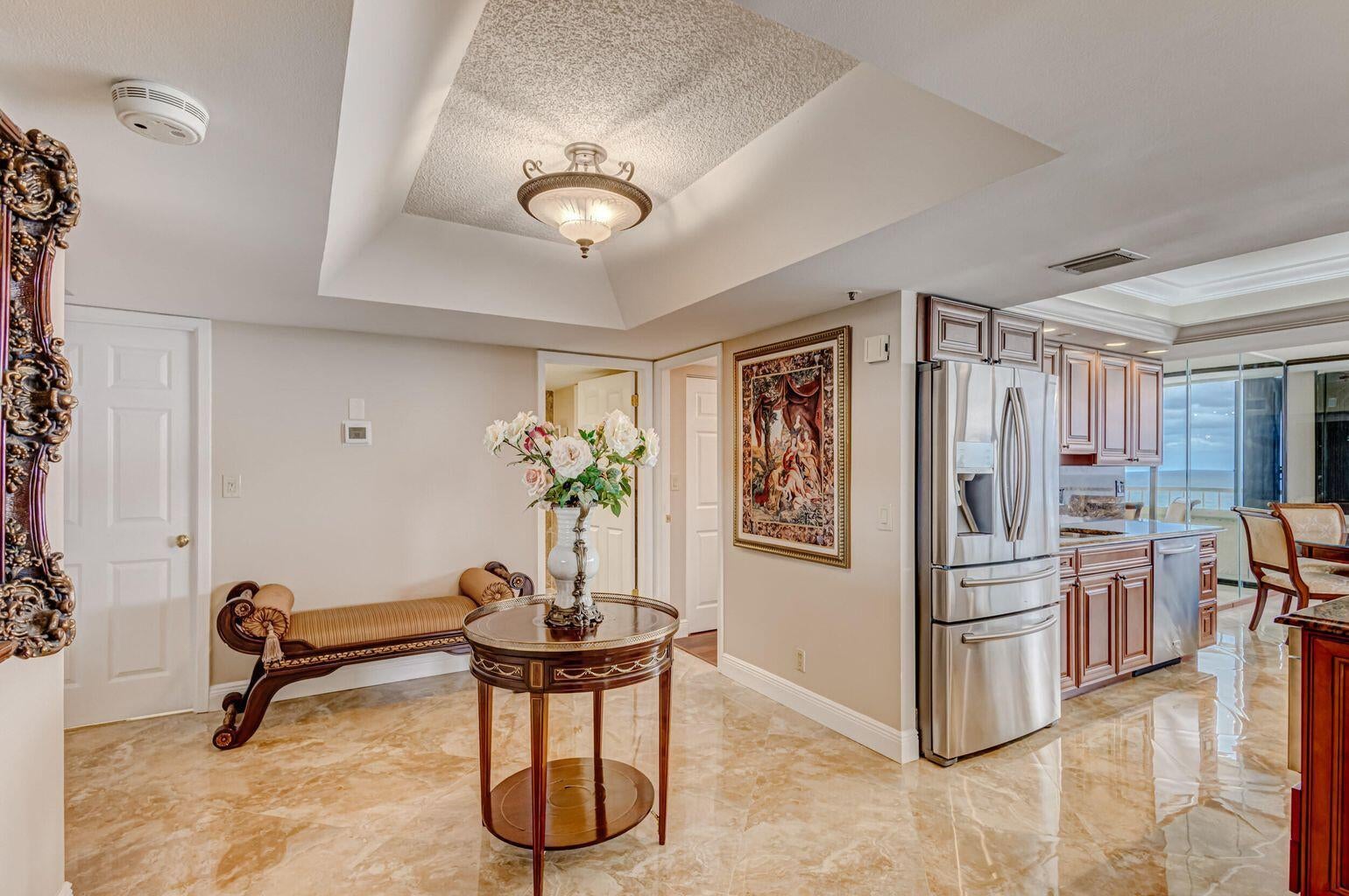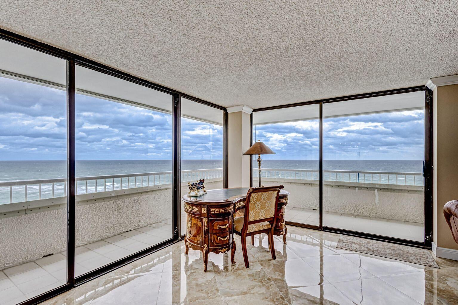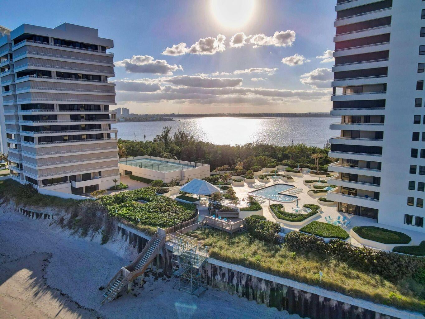 Spectacular Direct Ocean & Intracoastal Residence on Singer IslandExperience breathtaking direct panoramic views of the brilliant blue Atlantic Ocean and the Intracoastal Waterways from your expansive 57-foot wraparound balcony, offering unmatched sunrise-to-sunset coastal living. This fully renovated residence combines elegance, comfort, and functionality, designed to maximize both views and lifestyle.The open-concept kitchen features custom cabinetry, stainless steel appliances, and granite countertops, seamlessly flowing into the main living areas--ideal for entertaining or everyday enjoyment. The home showcases porcelain tile flooring throughout, a desirable split-bedroom floor plan, and two beautifully renovated bathrooms with refined finishes.Additional highlights include a dedicated laundry room with washer and dryer in unit and garage parking. Residents enjoy a full array of resort-style amenities, including a heated pool, Jacuzzi/spa, clubhouse, fitness center, tennis courts, billiards room, and 24-hour security gate. Most importantly, step outside to miles of pristine sandy beach just footsteps from your door, delivering the quintessential Singer Island lifestyle. This is a rare opportunity to own a move-in-ready oceanfront residence offering spectacular views, luxury finishes, and world-class beachfront living.