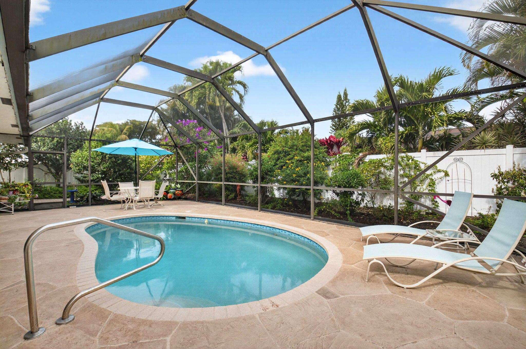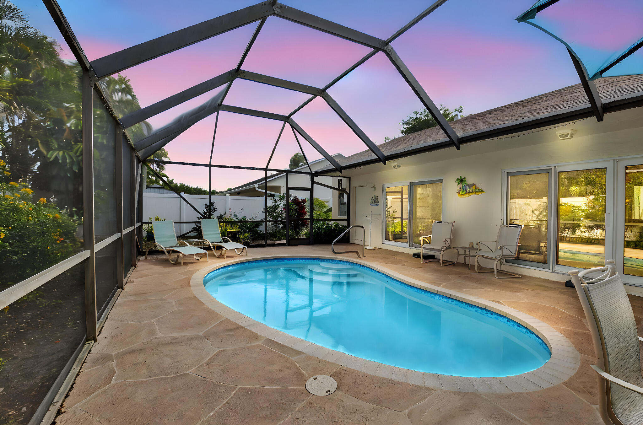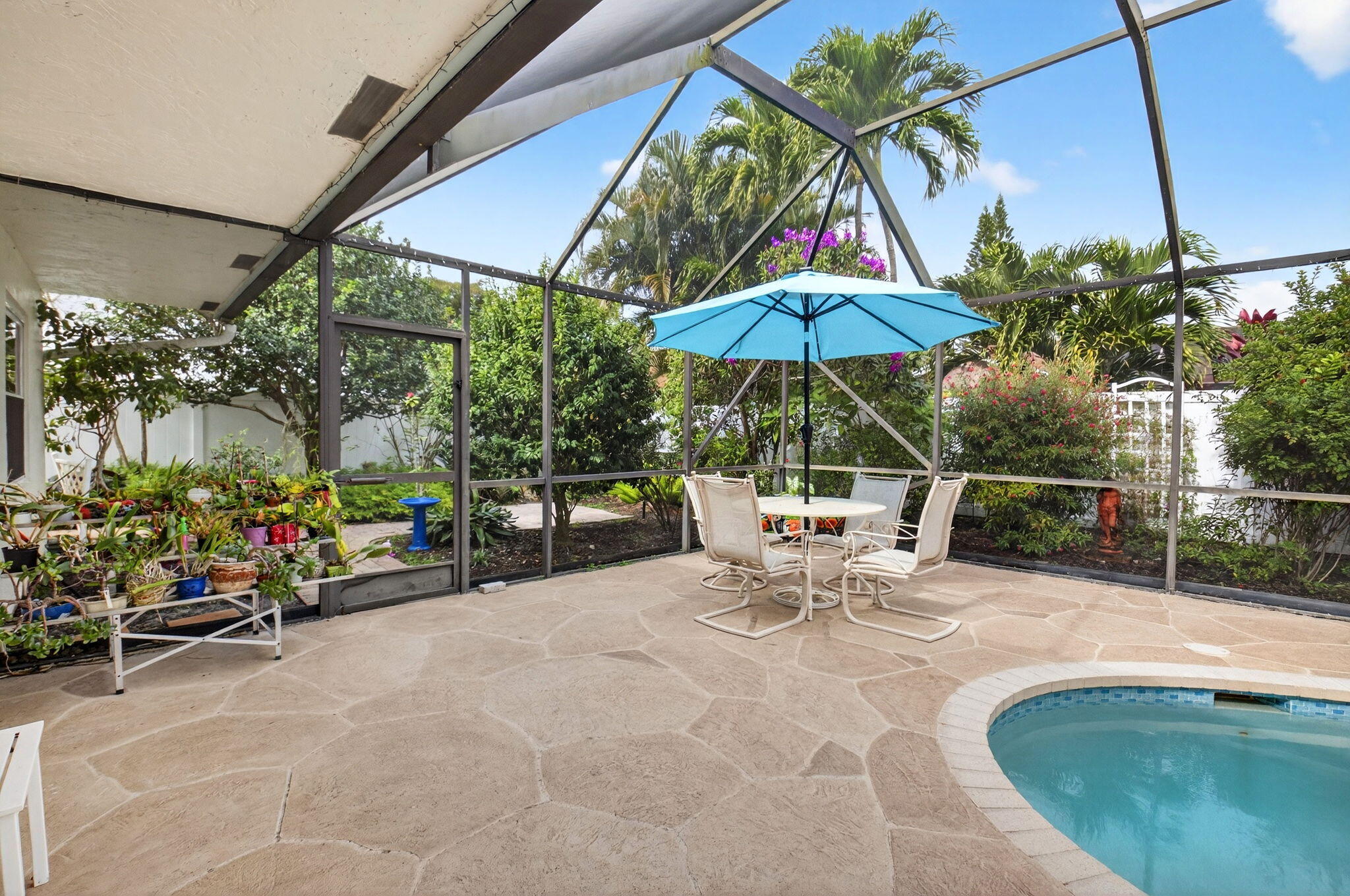 Move-in ready and made to impress! This beautifully updated home features a NEW roof (11/2025), all impact glass, NEW gutters (1/2026), newer A/C (2019), hot water heater (2024), and pool pump (2024)--the big-ticket items are DONE. Enjoy a stunning updated primary bathroom (2024), a private screened-in pool, and a NEW PVC privacy fence creating the perfect backyard retreat. The yard itself is a true butterfly haven, offering color, peace, and privacy. NO breed or dog restrictions--bring all the pets. The home may be sold furnished if desired, or furniture can be removed, making the move easy either way. Stylish, low-maintenance, and truly turnkey--this one checks all the boxes. Minutes from I-95, local parks and shopping.