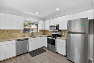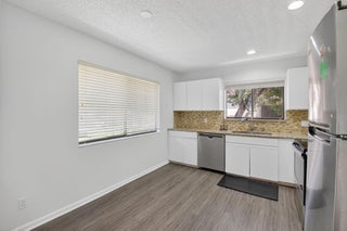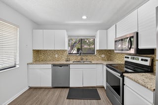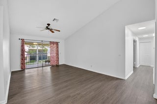 Tucked away on a quiet cul-de-sac in the all-ages Coach Houses of Town Place community, this spacious 3-bedroom, 2-bath home with a 1-car garage offers peace, privacy, and convenience. This is a highly desirable corner unit offering abundant natural light and a private front door entrance. The freshly painted interior features wood-look laminate flooring and vaulted ceilings, creating an open and airy feel throughout. Enjoy a large eat-in kitchen, separate dining area, and a comfortable living room - perfect for entertaining. Step out onto the expansive screened-in balcony and take in views of a lush green area shaded by a mature banyan tree. The stacked bedroom floor plan includes a primary suite with a walk-in closet and an ensuite bathroom featuring dual sinks and a sunken tub. Twoadditional bedrooms and an in-unit laundry room round out this lovely home. Other notable features include a new AC (1 year) and newer hot water heater (4 years). Ideally located near Town Center Mall, FAU, Lynn University, A-rated public schools, dining, shopping, and beaches. Residents enjoy access to the community pool.