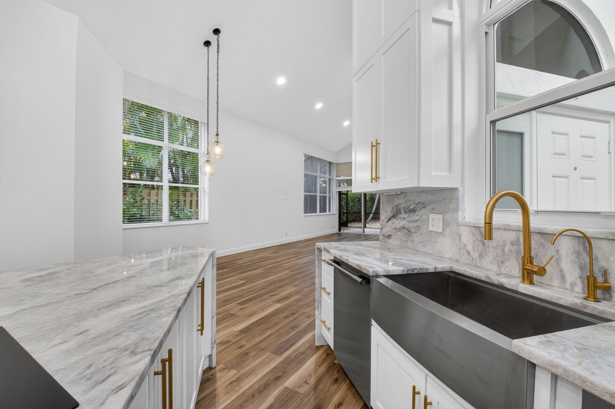Nestled within the prestigious Banyans of Broken Sound Country Club, this beautifully updated single-family residence offers the perfect blend of elegance and comfort. Featuring three spacious bedrooms and three full bathrooms, the home boasts an open, light-filled floor plan enhanced by soaring high ceilings and seamless living spaces.Completely updated throughout, the residence showcases modern finishes, refined details, and a thoughtfully designed layout ideal for both everyday living and entertaining. Enjoy the exclusive lifestyle of Broken Sound Country Club, with its world-class amenities, lush landscaping, and unmatched sense of community--all within a home that is truly move-in ready.**Key Features:** - Roof Replaced in 2021 - Primary bathroom renovated September 2025 - Impact windows on the kitchen side of the house & accordian shutters on the opposite side. - Kitchen has large marble center island in kitchen with induction electric cooktop, separate ice maker, & water filtration system. - AC split system added to garage, garage newly tiled. - Smooth walls and new recessed lights in the main living area. - Plenty of room for a pool in the backyard