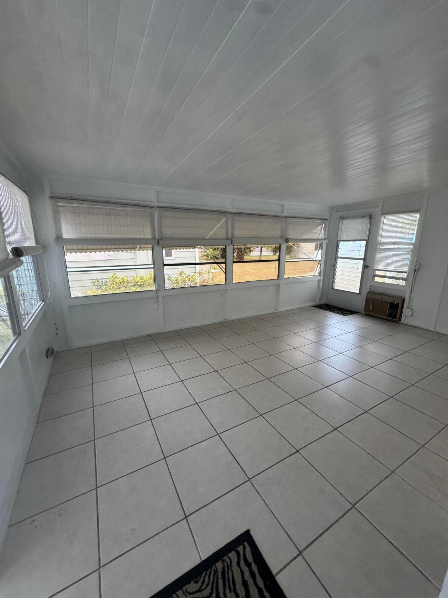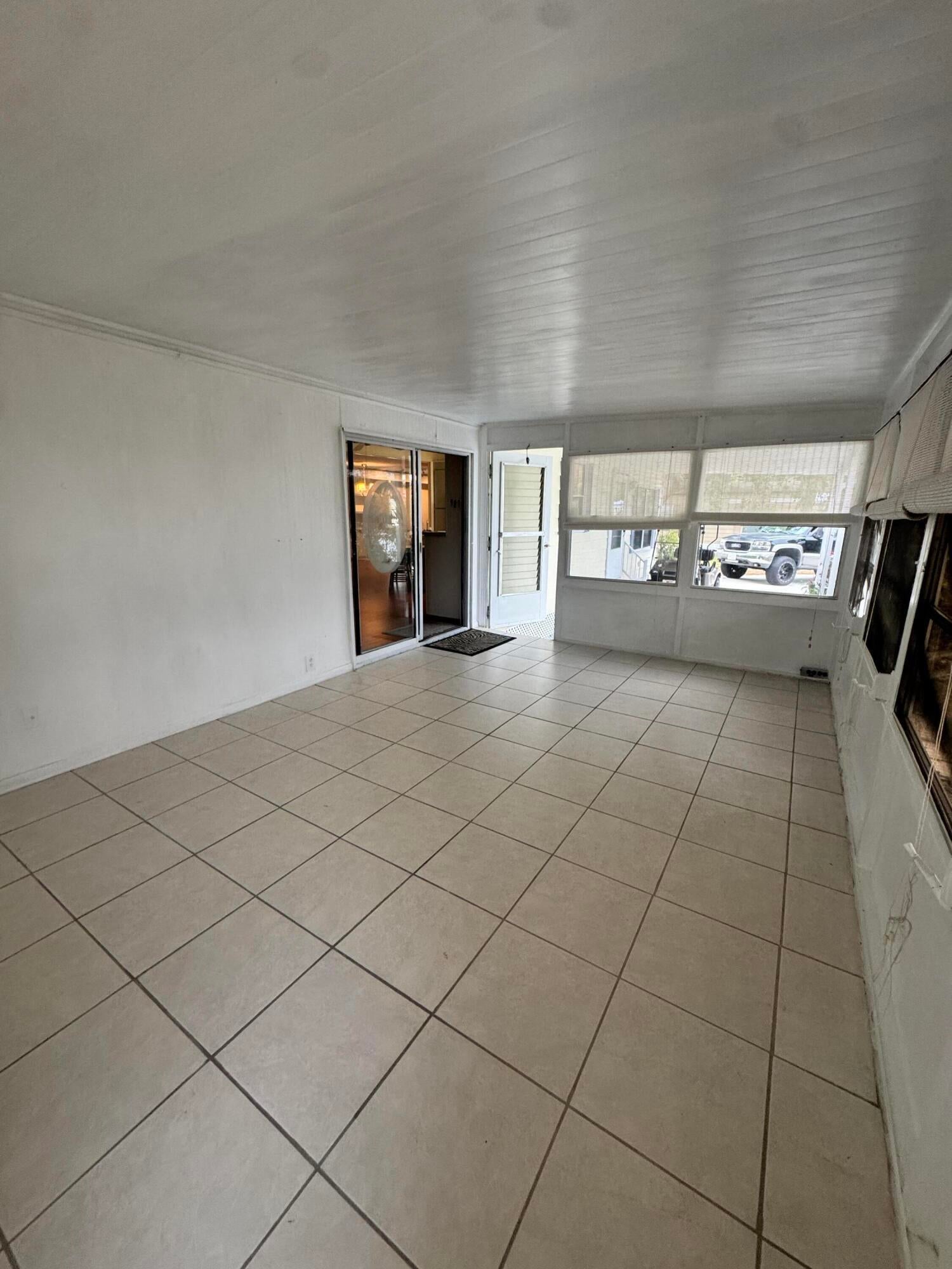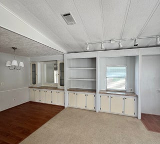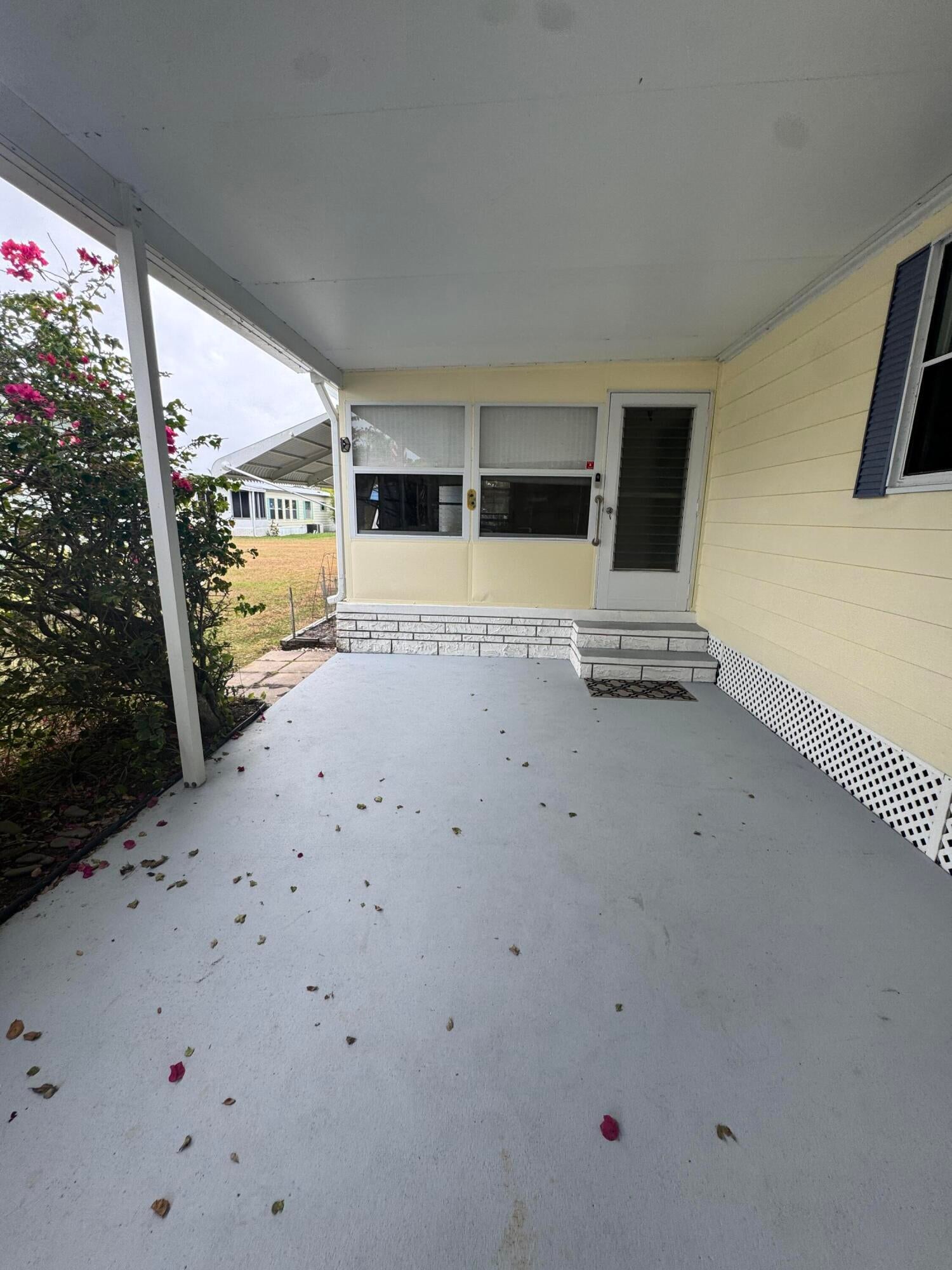 Lovely 2-bedroom 2-bath home in the desirable Spanish Lakes Country Club Village 55+ community. Home sits on a quiet cul-de-sac. The home has a lovely screened-in Florida room, perfect for morning coffee or evening cocktails. Home as a living room and family room. Open kitchen with an Island and desk area. The laundry room is inside the home, with a patio on the side. The dining and living room have built-in shelves for added storage. The roof is a 2020 metal. Shed in the rear of the home. Monthly Land Lease fee covers Private golf course, 2 pools, pickleball, tennis, shuffleboard, bocce, gym, library, cards, Mah jong, bible study, wood workshop, golf cart parades, dinners, dances, trips, and so much more! Grass cutting is also included, as is trash removal. MUST SEE!