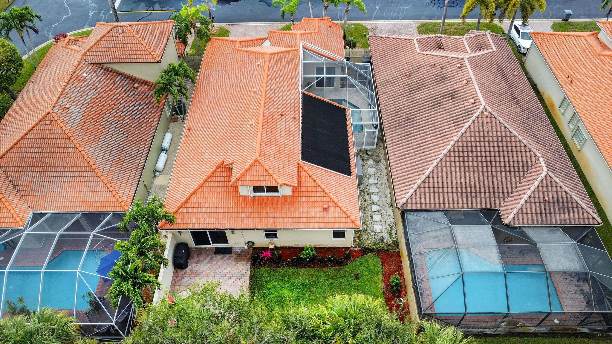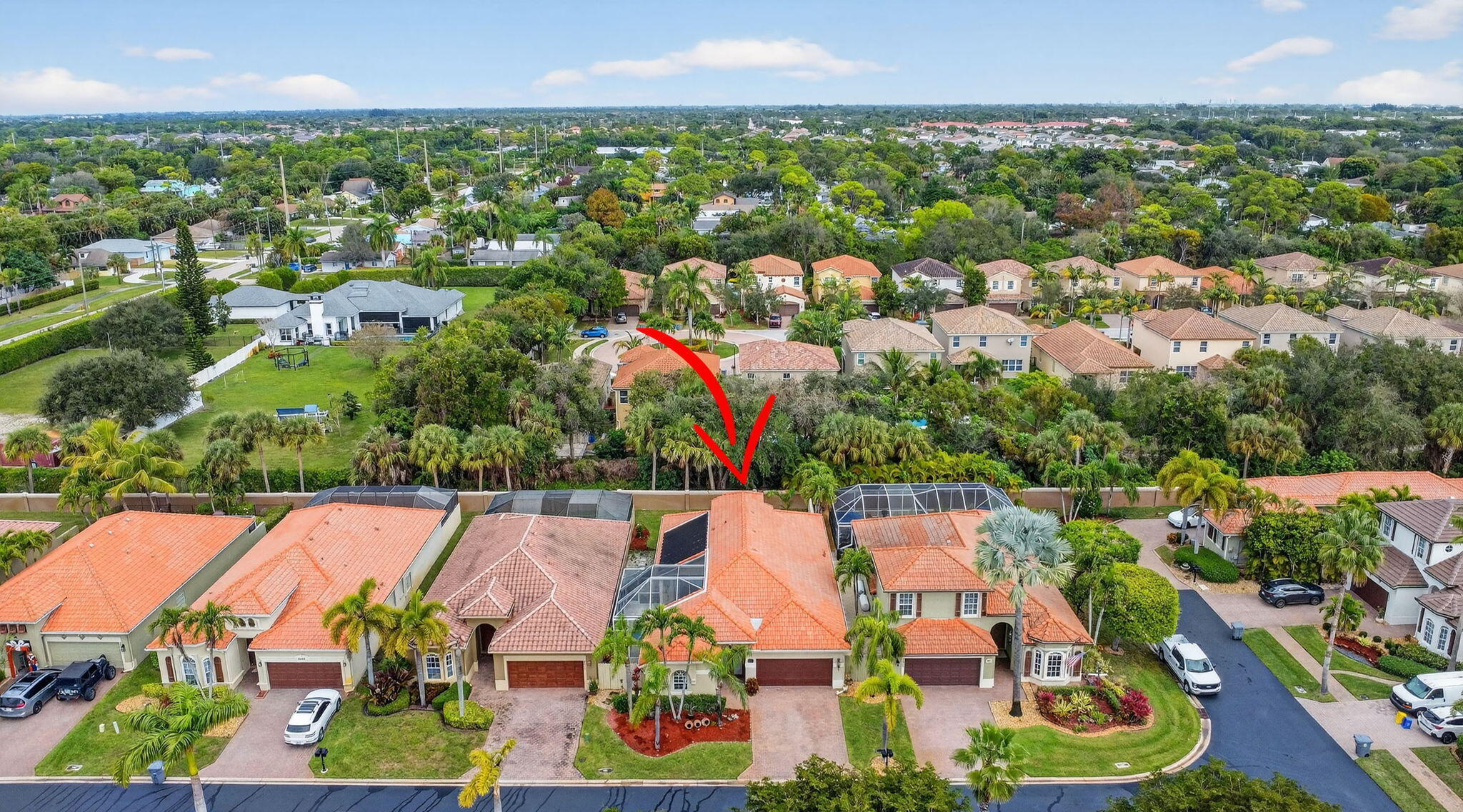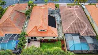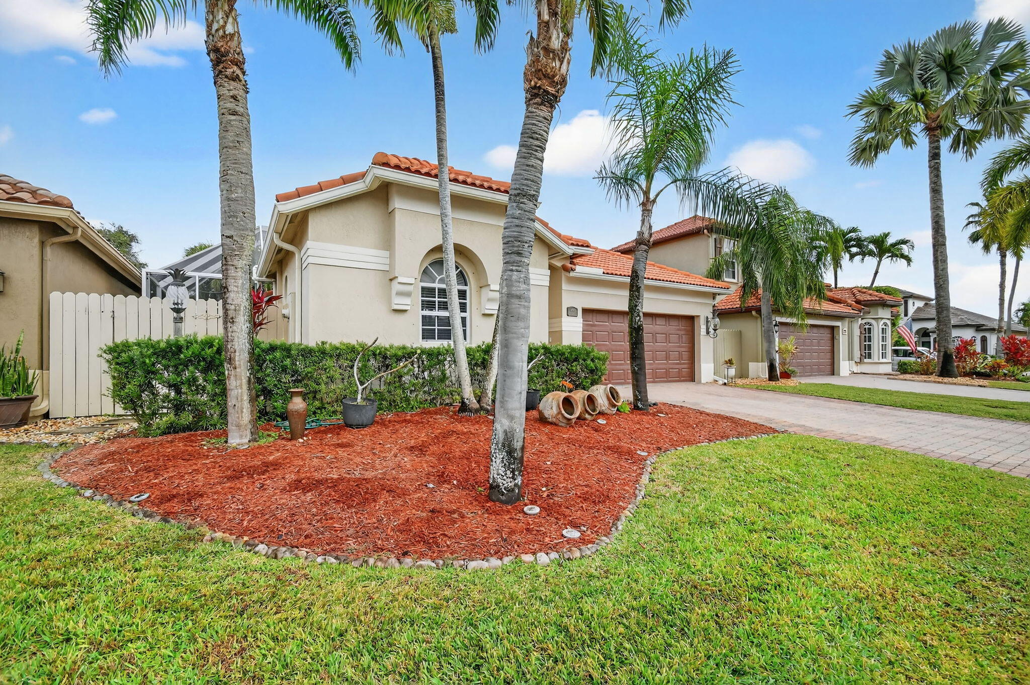 Exceptional courtyard pool home featuring a 3 bedroom, 2 bath main residence and a detached guest house with an updated full bath, ideal for guests, in-laws, or a private office. Located in the desirable Gateway Palms gated community, this beautifully maintained home showcases plantation shutters, crown molding throughout, and a brand-new A/C. The kitchen offers SS appliances, double oven and generous counter space. The spacious primary suite includes a spa-inspired bath and built-in closets. Designed for privacy and outdoor enjoyment, the home offers two distinct outdoor living areas a screened courtyard pool with solar heating and modern filtration, plus a tranquil backyard with retractable awning. Additionally, it includes storm shutters, Miami-Dade-rated garage door and added privacywith no home directly across the street. Located near A-rated schools, shopping, Turnpike, I-95, beaches, and PBI international airport. Meticulously maintained and move-in ready, Schedule your private showing today.