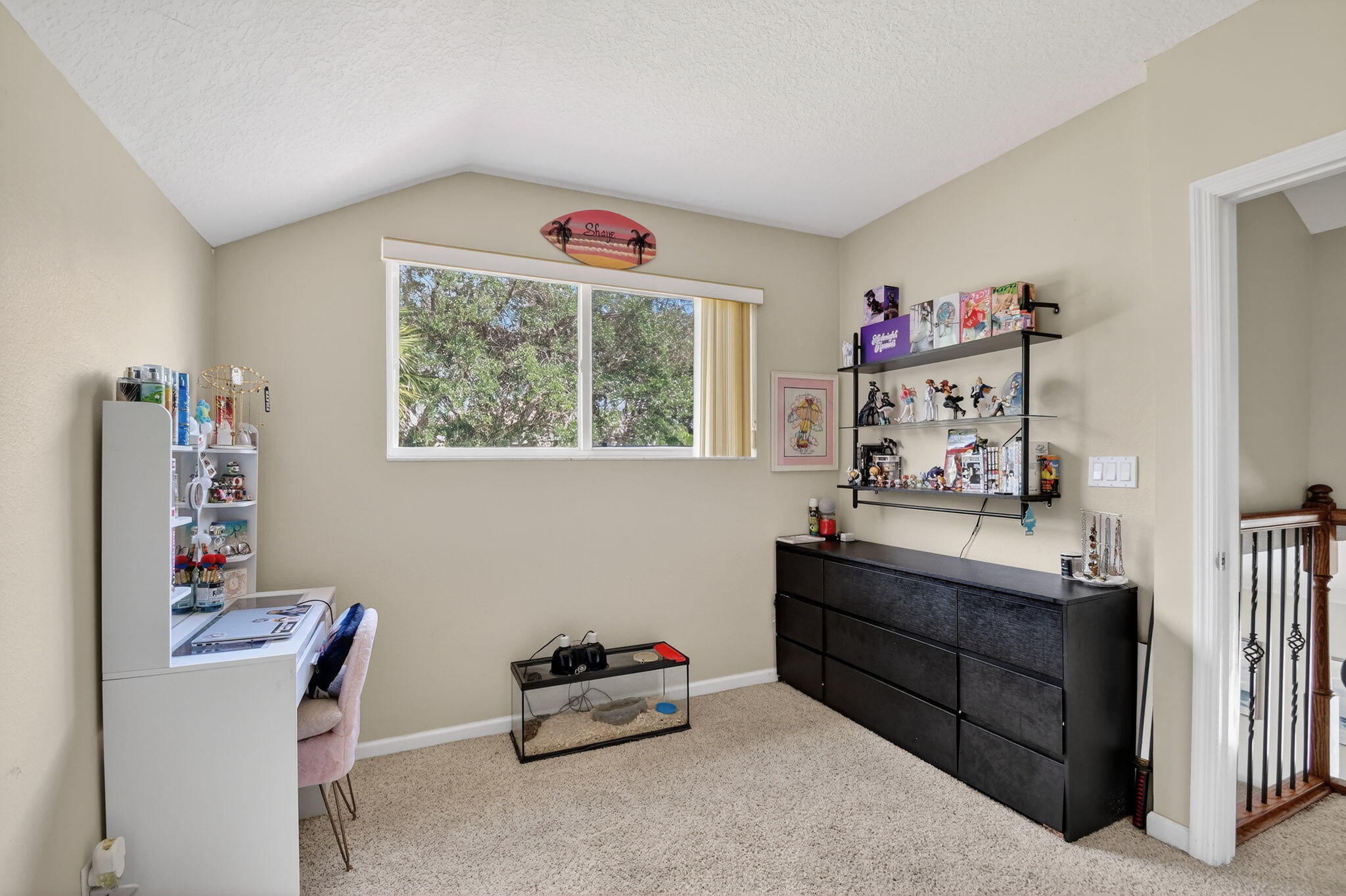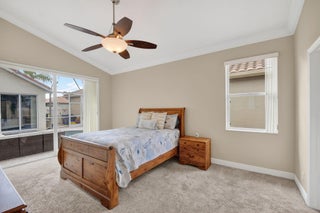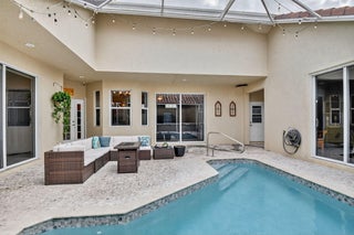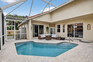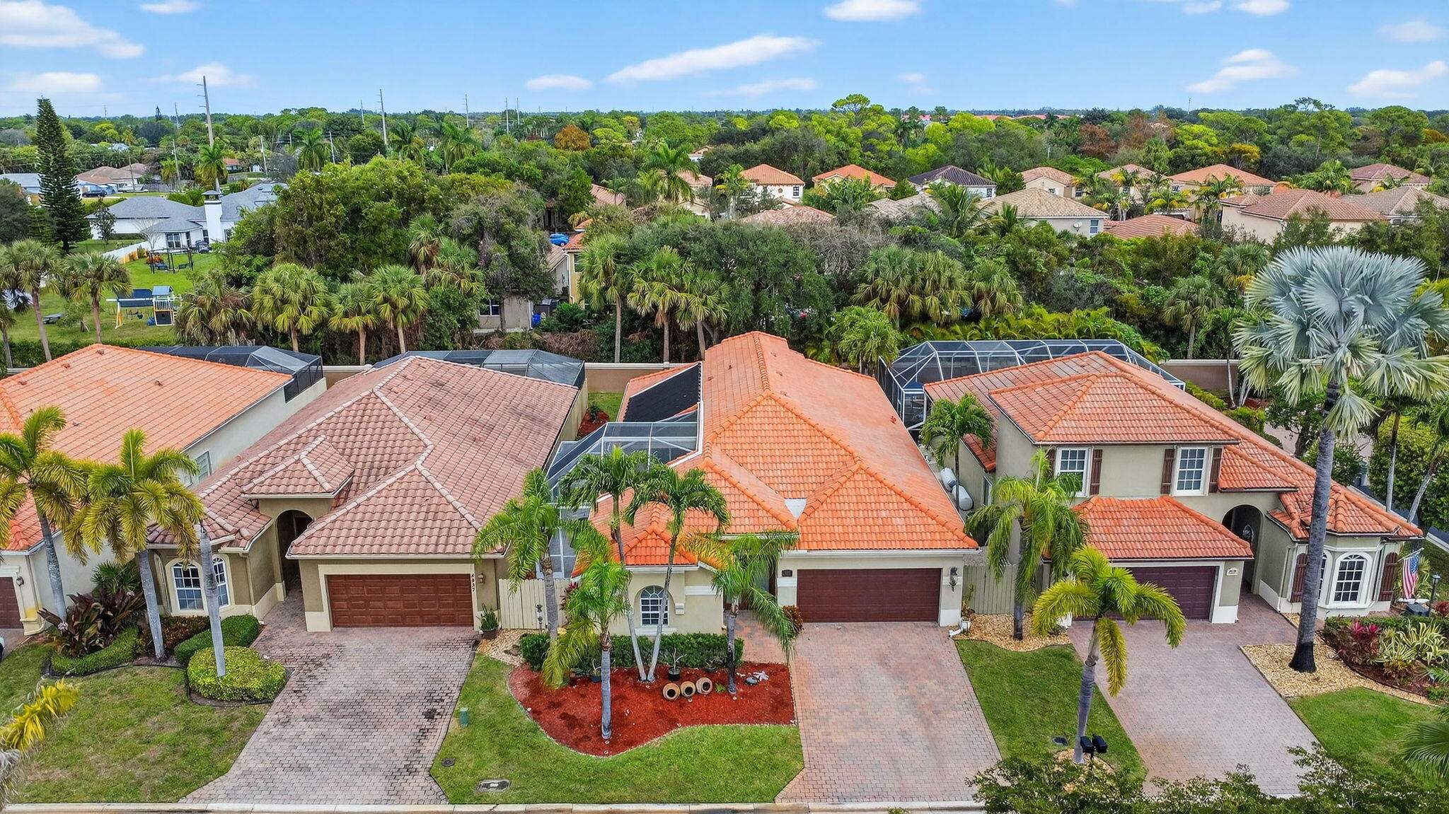 Exceptional courtyard pool home featuring a 3 bedroom, 2 bath main residence and a detached guest house with an updated full bath, ideal for guests, in-laws, or a private office. Located in the desirable Gateway Palms gated community, this beautifully maintained home showcases plantation shutters, crown molding throughout, and a brand-new A/C. The kitchen offers SS appliances, double oven and generous counter space. The spacious primary suite includes a spa-inspired bath and built-in closets. Designed for privacy and outdoor enjoyment, the home offers two distinct outdoor living areas a screened courtyard pool with solar heating and modern filtration, plus a tranquil backyard with retractable awning. Additionally, it includes storm shutters, Miami-Dade-rated garage door and added privacywith no home directly across the street. Located near A-rated schools, shopping, Turnpike, I-95, beaches, and PBI international airport. Meticulously maintained and move-in ready, Schedule your private showing today.