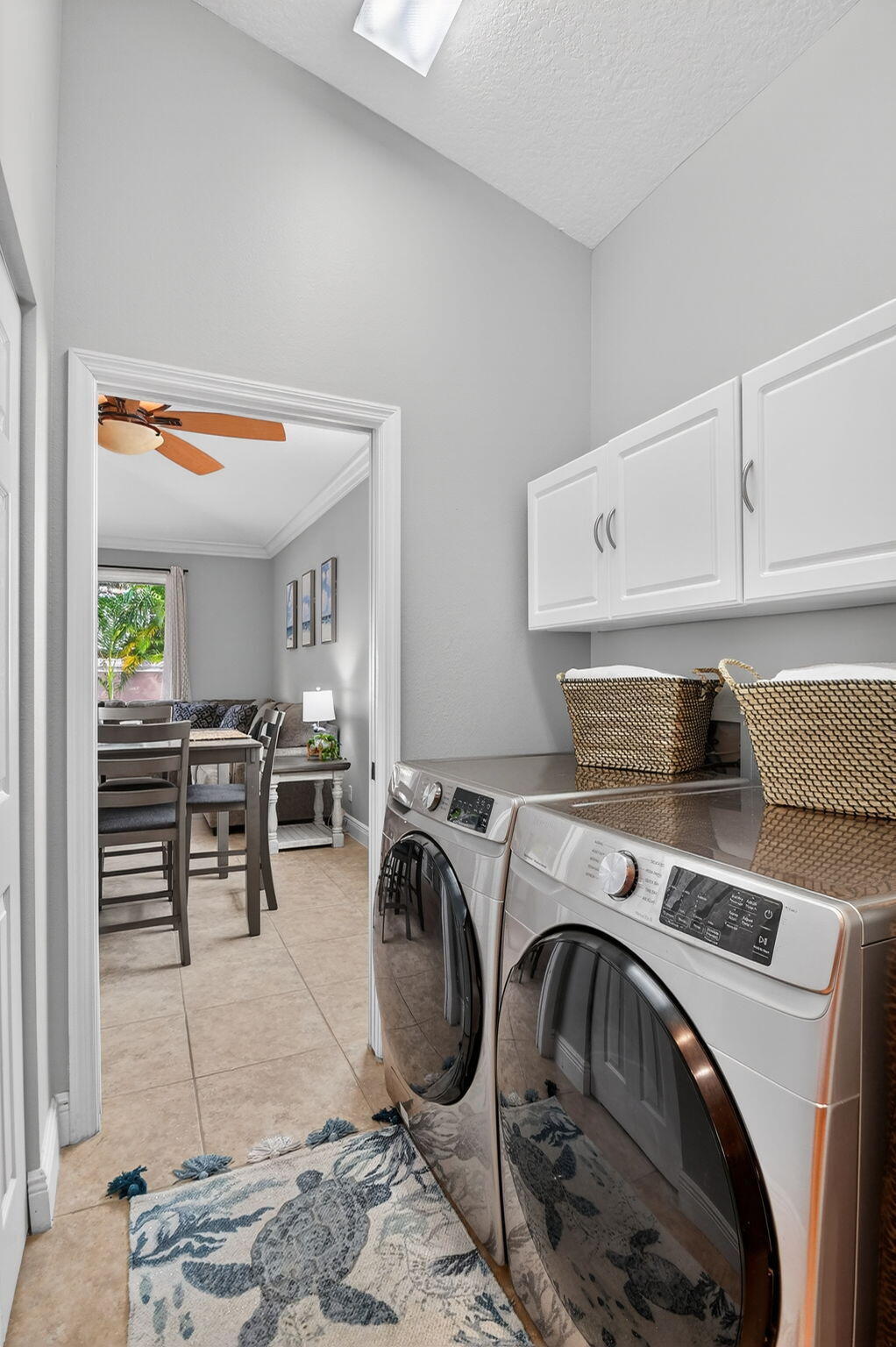 Dishwasher, Disposal, Dryer, Freezer, Ice Maker, Microwave, Range - Electric, Refrigerator, Smoke Detector, Washer, Auto Garage Open, Water Softener-Owned, Fire Alarm, Storm Shutters
