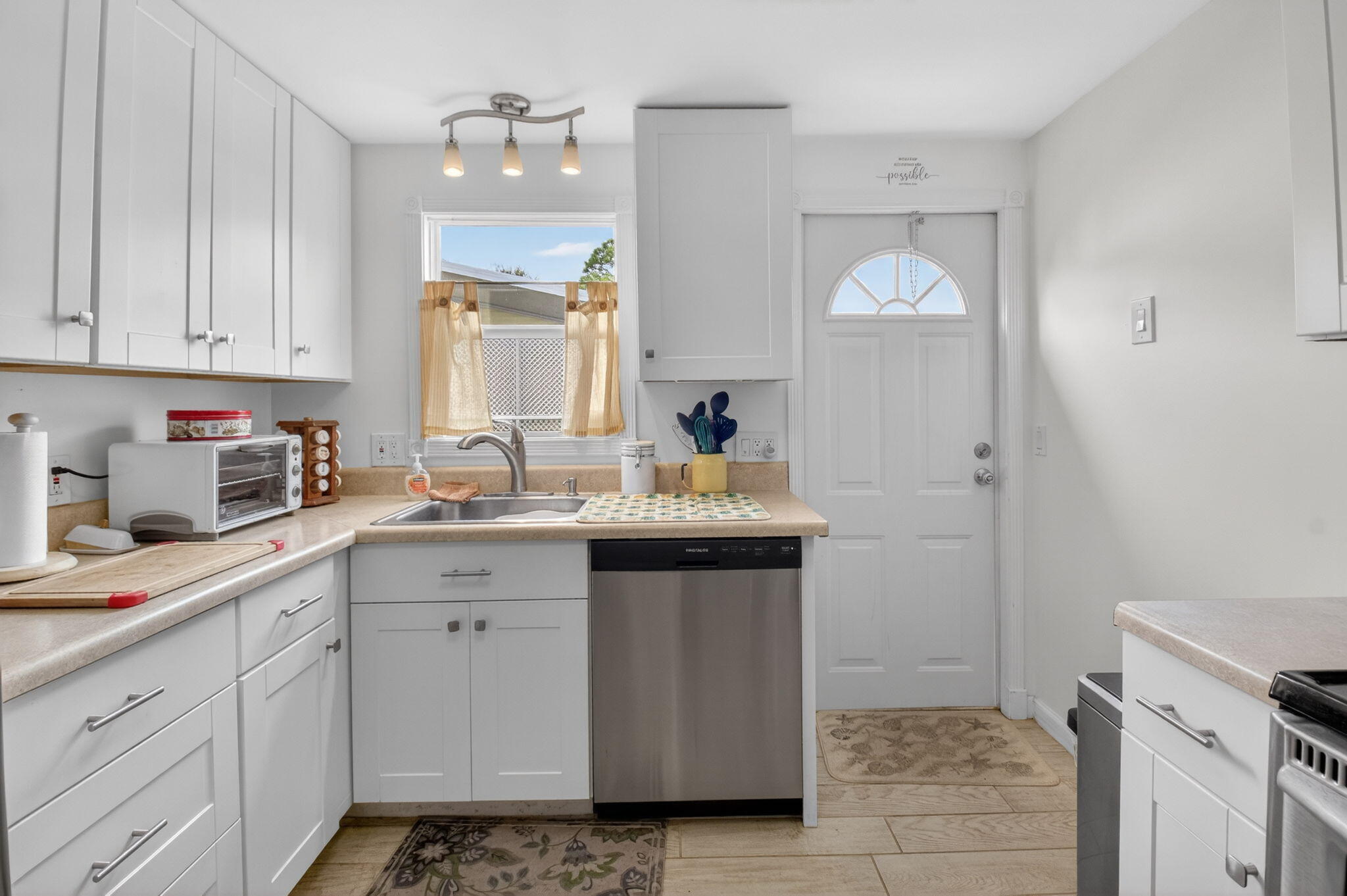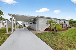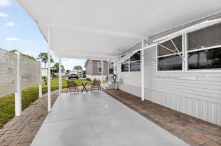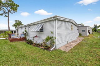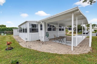 This beautifully maintained and fully furnished 2 bedroom, 2 bath home offers comfort and privacy, with NO land lease. Tucked at the end of a quiet cul-de-sac, the property enjoys abundant green space and a peaceful setting. Inside, the home features tile flooring throughout and drywall-finished walls and ceilings, creating a warm, modern atmosphere. The updated kitchen includes shaker-style cabinetry and stainless steel appliances, while both bathrooms have been tastefully renovated with tile shower in guest bath. An open floor plan connects the kitchen, dining area, and spacious living room, making the home feel bright and inviting. Additional upgrades include a newer A/C system, hot water heater, and a double roof. Both bedrooms are generously sized and furnished with king size beds.A large, sunlit Florida room provides extra living space to relax or entertain, can be used as 3rd Bedroom. Outside, the property continues to impress with a roomy patio area perfect for outdoor enjoyment, along with a convenient storage shed. This home is truly move in ready and waiting for you. Just bring your suitcase and settle right in. Enjoy Florida living in this gated community with plenty of activities, 2 heated pools, pickleball courts, shuffleboard, billiards, library and so much more. Low monthly fee includes water, sewer, fiber optic internet, lawn care, manager on site and an array of activities. Located close to dining, shopping and the local beaches.