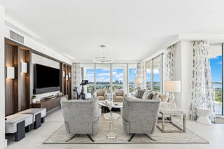 Welcome to the epitome of luxury living at Vistablue, Residence 17C, professionally designed by Decorators Unlimited. This private floor-entry residence offers 3,029 square feet of refined coastal elegance with 3 bedrooms, 3.5 baths, a den, and an oversized wraparound terrace ideal for entertaining while enjoying sweeping Intracoastal and partial ocean views. The light-filled gourmet kitchen features sleek Poggenpohl custom cabinetry, dramatic quartz waterfall countertops, and top-of-the-line Miele and Sub-Zero appliances. Soaring floor-to-ceiling impact glass and sliding doors enhance the open, airy design and seamlessly connect indoor and outdoor living. The serene primary suite offers generous walk-in closets and a spa-inspired bath. Stunning Italian porcelain flooring throughout.Step outside to experience resort-style beachfront living with 5-star amenities, including concierge service, ocean view social lounge, private wine vault, state-of-the-art fitness center with sauna, and an elevated pool deck with cabanas and direct beach access. *Unit has 2 deeded parking spaces and large storage locker. This is luxury coastal living at its finest residence that seamlessly blends sophisticated design, top-tier finishes, and world-class amenities. Close to PBI Airport, 5 star restaurants, The Breakers, City Place, Gardens Mall.