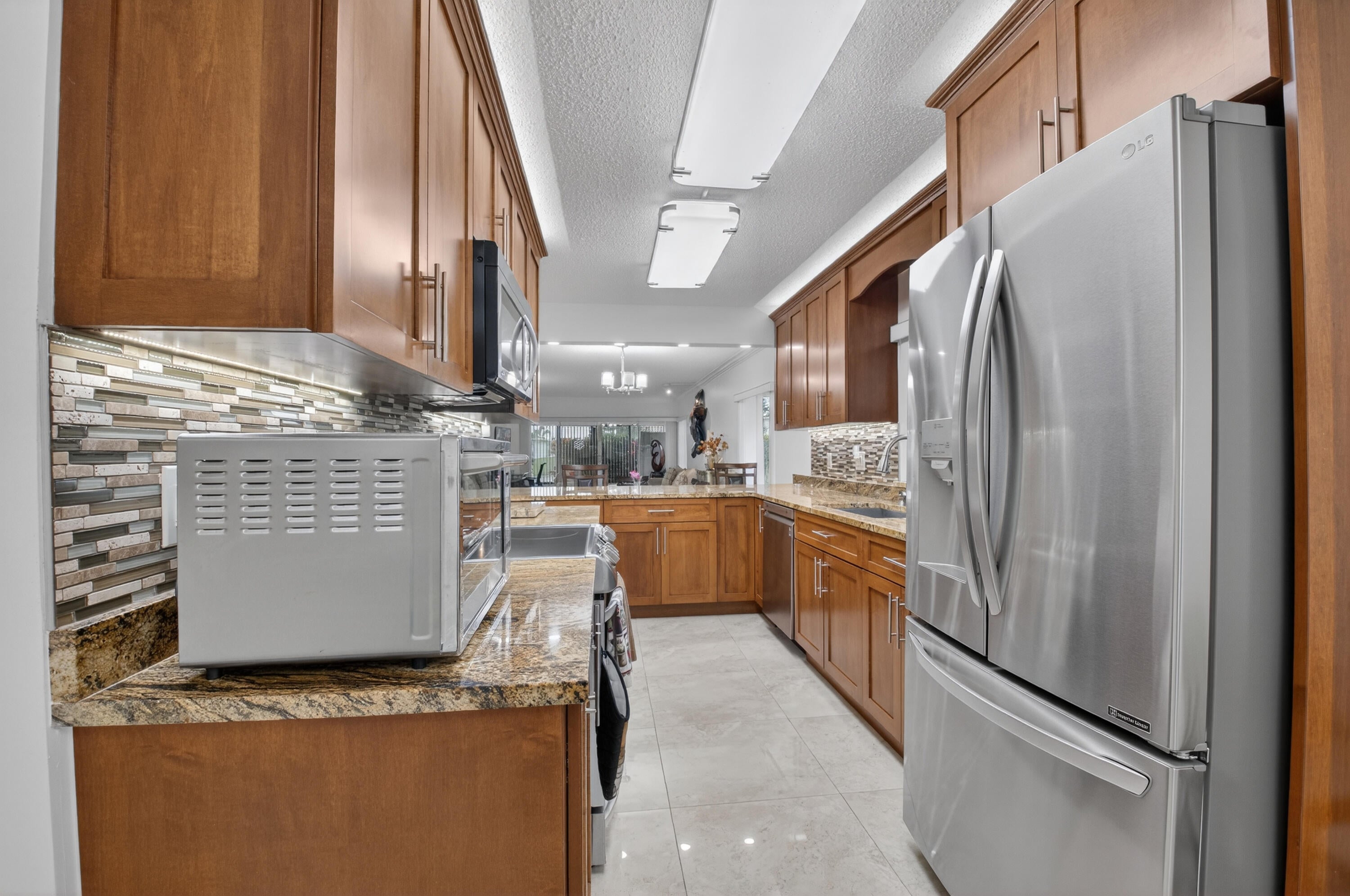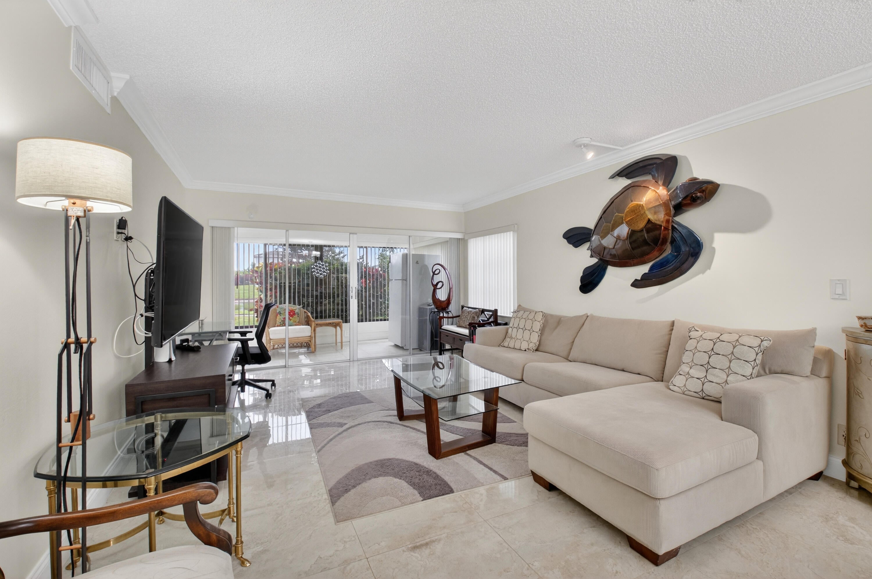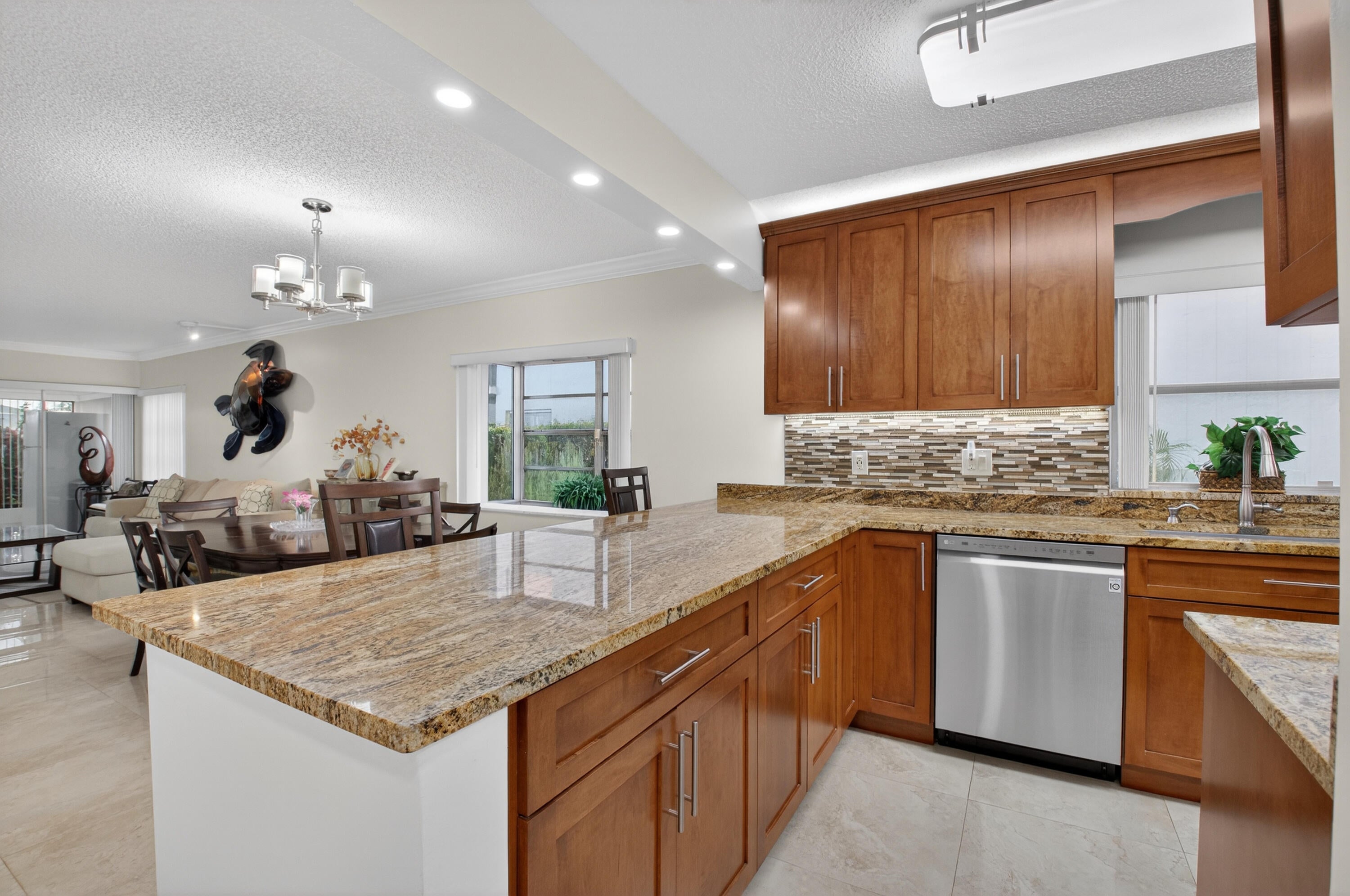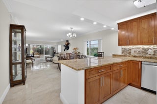 Move in ready...ground floor ..pristine, open and bright 2 BR, (split) 2BA unit with enclosed Florida room overlooking beautiful private lake and garden view. Unit features large ceramic floor tile throughout. Walking through the entrance you are welcomed into a spacious, well-equipped kitchen tastefully updated to suit your culinary needs. Kitchen boasts shaker style cabinetry, granite countertops (with a lot of countertops) and stainless appliances. Both master and secondary bedrooms have ensuite bathrooms all of which have been beautifully redone. Huge walk in closets. You won't be disappointed. Fantastic senior community. State of the art clubhouse, large pool area with whirlpool, Har-tru tennis courts and active tennis program, cafe and so much more. Hurry, wont last!