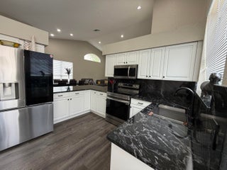 Aberdeen Country Club. Move in ready. This recently remodeled Villa has high ceilings & offers a 3BR-2BA triple split floor plan with an large enclosed Lanai with AC.. Eat-in kitchen that opens to a large living dining area. Newer Granite counter tops, backsplash and sink. The Main bedroom is also good sized with dual closet dual sinks and a shower. Seller installed laminate in all areas except the bathrooms which were recently tiled. This community is man gated with a community pool. Aberdeen is a mandatory membership starting at $80,500 for social with annuals around $16,000. Buyer to verify all info/See. Beautiful18-hole golf course, Tennis courts, pickelball, boce, an amazing gym and resort type pool. There are 2 restaurants and a bar. **Realtor selling own home