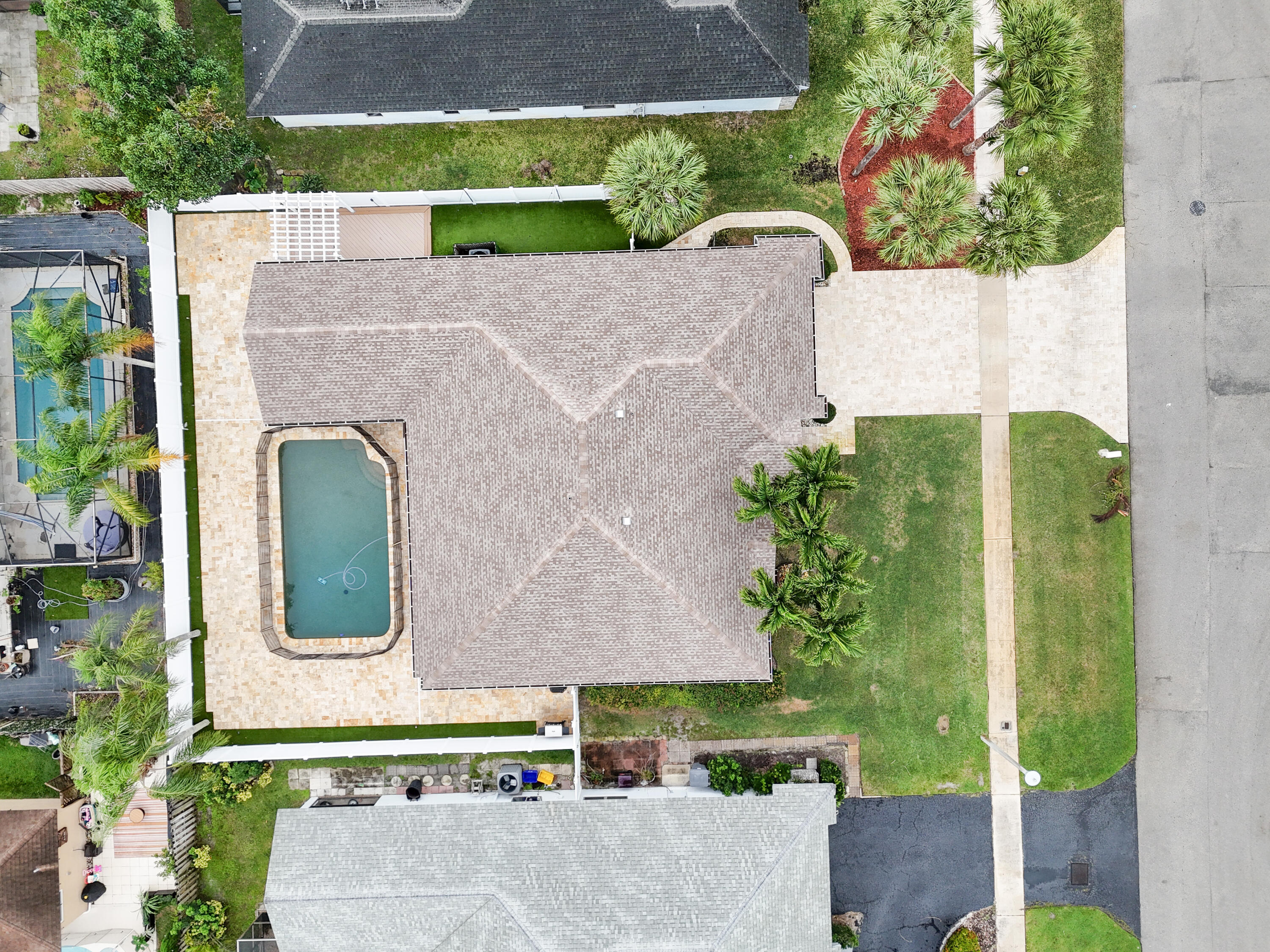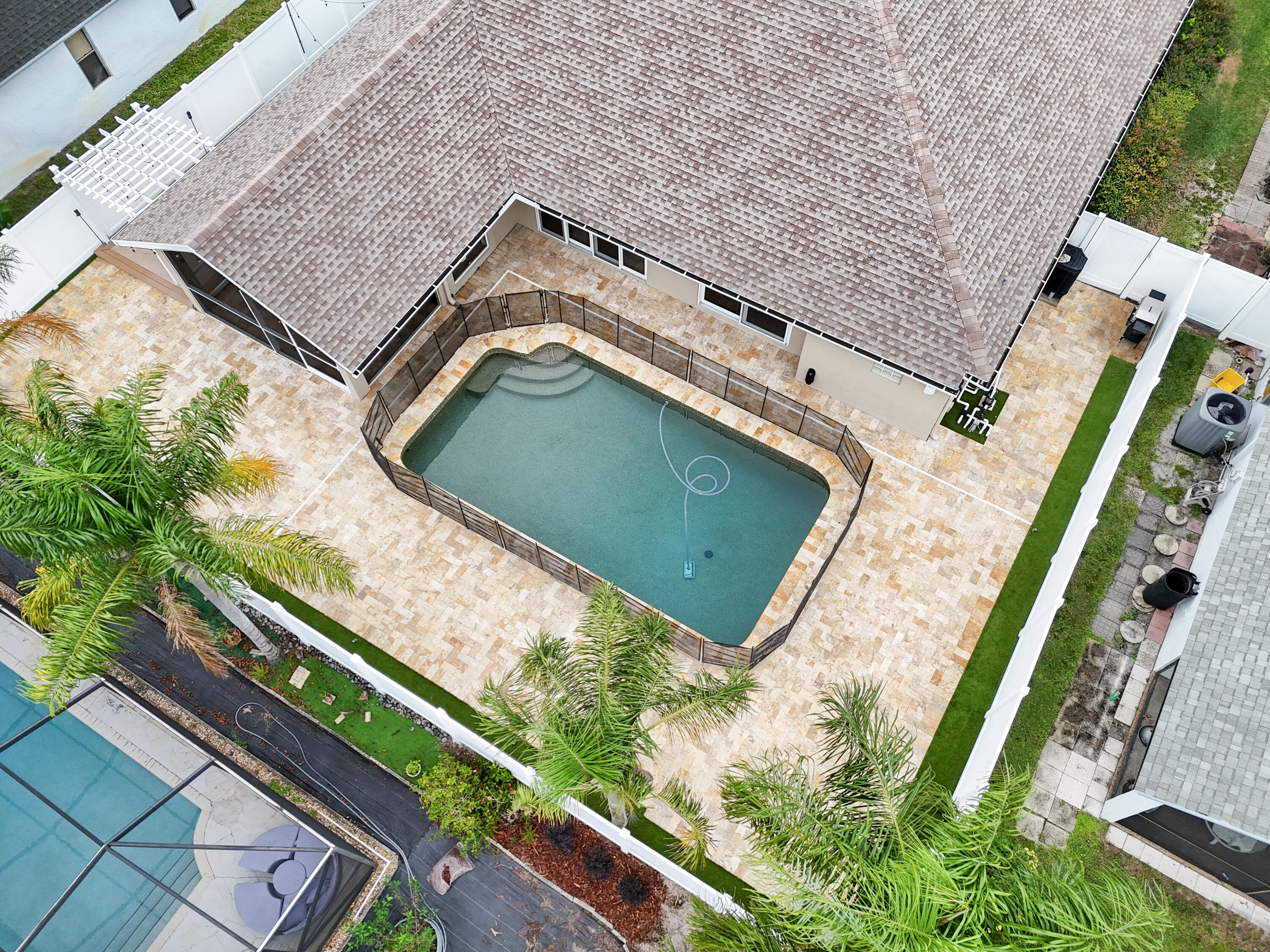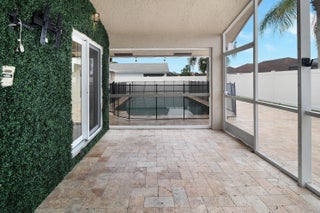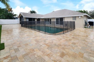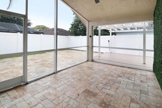 Well-maintained modern home featuring a travertine-pavered driveway and backyard, heated pool, artificial turf side yard, and fully fenced property for privacy. Impact windows throughout.Interior offers a spacious layout with a den, high-end luxury carpet in the living room, and tile and laminate flooring throughout. Upscale finishes include crown molding, designer wallpaper, and a marble tile accent wall. The covered patio is enhanced with a boxwood accent wall, creating an ideal space for relaxing or entertaining.Conveniently located near A+ rated schools, shopping, dining, and major roadways. Fast approval process! Pool and lawn care included in rent.