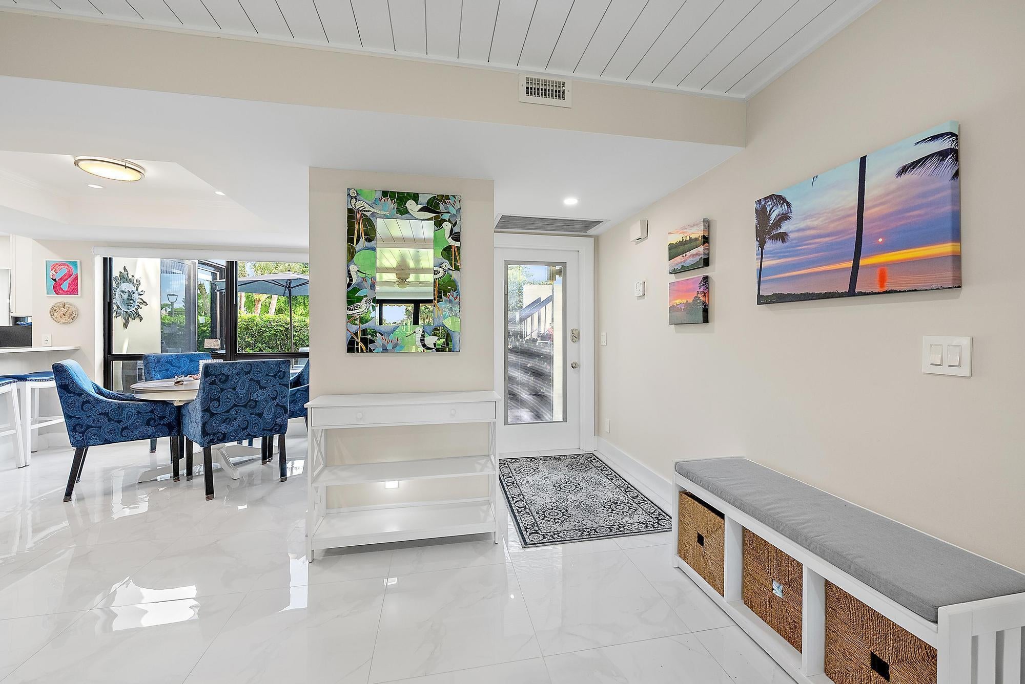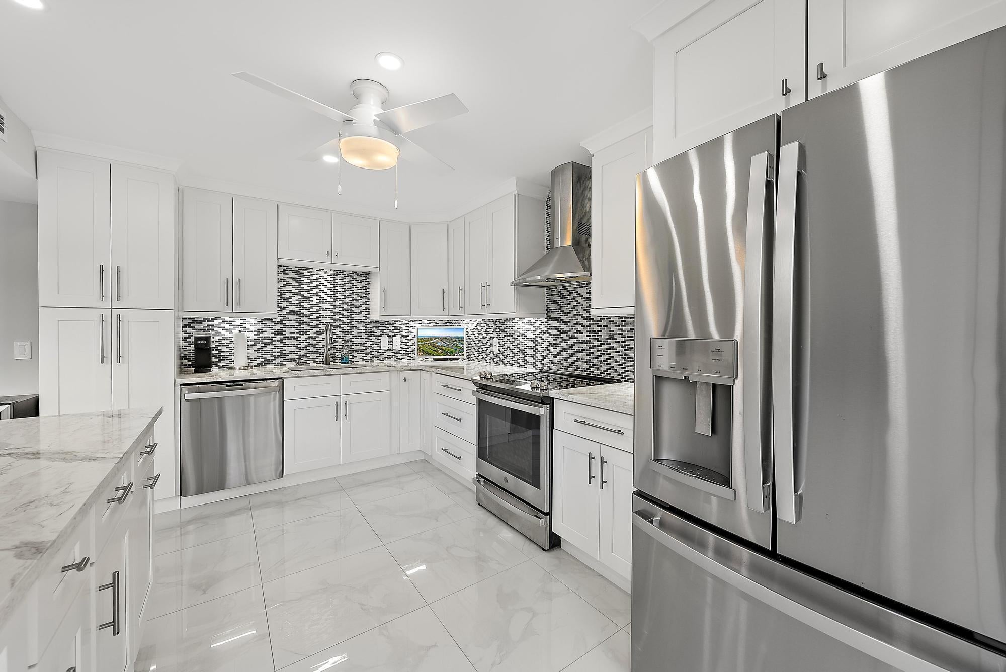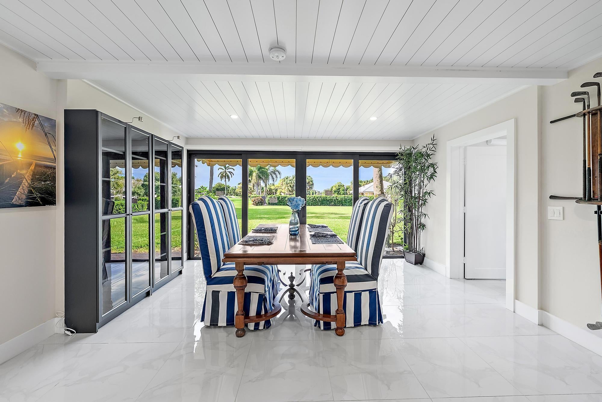 Desirable 1st floor 3-bedroom, 2-bath residence with tranquil golf, garden, & pool views. Completely renovated down to the studs--new plumbing, electrical, walls, flooring, and custom solid wood millwork--offering true move-in-ready peace of mind. Impact windows (2025). The light-filled interior features shiplap ceilings in main living areas, shaker-style cabinetry in kitchen and baths, quartz countertops, & high-end appliances. Additional upgrades include Lutron dimmable recessed lighting, ceiling fans throughout, a walk-in primary closet, A/C with mold-preventative UV light, & an extended courtyard. Offered fully furnished & turnkey, with a one-year home warranty included. Enjoy world-class golf, dining, & an active social lifestyle at The Club at Quail Ridge. Immediate enjoyment awaits!