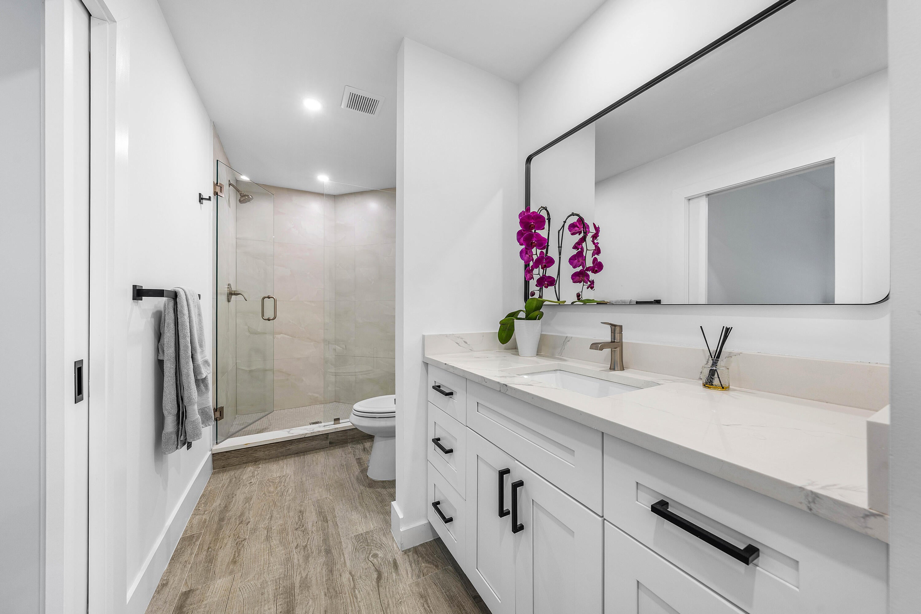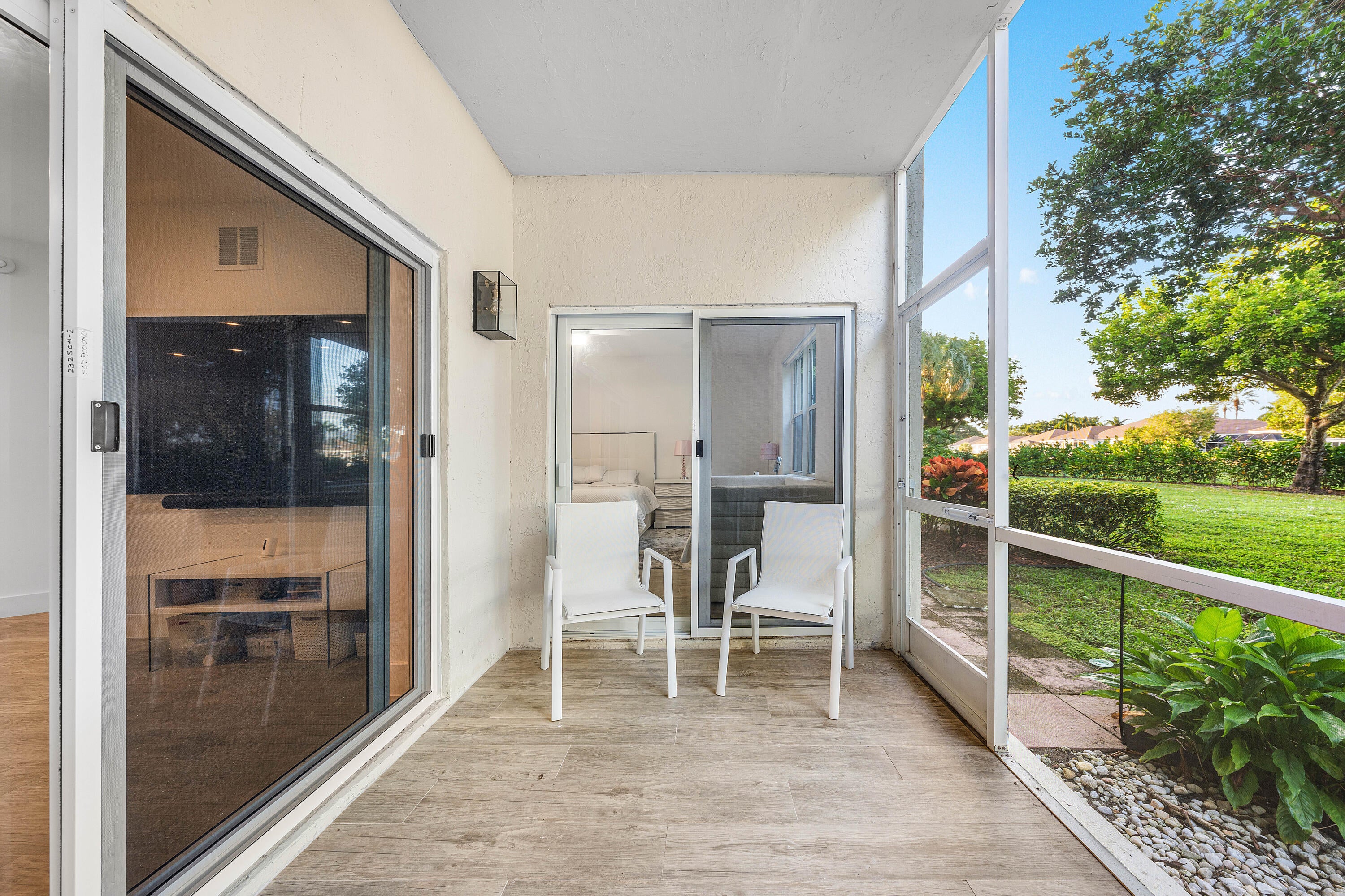 Enjoy the ease of this completely renovated first-floor condo, where bright interiors and a clean, modern canvas set the stage for a move-in-ready space. Subtle contemporary touches are throughout, creating a sophisticated atmosphere. The streamlined kitchen, anchored by a generously sized island, invites both everyday living and effortless entertaining, opening naturally into the family room. A screened-in patio creates a charming space with tranquil garden views, perfect for pausing and recharging. The private primary suite sits on its own for maximum privacy, and offers two walk-in closets and a spa-inspired bath with dual vanities and a freestanding soaking tub. Three additional bedrooms provide flexible options for guests or a home office. A well-appointed laundry room deliversabundant storage and connects to the one-car garage. With impact windows and doors, the home offers an added layer of protection. Positioned just across from the Coquina Isle satellite pool and gym, you're moments from convenient neighborhood amenities, along with full access to The Polo Club's extensive offerings at the Clubhouse.
