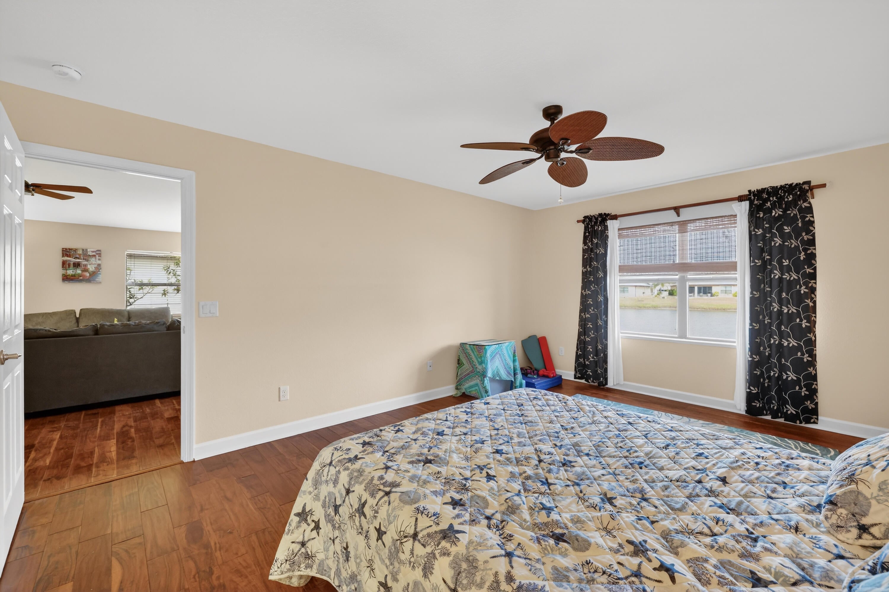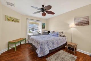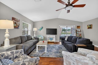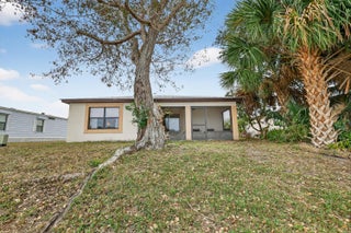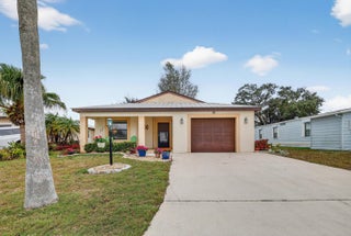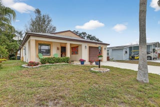 Welcome to your dream home in the desirable Spanish Lakes 55+ community! This stunning 2-bedroom, 2-bathroom home has a beautiful lake view. offers an open floor plan perfect for both relaxing and entertaining. The kitchen features modern appliances, ample cabinet space, and granite countertops. The kitchen flows seamlessly into the dining and living areas, with beautiful natural light. The home has all laminate flooring, NO CARPET. The primary bedroom boasts a walk-in closet and an en-suite bathroom. Enjoy the Florida lifestyle year-round with your private screened-in patio, perfect for morning coffee. This home sits on a quiet cul-de-sac and is very close to the park entrance. Lot lease includes trash removal, lawn care, golf, tennis, 2 swimming pools, and much more.