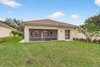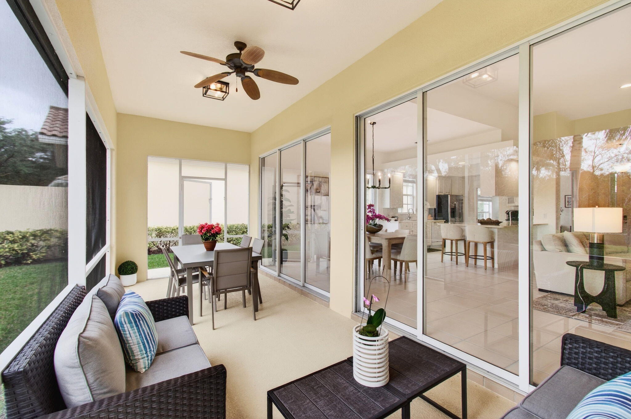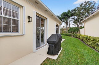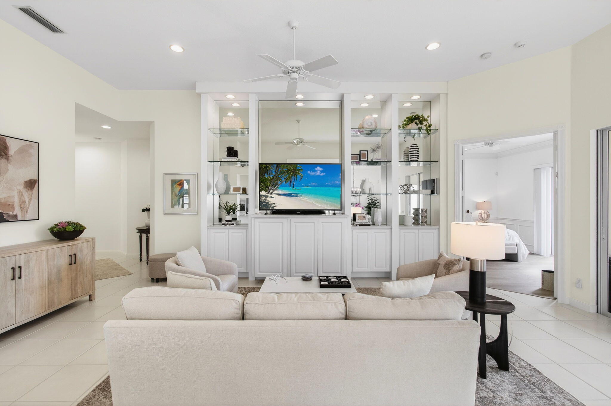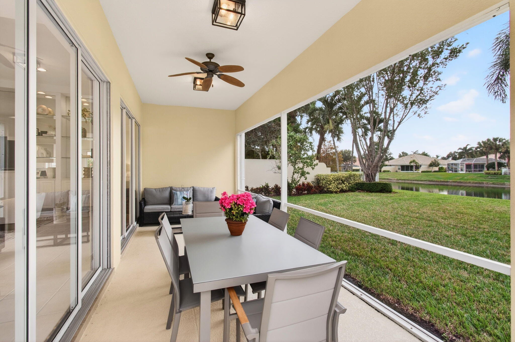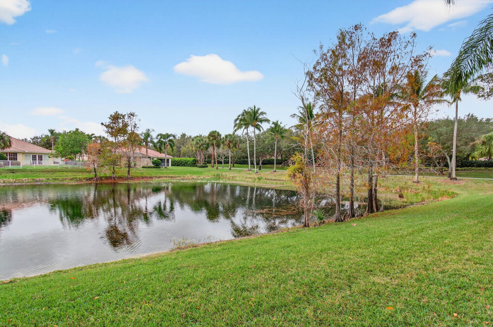 Bright and sunny and thoughtfully maintained, offered by the original owners and gently used as a second home, this Oakmont model offers approximately 2,001 sq ft with 3 bedrooms plus a den and 2.5 baths, built by DiVosta with a poured concrete foundation. An open, split-bedroom layout creates easy flow and privacy, complemented by fresh interior paint, a built-in wall unit, and new luxury vinyl flooring in all bedrooms and the den. The primary suite features dual vanities, a soaking tub, and custom closet storage, while the two-car garage includes a built-in storage system. Brand new accordion shutters and new exterior lighting add everyday confidence and curb appeal, and a large easement next door provides extra privacy.In VillageWalk, this beautifully presented residence is designed for effortless Wellington living, with bright, open interiors and a seamless connection to the outdoors, close to VillageWalk's resort-style amenities. Step inside to airy volume ceilings, crisp finishes, and generous natural light that pours through multiple sliding glass doors, drawing you out to the covered lanai and tranquil water views. The living and dining spaces feel polished and inviting, with recessed lighting and an easy layout that transitions naturally from entertaining to everyday comfort. The kitchen sits at the center of the home with generous cabinetry, ample counter space, and a casual bar for daily meals, all opening seamlessly to the main gathering areas. A separate den offers flexible space for work, media, or a quiet retreat. Recent improvements are both practical and refined: new blinds on all windows, a recently replaced refrigerator, a new kitchen sink and faucet, all new exterior light fixtures, and brand new accordion shutters throughout. The den and primary bedroom feature crown molding, the primary bedroom is finished with wall molding, the second bathroom includes glass doors, and the central vacuum has new hoses. VillageWalk's HOA is $584.66 per month and supports a true lock-and-leave lifestyle, covering all lawn and landscaping maintenance, a 24-hour manned gatehouse, in-home ADT monitoring, exterior home painting and roof cleaning, Xfinity services including internet and premium channels, and full access to all VillageWalk amenities. Zoned public schools include Equestrian Trails Elementary, Emerald Cove Middle, and Palm Beach Central High. Enjoy convenient access to Wellington's shopping and dining, including Whole Foods, Trader Joe's, the Mall at Wellington Green, and local favorites such as Kaluz, Oli's, and Agliolio's. World-class equestrian venues including the International Polo Club, Winter Equestrian Festival, and Global Dressage are nearby, along with championship golf, beaches, and easy access to Palm Beach International Airport. Offered by the original owners and gently used as a second home, this is a polished, move-in-ready opportunity in one of Wellington's most established gated communities.