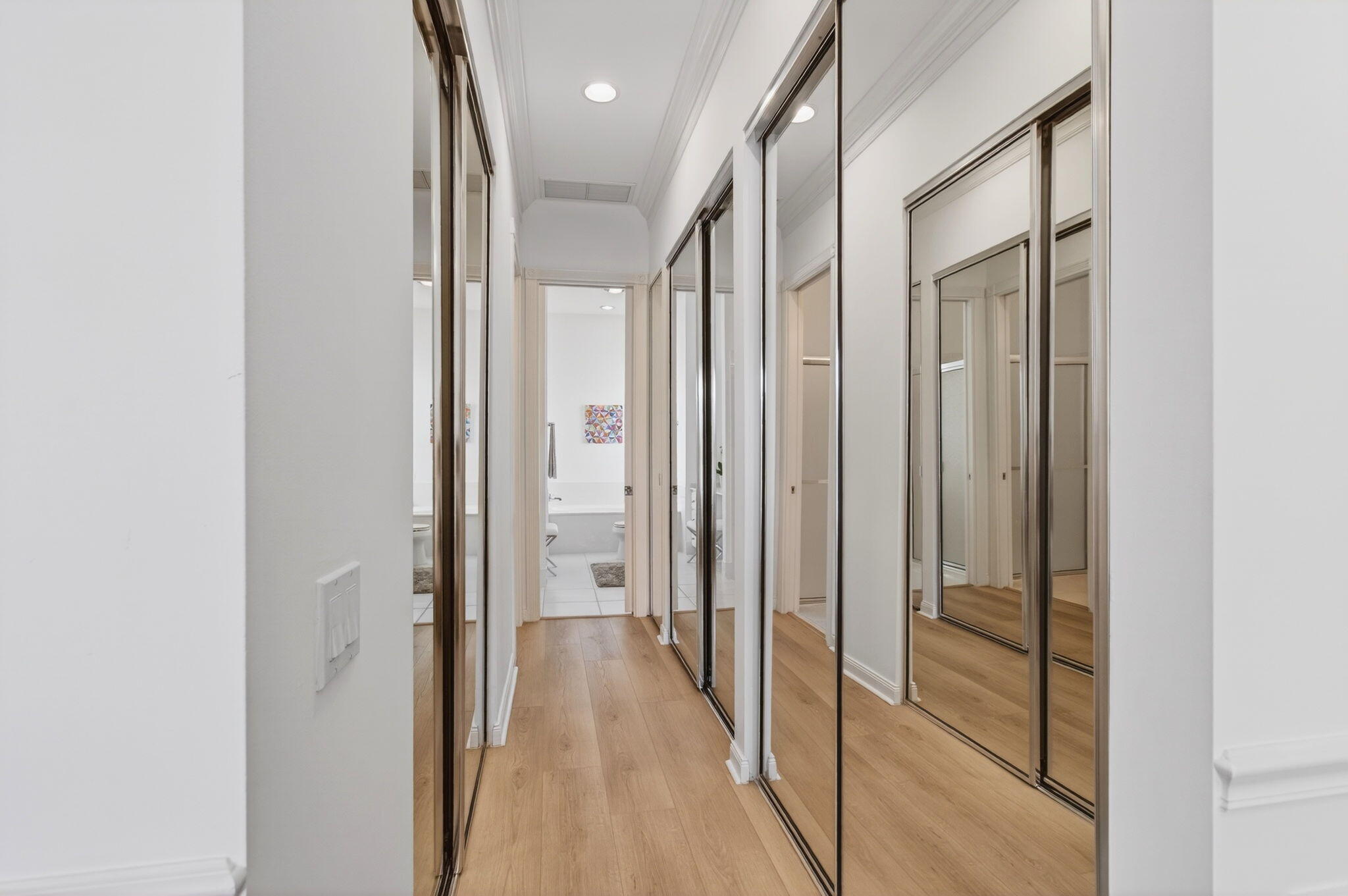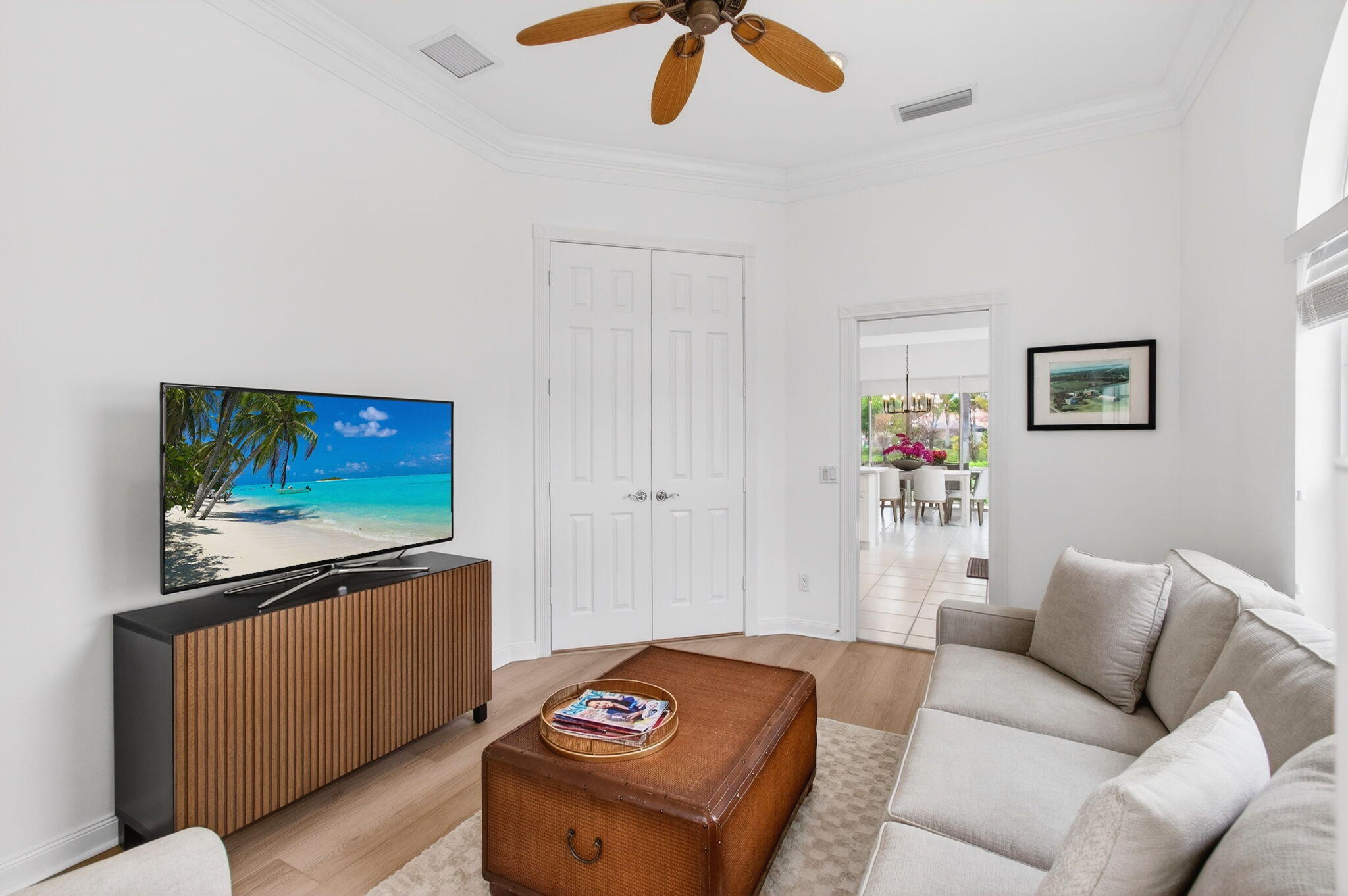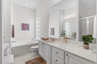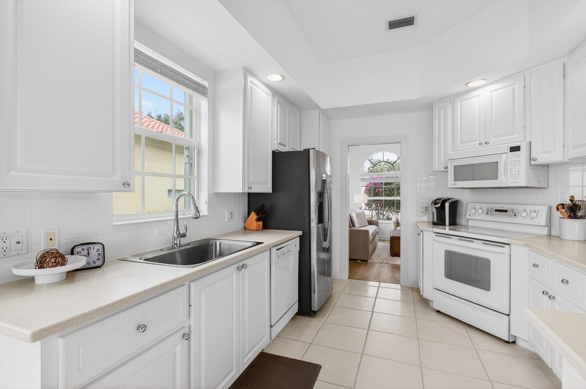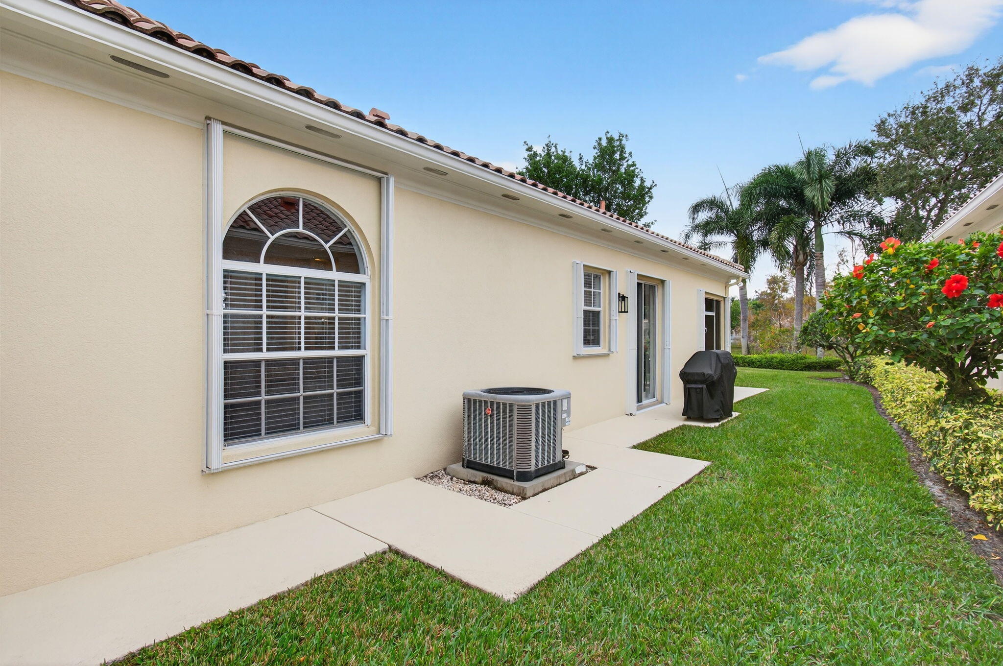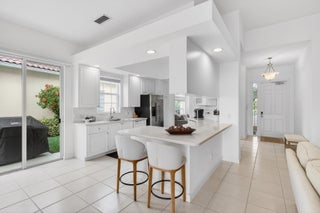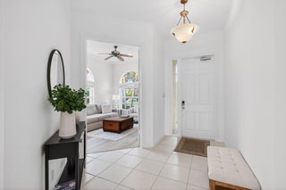 Bright and sunny and thoughtfully maintained, offered by the original owners and gently used as a second home, this Oakmont model offers approximately 2,001 sq ft with 3 bedrooms plus a den and 2.5 baths, built by DiVosta with a poured concrete foundation. An open, split-bedroom layout creates easy flow and privacy, complemented by fresh interior paint, a built-in wall unit, and new luxury vinyl flooring in all bedrooms and the den. The primary suite features dual vanities, a soaking tub, and custom closet storage, while the two-car garage includes a built-in storage system. Brand new accordion shutters and new exterior lighting add everyday confidence and curb appeal, and a large easement next door provides extra privacy.In VillageWalk, this beautifully presented residence is designed for effortless Wellington living, with bright, open interiors and a seamless connection to the outdoors, close to VillageWalk's resort-style amenities. Step inside to airy volume ceilings, crisp finishes, and generous natural light that pours through multiple sliding glass doors, drawing you out to the covered lanai and tranquil water views. The living and dining spaces feel polished and inviting, with recessed lighting and an easy layout that transitions naturally from entertaining to everyday comfort. The kitchen sits at the center of the home with generous cabinetry, ample counter space, and a casual bar for daily meals, all opening seamlessly to the main gathering areas. A separate den offers flexible space for work, media, or a quiet retreat. Recent improvements are both practical and refined: new blinds on all windows, a recently replaced refrigerator, a new kitchen sink and faucet, all new exterior light fixtures, and brand new accordion shutters throughout. The den and primary bedroom feature crown molding, the primary bedroom is finished with wall molding, the second bathroom includes glass doors, and the central vacuum has new hoses. VillageWalk's HOA is $584.66 per month and supports a true lock-and-leave lifestyle, covering all lawn and landscaping maintenance, a 24-hour manned gatehouse, in-home ADT monitoring, exterior home painting and roof cleaning, Xfinity services including internet and premium channels, and full access to all VillageWalk amenities. Zoned public schools include Equestrian Trails Elementary, Emerald Cove Middle, and Palm Beach Central High. Enjoy convenient access to Wellington's shopping and dining, including Whole Foods, Trader Joe's, the Mall at Wellington Green, and local favorites such as Kaluz, Oli's, and Agliolio's. World-class equestrian venues including the International Polo Club, Winter Equestrian Festival, and Global Dressage are nearby, along with championship golf, beaches, and easy access to Palm Beach International Airport. Offered by the original owners and gently used as a second home, this is a polished, move-in-ready opportunity in one of Wellington's most established gated communities.