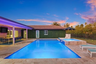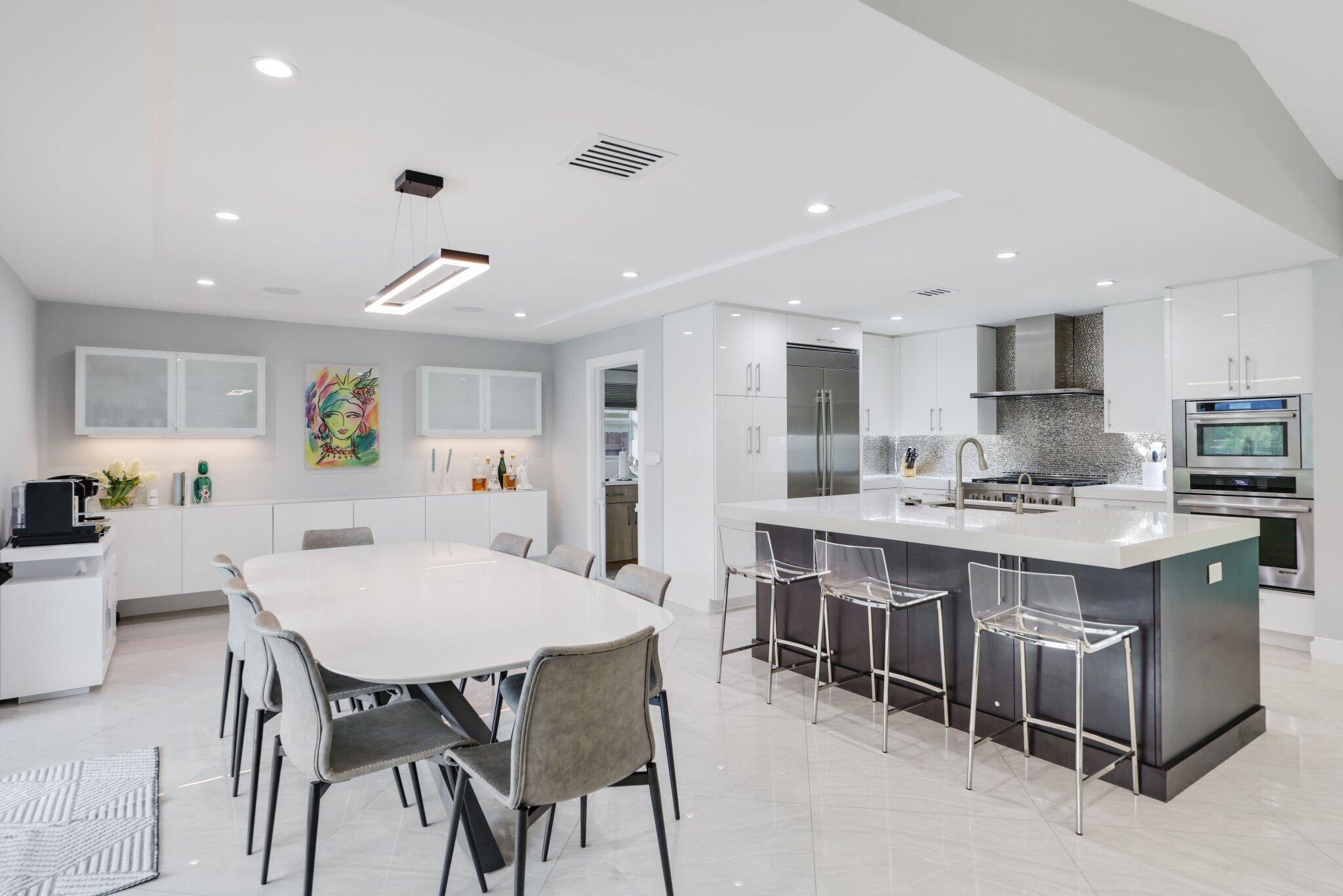Rebuilt from the ground up in 2017, this waterfront Boca Raton residence offers the peace of mind and modern appeal of newer construction. Fully gutted to the foundation and completely reimagined with all-new plumbing, electrical, roof, impact windows, and systems, this 4-bedroom plus den/office, 2-bath pool home delivers refined Florida living with contemporary style and functionality.A wide-open floor plan welcomes you with vaulted, coffered ceilings and thoughtfully curated upgrades throughout. New flooring flows seamlessly into the custom chef's kitchen, featuring a generous center island, quartz countertops, stainless steel appliances, a gas range, and wall ovens.Designed for effortless entertaining, the expansive living area opens through glass sliders to a private outdoorretreat complete with a covered patio, outdoor kitchen, heated pool, and spa overlooking tranquil water views. The bedrooms and bathrooms are generously proportioned and tastefully updated, while the additional den offers flexibility for a home office or bonus room. Additional highlights include gas appliances, smart-home wiring, a two-car garage, full impact protection, a whole-home generator, and a low HOA. Located in the Indian Head community of Loggers Run, close to A-rated schools, shopping, dining, and everything Boca Raton has to offer.