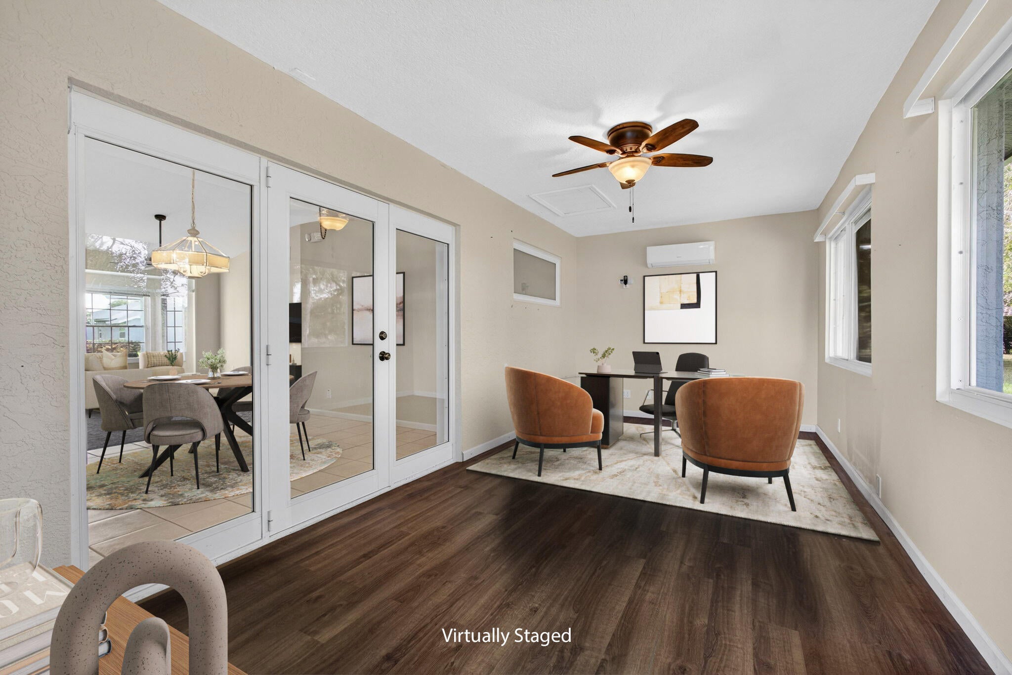 Beautifully maintained 4-bedroom, 2-bath home situated on a spacious lot backing to a serene nature preserve in the highly sought-after Saratoga Pines community. This home features a large, updated kitchen with 5-year-old appliances and an open-concept floor plan ideal for both everyday living and entertaining. The desirable split-bedroom layout provides excellent privacy, with the expansive primary suite on one side of the home and the secondary bedrooms on the other. Extended garage with enough room for 2 cars and a workbench or storage. Generator included.Updates include a 200 sq ft addition with a private entrance, making it perfect for a home office or in-law space. Improvements include a roof (2012), A/C and impact windows (2008), a water heater (2017), and a new driveway (2025).Built with exceptional quality, this energy-efficient home was originally constructed to Energy Star standards and features preformed concrete slab construction, offering durability, efficiency, and comfort. A rare opportunity to own a move-in-ready home with premium construction, modern updates, and a private natural setting. Saratoga Pines offers resort-style amenities with low HOA fees of only $43.33/month, including a large community pool, playground, walking trails through the preserve, basketball, tennis, and pickleball courts. Don't miss this move-in-ready gem; it won't last long!