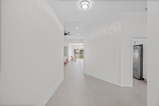 Beautiful Carly model situated on an oversized lot, offering 5 bedrooms and 3 full baths. This exceptional home features fully renovated bathrooms, a designer kitchen with updated appliances, and sleek porcelain flooring throughout. The garage is finished with epoxy flooring, and the property has been freshly painted inside and out. Complete impact glass windows provide elegance, security, and peace of mind.