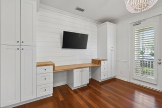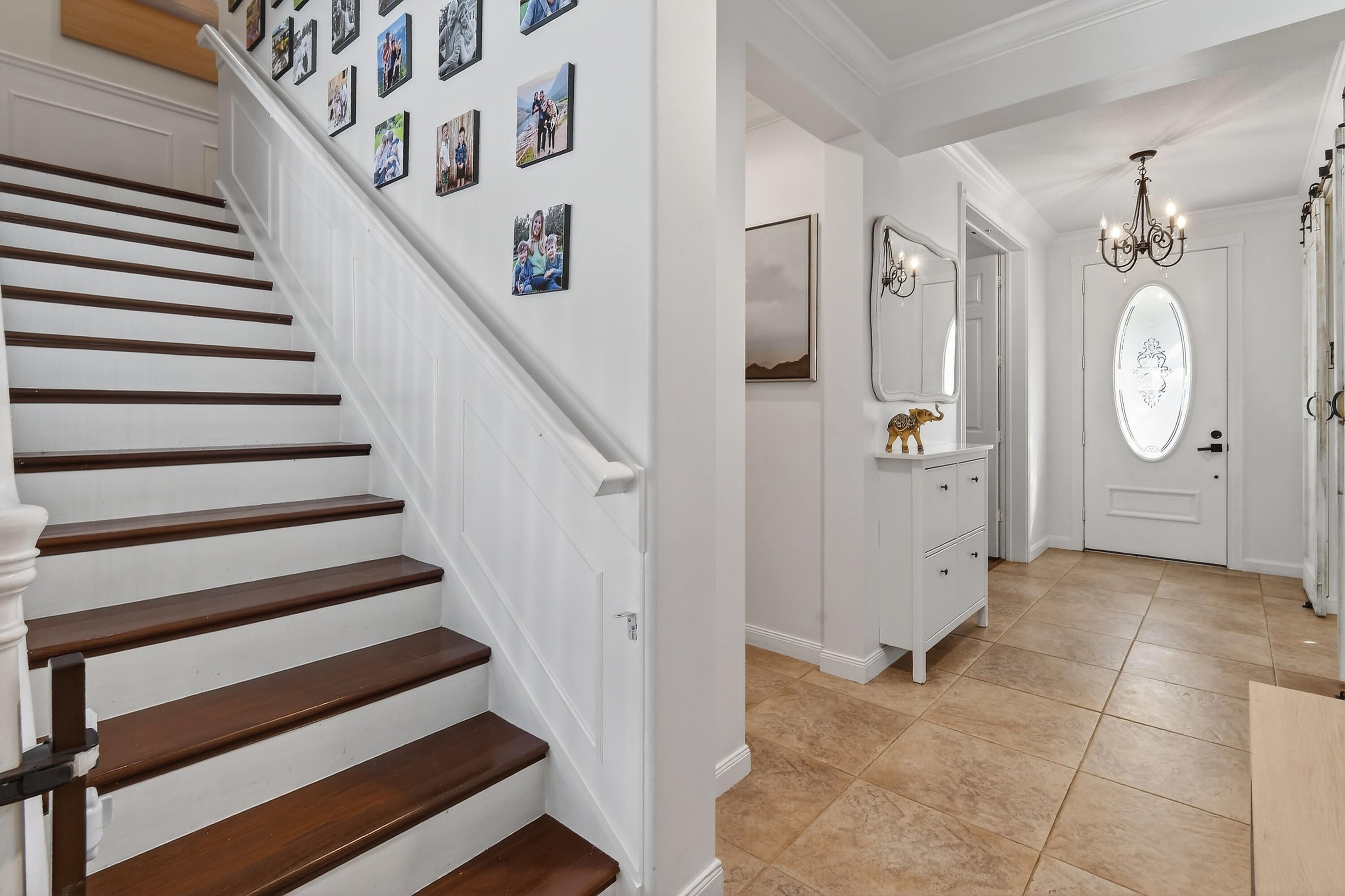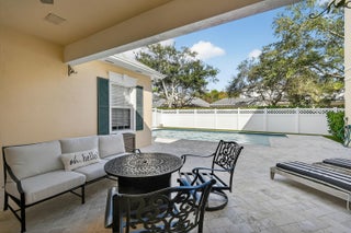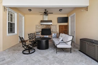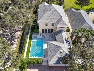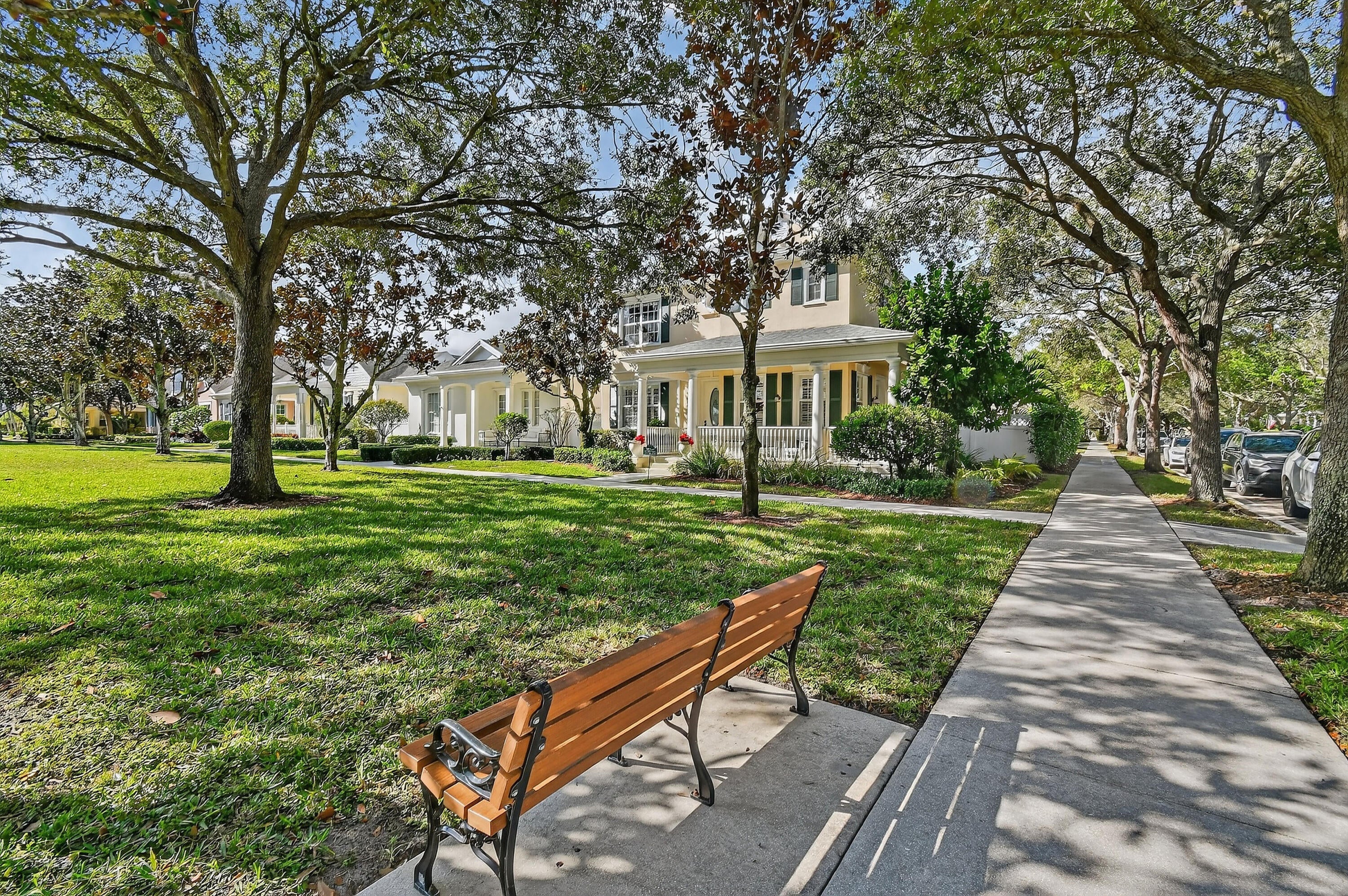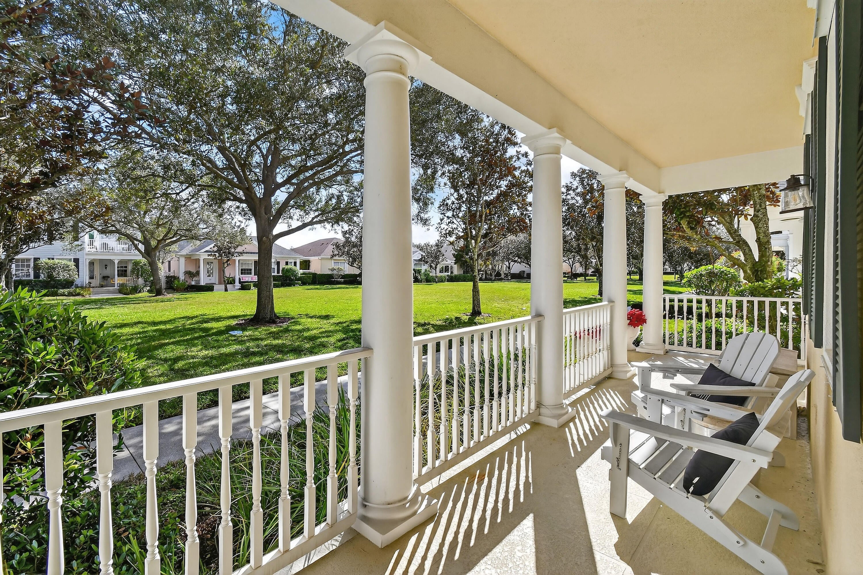 Ideally situated on a premium corner lot, this upgraded, builder-owned residence features a wraparound front porch with sweeping views of expansive open green space. One of the home's most desirable features is its exceptional location, with a large open green space directly outside the front door--offering privacy, views, and a true sense of openness. The backyard is a private outdoor oasis, complete with marble floors, a summer kitchen, a brand-new heated saltwater pool, and a dedicated play area--perfect for both entertaining and everyday living.Inside, the kitchen showcases upgraded countertops and cabinetry, high-end appliances, and designer light fixtures, blending style with functionality. Plantation shutters throughout the home provide elegance while filtering the afternoon sun. Upstairs, four bedrooms feature wood flooring and crown molding. The remodeled primary bathroom is a standout, featuring designer cabinetry, updated lighting, and a classic claw-foot tub. There is also an extended driveway, which would allow for 4 total parking spots. Additional highlights include a new roof installed in 2020 and partial impact protection. Located in the sought-after New Haven community, residents enjoy two playgrounds, a clubhouse, and a community pool. Conveniently close to beaches, major highways, and all that Jupiter has to offer, this home combines luxury, lifestyle, and location.