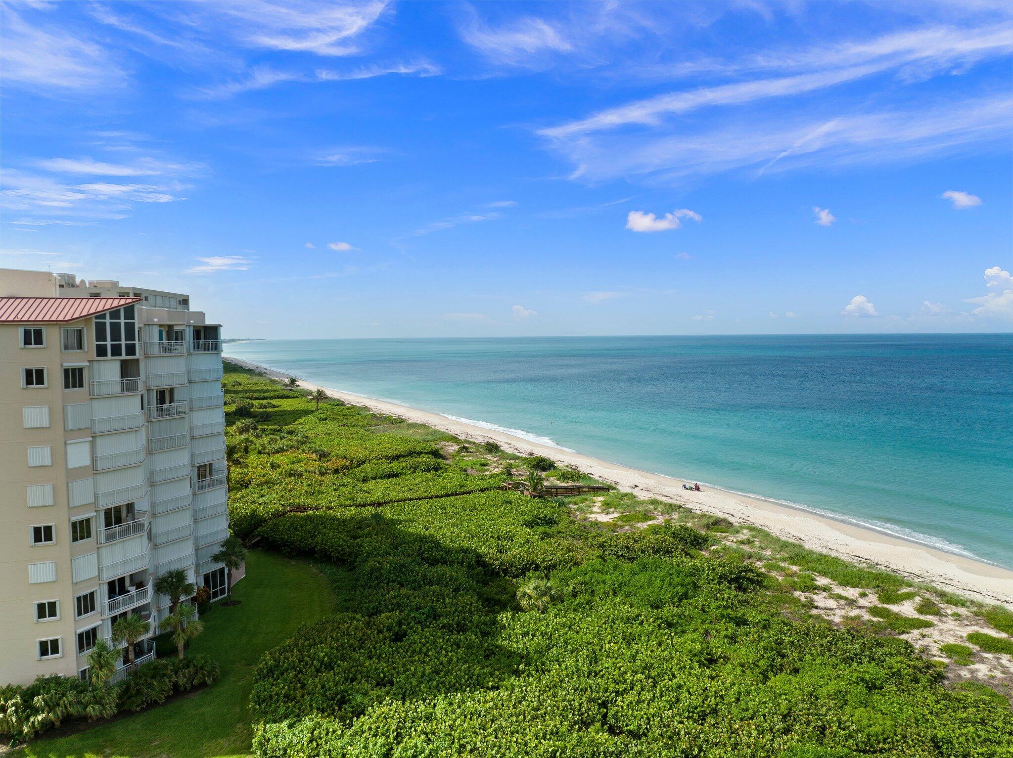 Wake up to unobstructed ocean views from this stunning 9th-floor east corner unit with southeast and west exposures from the oceanfront to the Intracoastal Waterway. Sliding glass doors open to a spacious balcony, perfect for morning coffee and sunset evenings. Enjoy uncrowded white-sand beaches, nearby parks and preserves for kayaking and fishing, plus resort-style amenities including a heated pool and spa, tennis and pickleball courts, fitness center, community room, and private garage. Fiber-optic internet and cable included. Ideally located just a short drive to Downtown Vero Beach and Fort Pierce dining and shopping--an ideal island retreat.