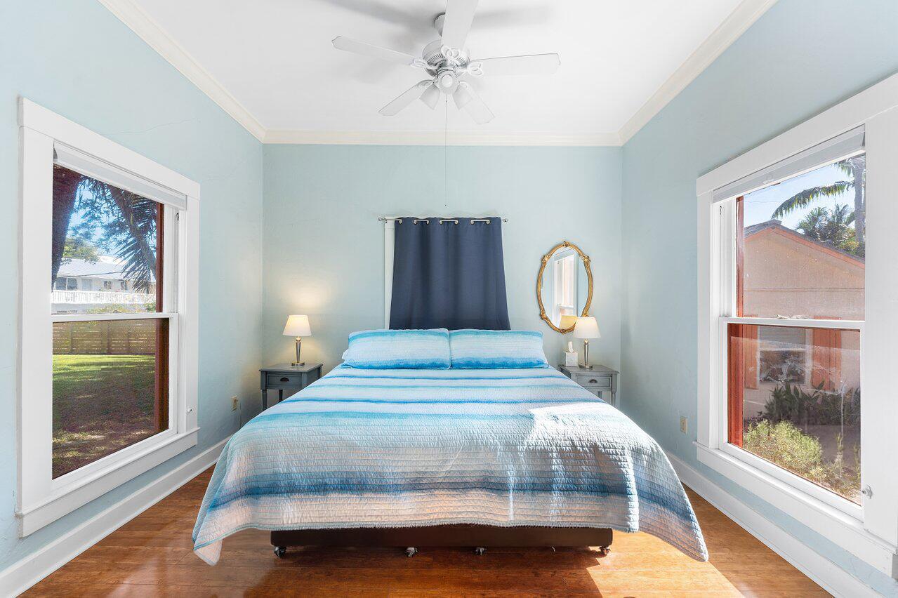 Location, location, location! Charming 2BR/1.5BA home with beautiful wood floors, a metal roof, and a spacious backyard featuring gorgeous star fruit trees. Includes a private, detached, studio guest suite with kitchenette and full bath, perfect for guests, a home office, or extra income potential. Thick walls offer excellent privacy and quiet indoors. Incredible opportunity in an awesome walk-to-everything location just minutes from trendy Atlantic Avenue dining, shopping, and entertainment. A rare find with flexible living space and an unbeatable setting!