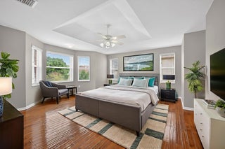 Seller offering $10,000 toward buyer's closing costs! Welcome to Pinehurst in the desirable Madison Green community. This home features 4 bedrooms, 2.5 baths, and a 2-car garage, with tile flooring downstairs and laminate upstairs. The kitchen offers stainless steel appliances, Corian countertops, and plenty of cabinet space. Enjoy an extra-large primary bedroom with custom walk-in closets. Roof (2003), A/C (1/2018) with new coil (2024), and water heater (2/2020). Oversized screened patio. Accordian shutters 2nd floor. HOA includes cable and high-speed internet. Madison Green amenities: renovated clubhouse, heated Olympic-size pool & spa, kids pool, fitness center, playground, tennis & basketball courts. Schedule your showing today!