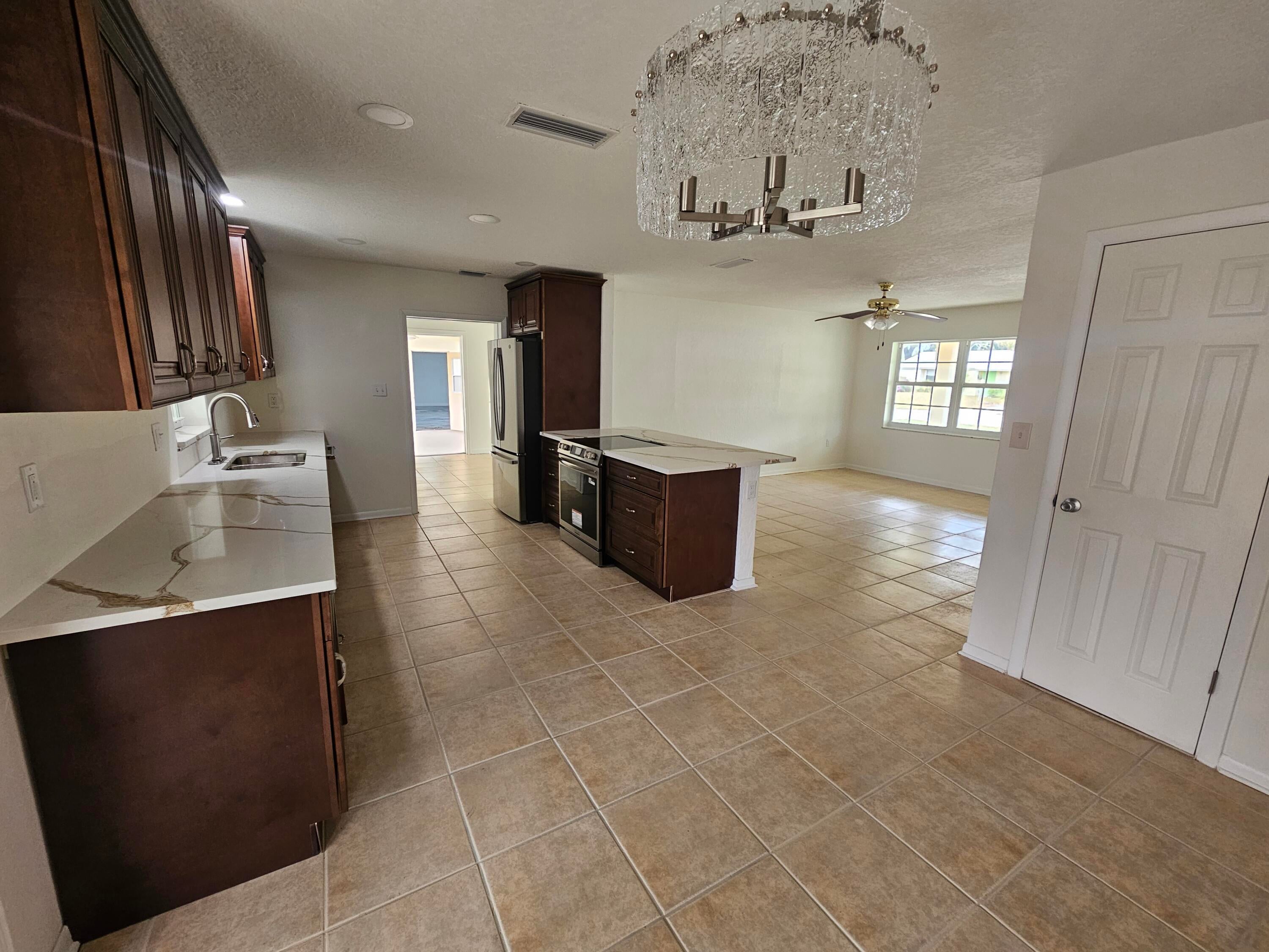A great family home CBS 3/2 with a separate huge 2 car garage to run a business out of it. Brand new kitchen: cabinets and appliances, New Hurricane proof windows, great screened breezeway between home and garage, screened back porch, family room plus a living room! Almost 1/2 acre on a lovely corner lot on a quiet street. Freshly painted! Back yard fenced for children and pets! No homestead on home. New buyer can apply for it! Don't miss this opportunity!