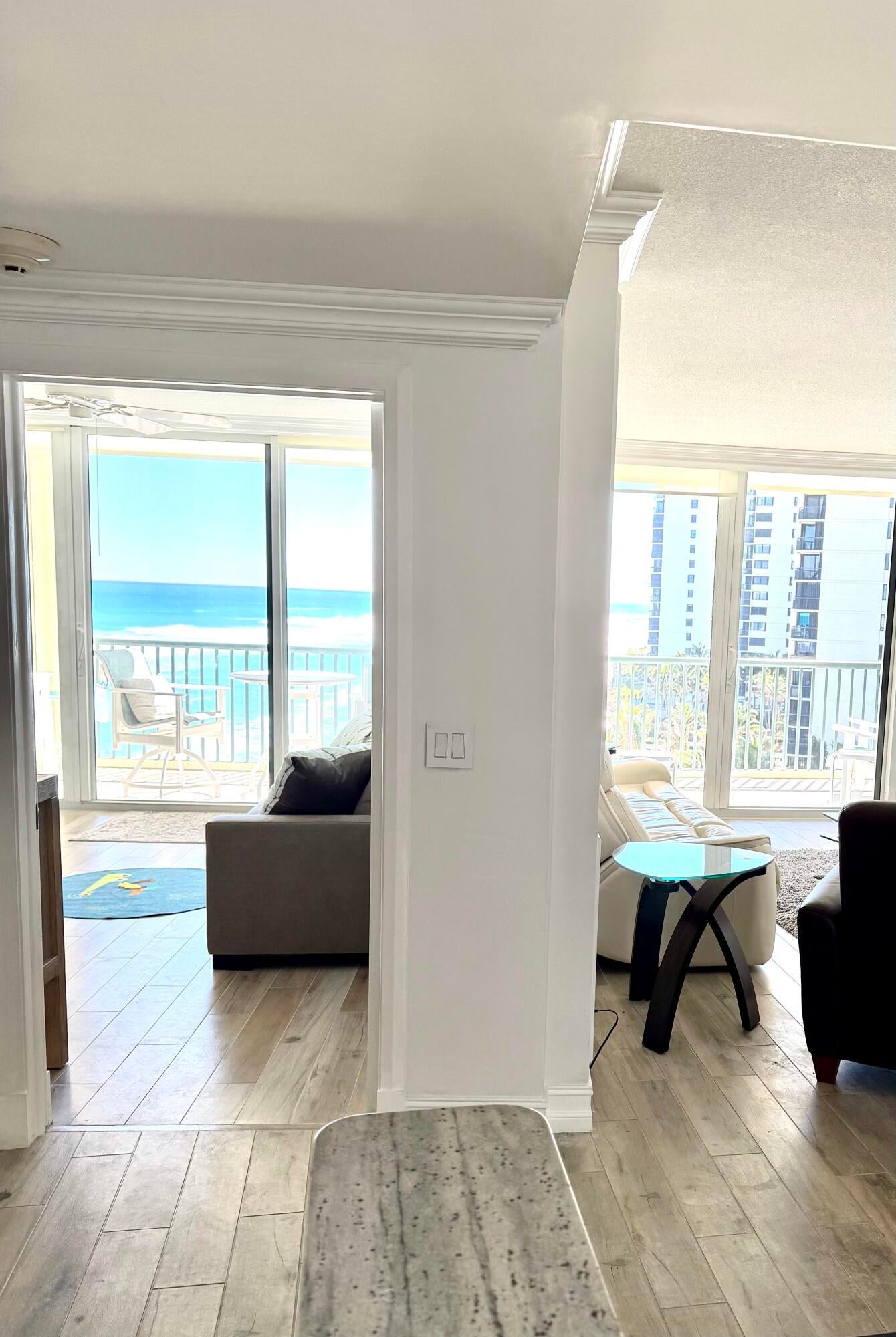 Oceanfront 2BD/2BA fully renovated condo with stunning Atlantic and Intracoastal views. Wake up to sunrises and enjoy beautiful sunsets in the evening. Open layout approx. 1,500 sq ft, tile floors, beautiful kitchen cabinetry, new countertops, and stainless steel appliances. Large balcony accessible from living room and both bedrooms. Primary suite with large walk-in closet and gorgeously renovated bathrooms. Offered fully furnished and turnkey with private storage unit. New seawall and roof. Beachfront pool, fitness center, club room, and private beach access. Assigned covered parking plus ample guest parking. All-new hurricane-impact sliding doors (~$30K value). North end of Singer Island, Palm Beach County, approx. 20 minute to airport, Move in Ready.